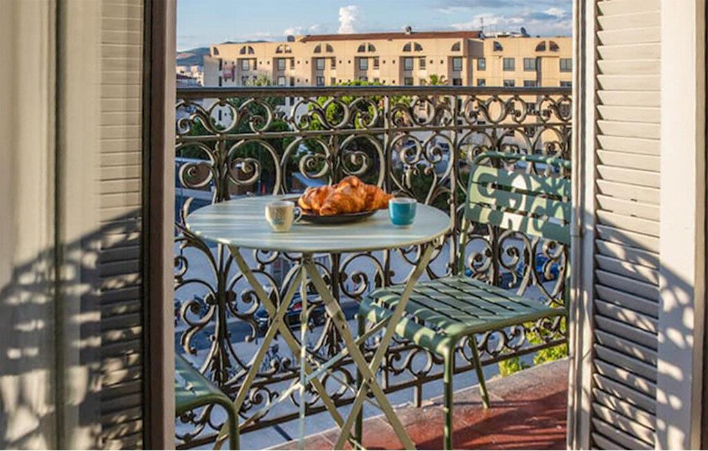 Server deg nybakte croissanter på balkongen, og se morgentrafikkens mylder av reisende på den majestetiske marmortrappen på Saint-Charles stasjon.