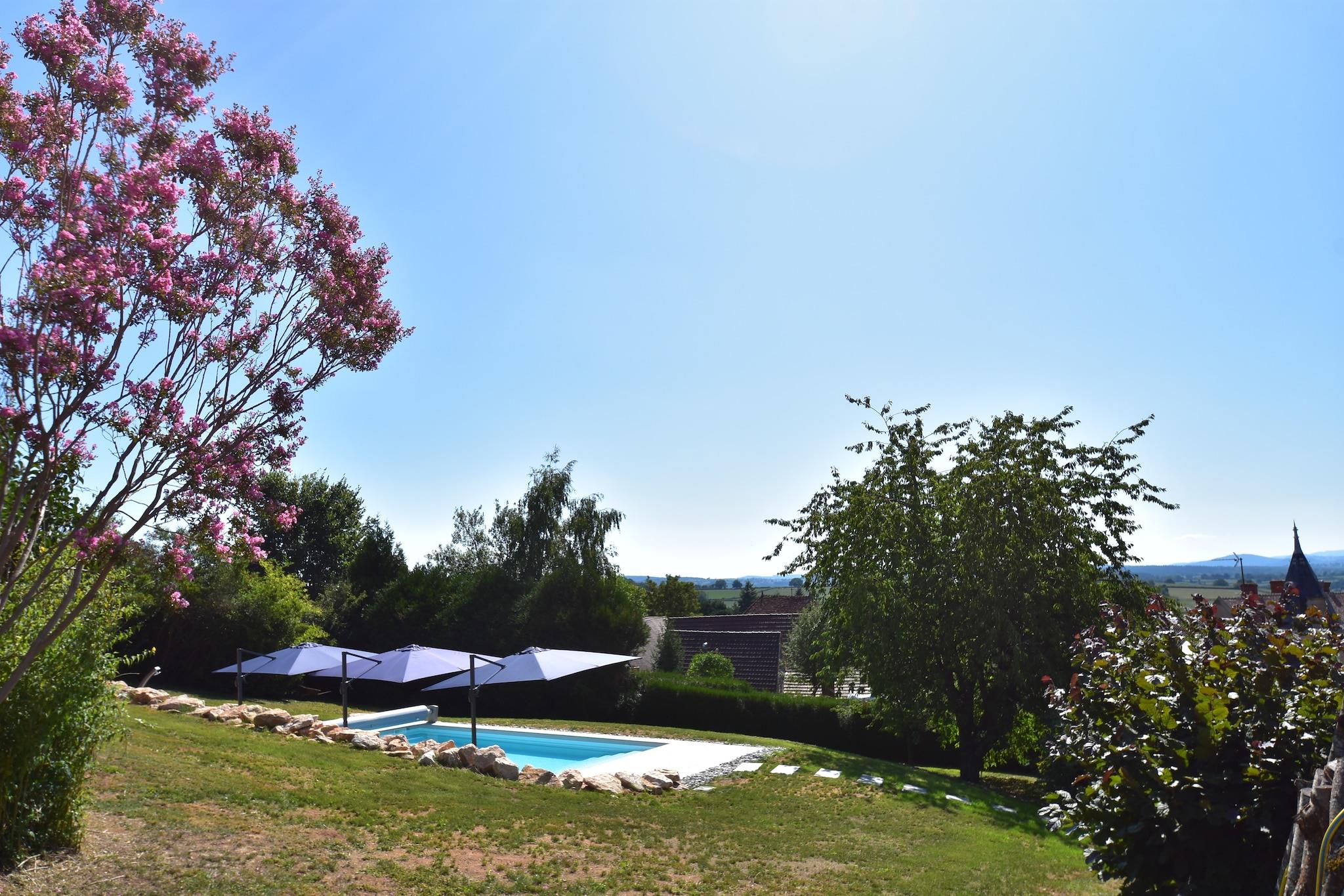 Nyt privatlivet og det (oppvarmede) svømmebassenget under ferien i dette imponerende feriehuset fra 1892. Slottet ligger bak huset og grevinnen bor der fortsatt. For et nydelig sted! Du kan gå til bakeriet, som også fungerer som et minimarked, på noen få minutter. Dessuten er det mange vakre turstier som fører deg gjennom den vakre regionen fra landsbytorget. Lyst på burgundisk mat? Ta en tur til vingårdene i Mâcon eller til Beaune og Route des Grands Crus for å smake på de beste vinene og besøke flotte restauranter, inkludert 2 Michelin-stjerner innenfor en radius på 20 km. Eller kjøp ferske lokale produkter på et av markedene i området og nyt en grillkveld i feriehuset. Nyt ferske croissanter og baguetter på terrassen under trærne. Dette herskapshuset var en gang en del av Château de Martigny. Huset har en typisk fransk atmosfære og er ideell for 2 familier. Det ligger mellom åsene i den rolige landsbyen Martigny le Comte. Svømmebassenget med skodde og badestige (9 m x 4 m, 1,5 m dyp) er åpent når været tillater det. I kalde år kan det ta litt lengre tid før bassenget åpner seg.