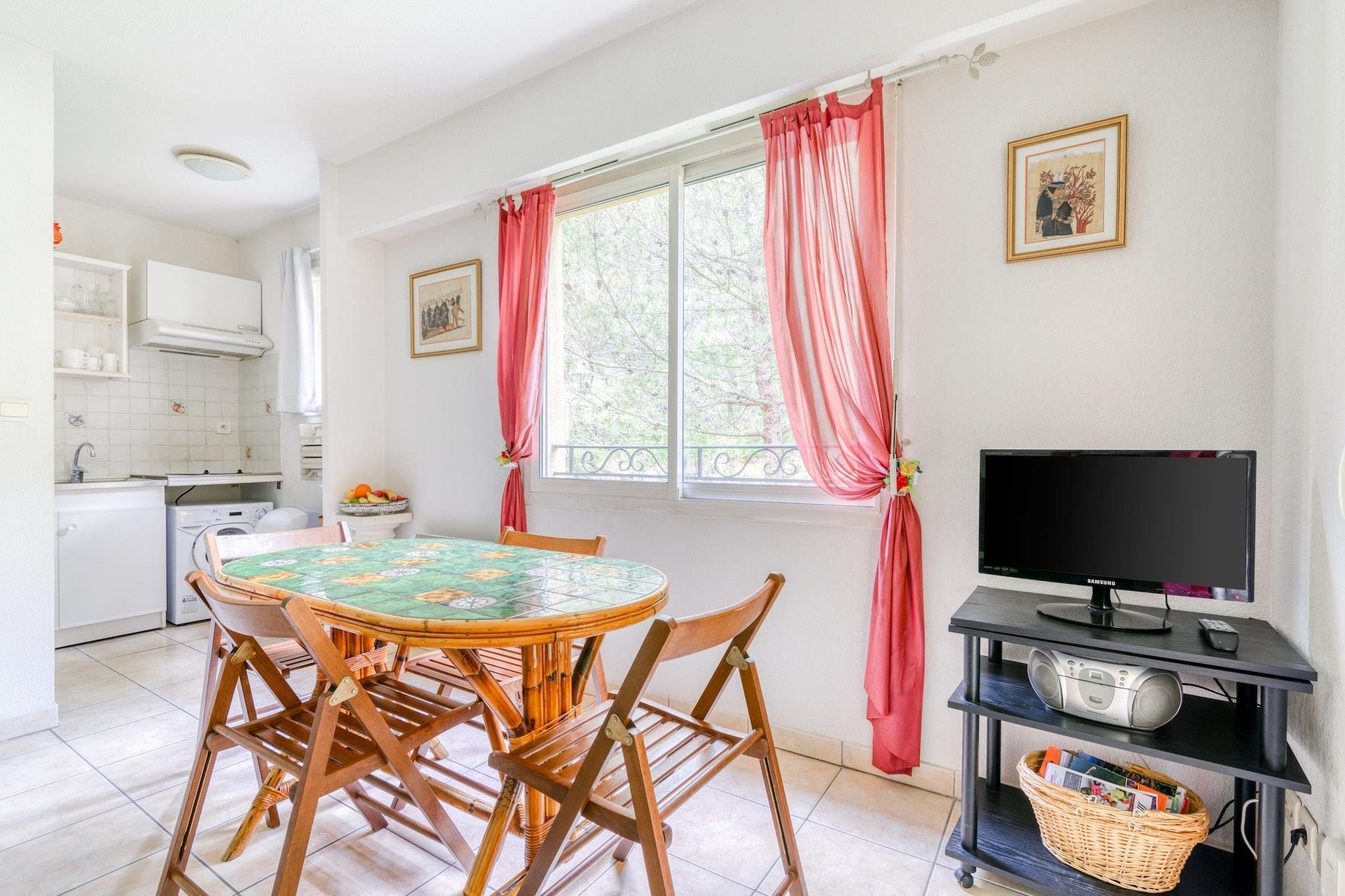 Dette koselige 2-stjerners feriehuset i Mougins tilbyr et herlig tilfluktssted for familier eller små grupper. Med et felles svømmebasseng, terrasse for solnedgangsjampagne og tennisbaner i nærheten, er det perfekt for både avslapning og lek. Den modulære kjøkkenkroken og parkeringen på stedet legger til hverdagsvennlighet, mens barna vil elske lekene og den åpne plassen. Bare 5-6 km unna finner du topprangerte restauranter som La Place de Mougins og Le Petit Fouet, og supermarkeder som Grand Frais Mougins og Carrefour Market Mougins Blanchisserie. Kunstelskere kan besøke Musée Bonnard i Le Cannet eller beundre antikviteter på det nå stengte museet for klassisk kunst i Mougins. For strandelskere, ligger bare 9 km unna, og barna vil elske Circus Party fornøyelsespark på 10 km. Cannes Mandelieu lufthavn ligger 17 km unna, og Nice Côte d'Azur lufthavn ligger 22 km unna. Ikke glem å kontakte verten 24 timer før ankomst for å bekrefte innsjekkingstidspunktet.