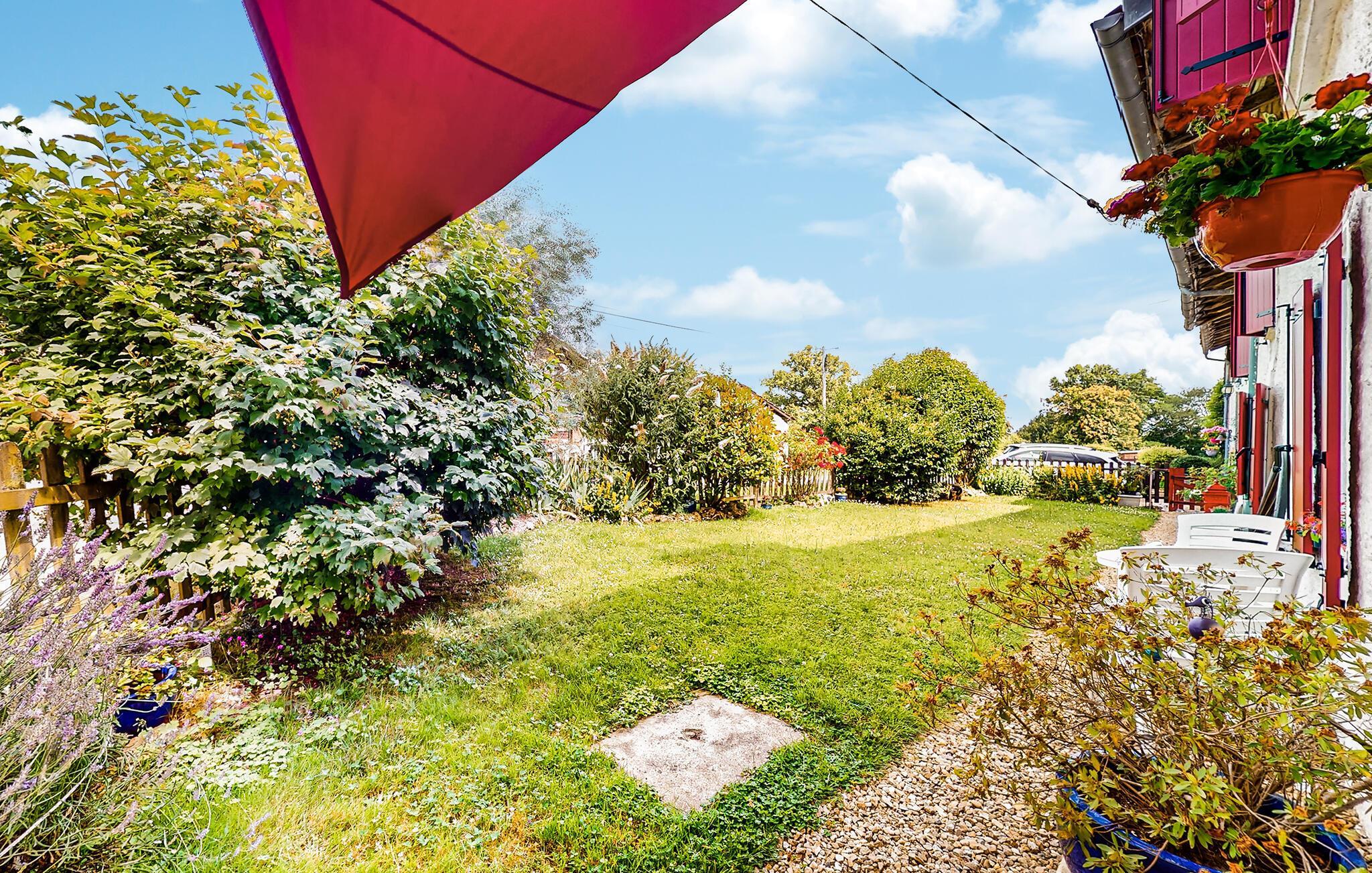 Den smale terrassen ved huset innbyr til avslappende stunder utendørs, mens den romslige hagen gir deg muligheten til å nyte naturen. Her finner du et tilfluktssted som kombinerer tradisjon og hygge på en fantastisk måte.