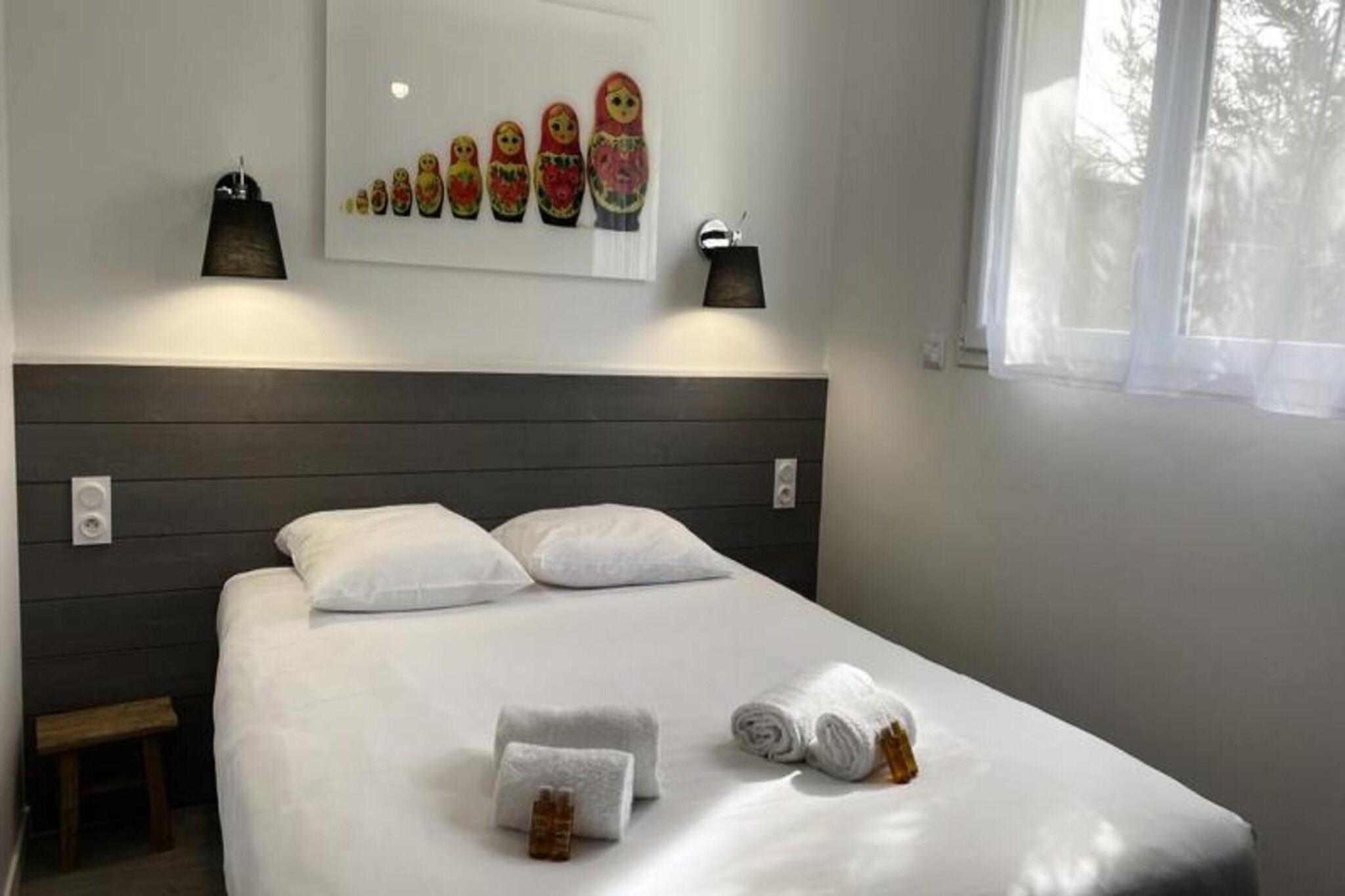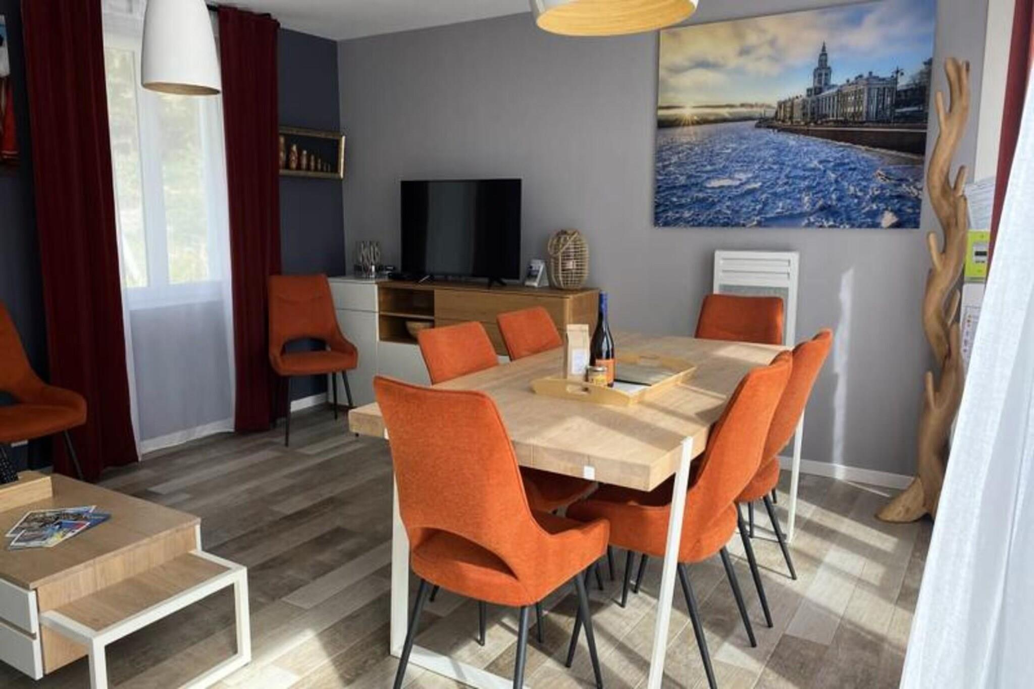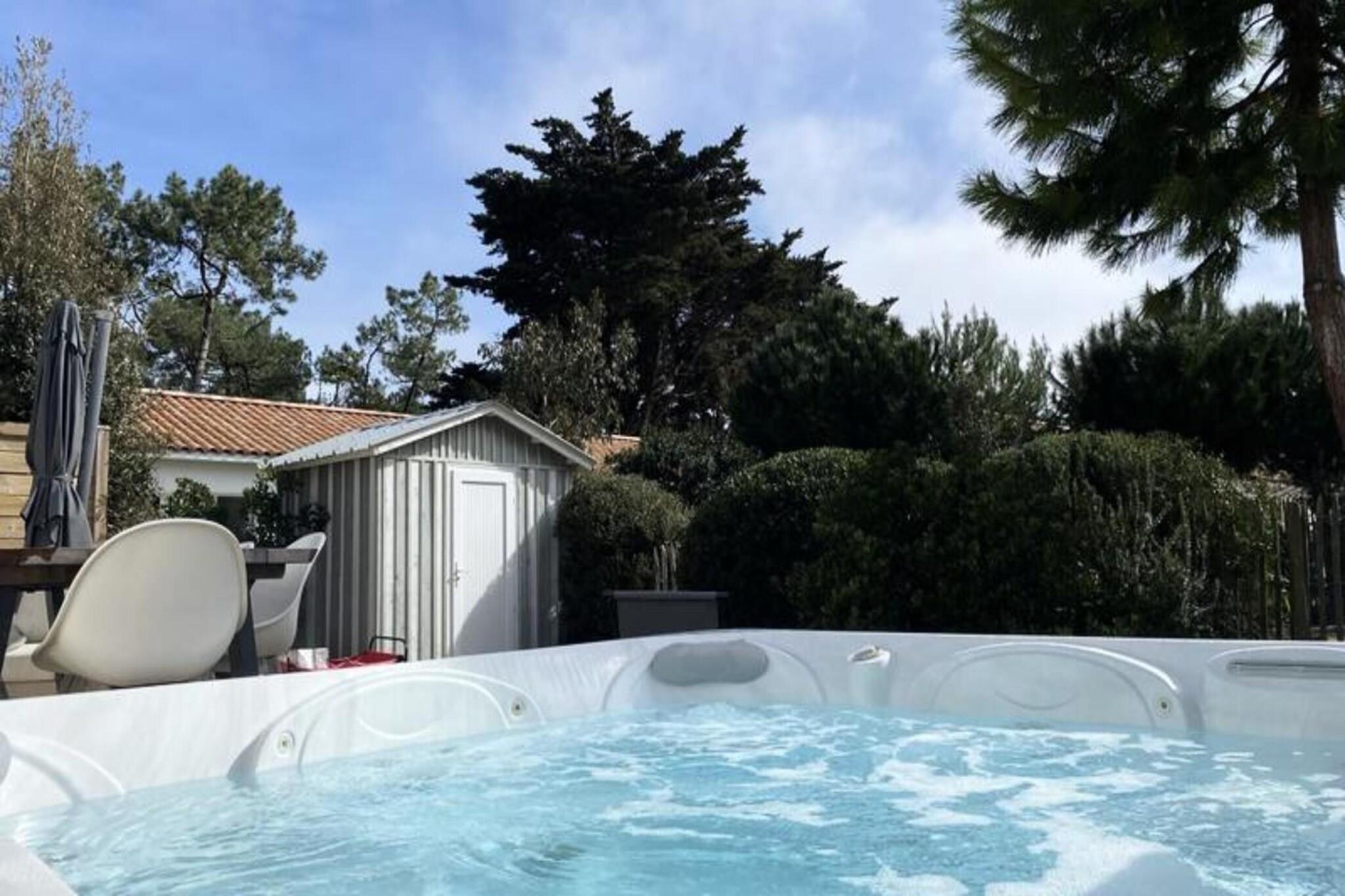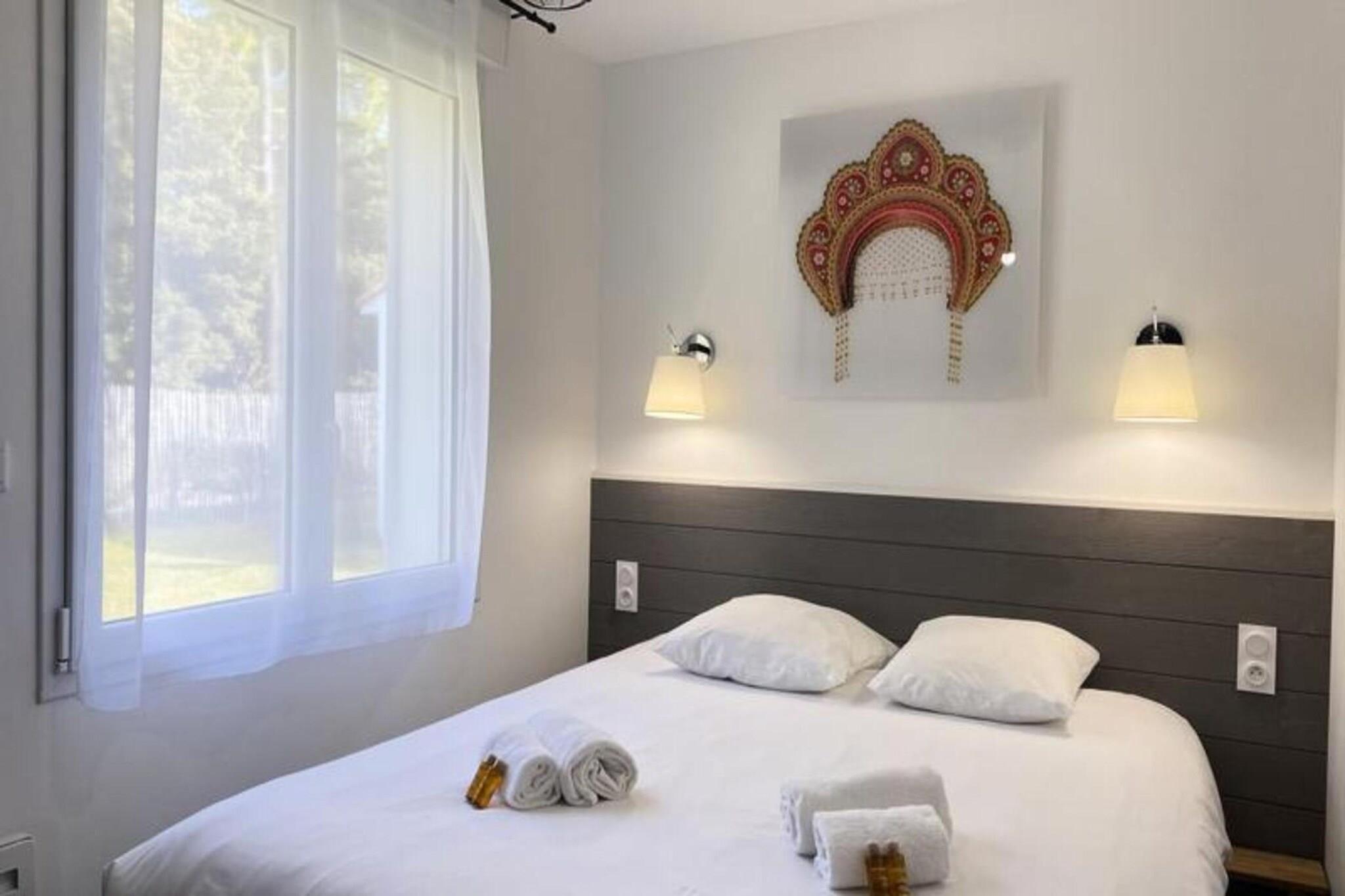 Dette sjarmerende feriehuset på 65 m² ligger i hjertet av en rolig skog, og tilbyr en rolig tilfluktssted for opptil åtte gjester. Omtenksomt innredet med et unikt russisk tema, har eiendommen tre komfortable soverom med dobbeltsenger og en ekstra sovesofa i stuen. For ekstra avslapning er et privat spa tilgjengelig som en valgfri funksjon under oppholdet. Kjæledyr under 25 kg er velkomne mot en liten avgift, noe som sikrer at hele familien kan nyte dette tilfluktsstedet. Sengetøy er inkludert, mens håndklesett og rengjøring er tilgjengelig etter avtale. Denne eiendommen ligger i en fantastisk naturpark, og er et fristed for friluftsentusiaster. Bare minutter unna uberørte strender og omgitt av den pittoreske nasjonalskogen Pays-de-Monts, byr området på mange sykkelstier for å utforske det frodige landskapet. I nærheten finner du sjarmerende kafeer, lokale markeder og en rekke aktiviteter, noe som gjør det til et ideelt reisemål for de som søker både eventyr og avslapning. Hjemmet har et fullt utstyrt kjøkken med moderne apparater, inkludert oppvaskmaskin, kaffetrakter og mikrobølgeovn, perfekt for å tilberede måltider under oppholdet. Utenfor skaper en romslig treterrasse med hagemøbler, grill og parasoll den perfekte setting for utendørsservering. Ytterligere bekvemmeligheter som vaskemaskin, strykeutstyr og TV sikrer en komfortabel og stressfri ferieopplevelse.