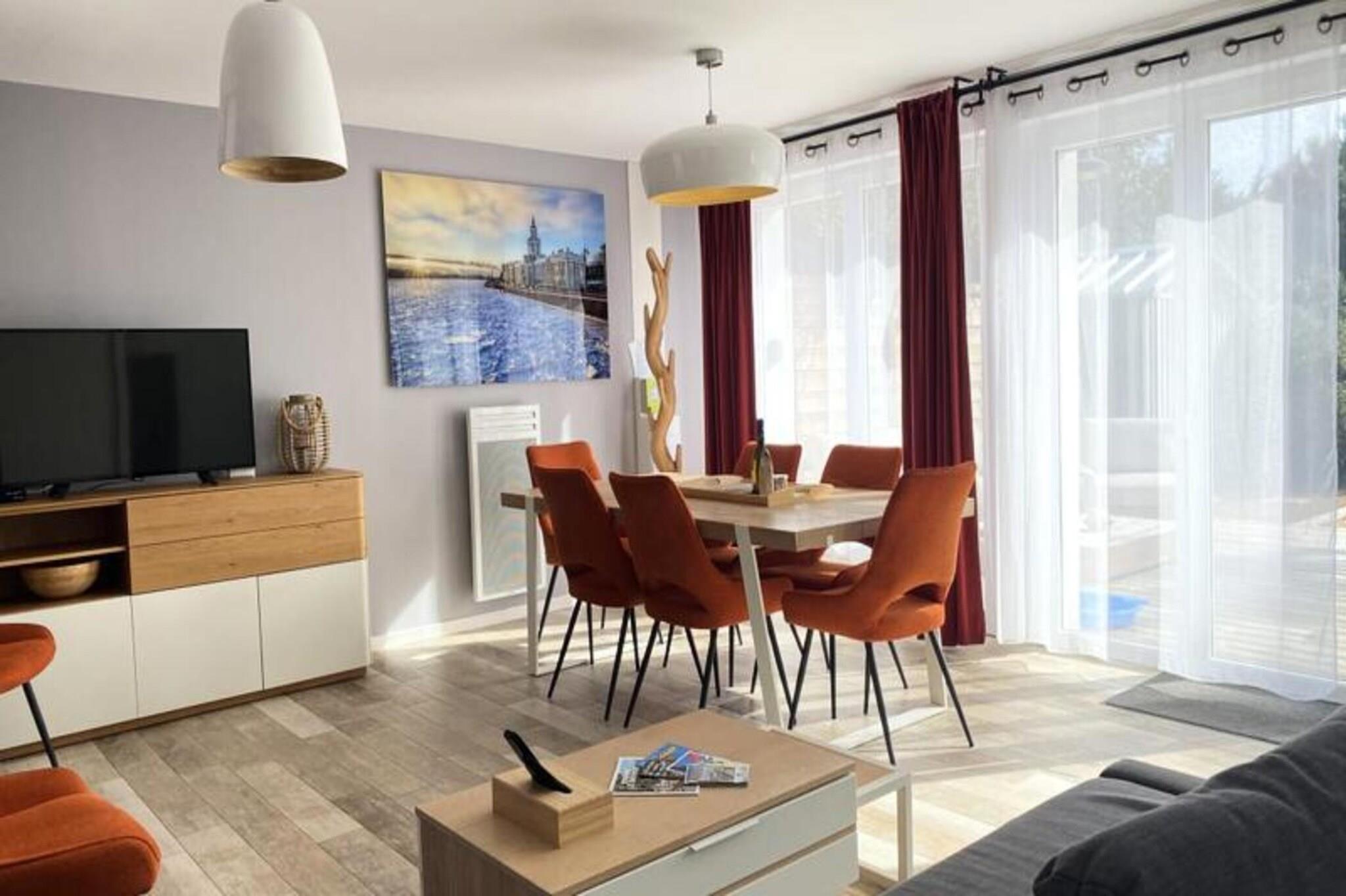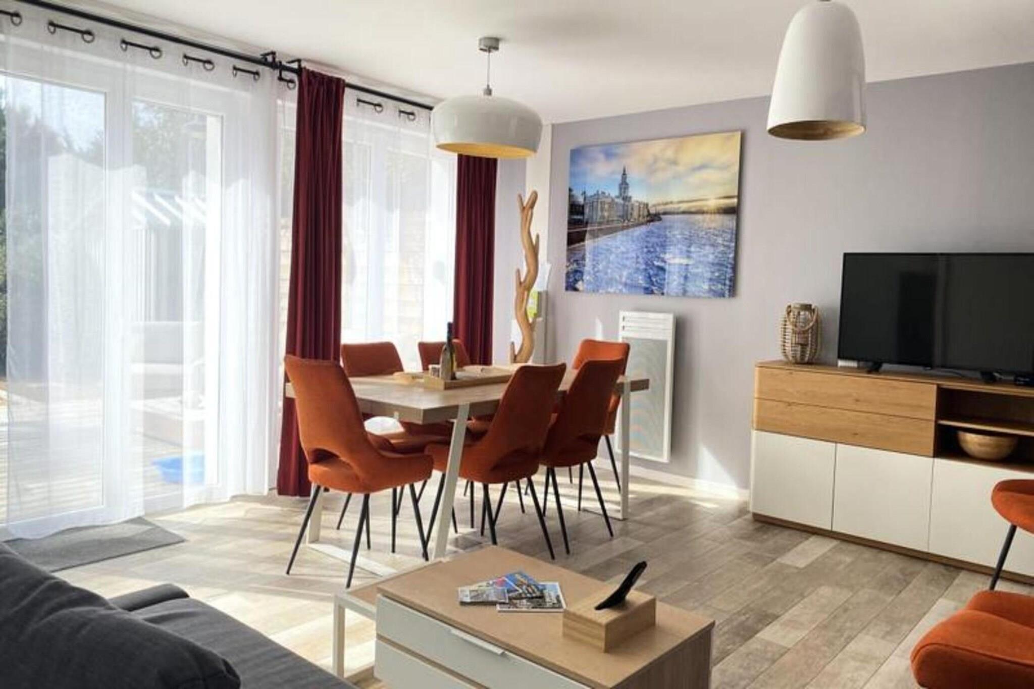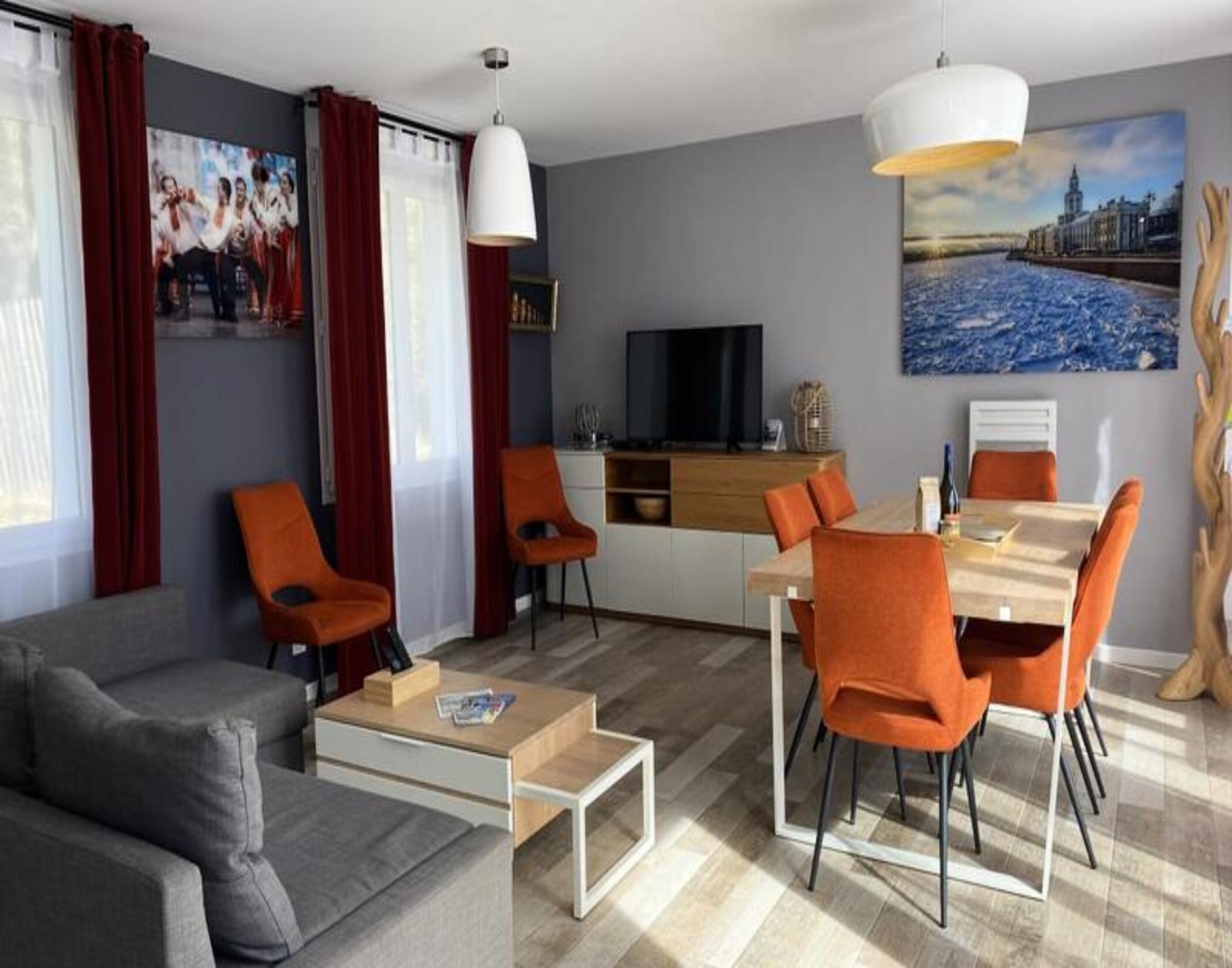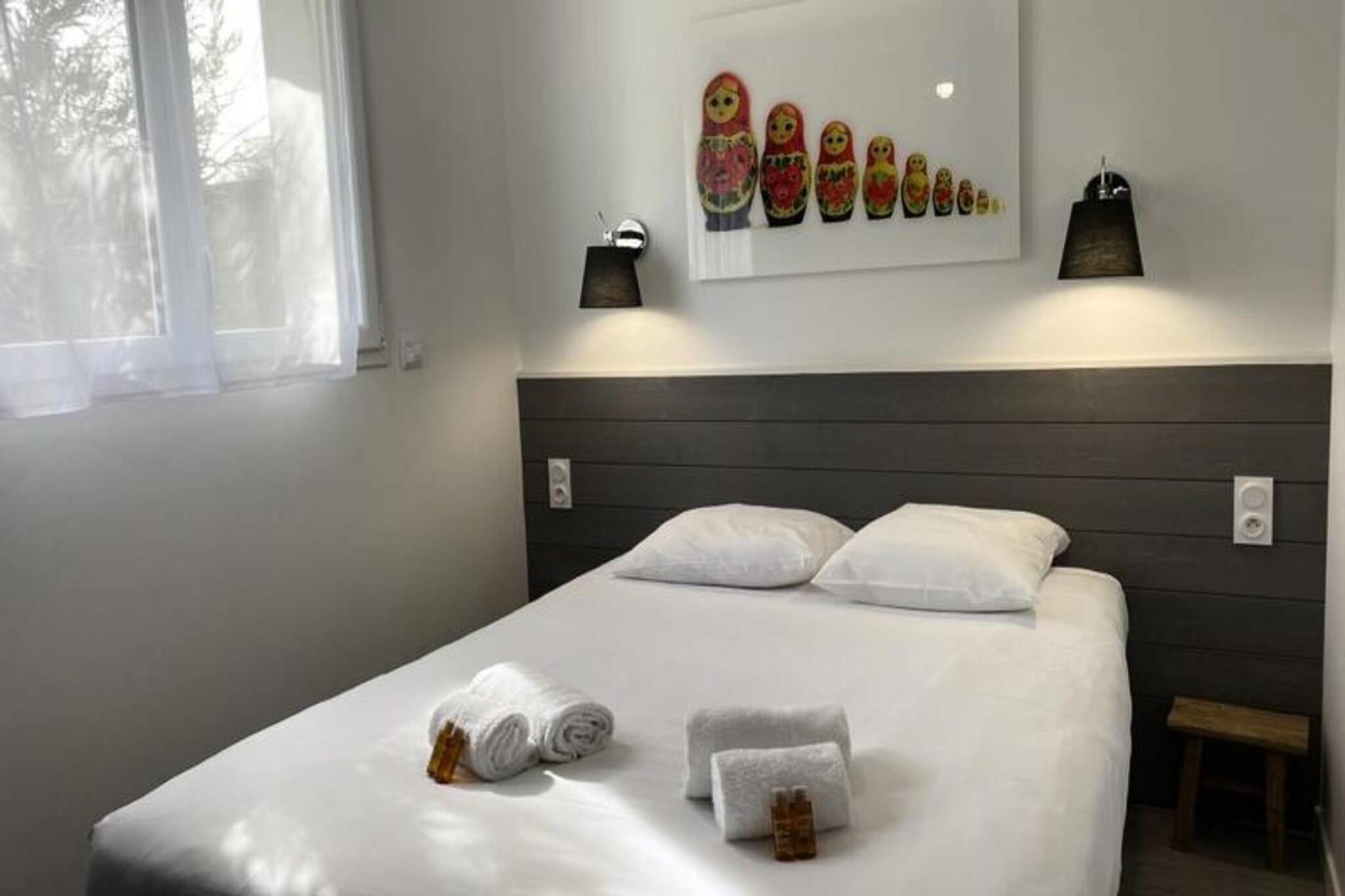 Dette sjarmerende feriehuset på 65 m² ligger i hjertet av en rolig skog, og tilbyr en rolig tilfluktssted for opptil åtte gjester. Omtenksomt innredet med et unikt russisk tema, har eiendommen tre komfortable soverom med dobbeltsenger og en ekstra sovesofa i stuen. For ekstra avslapning er et privat spa tilgjengelig som en valgfri funksjon under oppholdet. Kjæledyr under 25 kg er velkomne mot en liten avgift, noe som sikrer at hele familien kan nyte dette tilfluktsstedet. Sengetøy er inkludert, mens håndklesett og rengjøring er tilgjengelig etter avtale. Denne eiendommen ligger i en fantastisk naturpark, og er et fristed for friluftsentusiaster. Bare minutter unna uberørte strender og omgitt av den pittoreske nasjonalskogen Pays-de-Monts, byr området på mange sykkelstier for å utforske det frodige landskapet. I nærheten finner du sjarmerende kafeer, lokale markeder og en rekke aktiviteter, noe som gjør det til et ideelt reisemål for de som søker både eventyr og avslapning. Hjemmet har et fullt utstyrt kjøkken med moderne apparater, inkludert oppvaskmaskin, kaffetrakter og mikrobølgeovn, perfekt for å tilberede måltider under oppholdet. Utenfor skaper en romslig treterrasse med hagemøbler, grill og parasoll den perfekte setting for utendørsservering. Ytterligere bekvemmeligheter som vaskemaskin, strykeutstyr og TV sikrer en komfortabel og stressfri ferieopplevelse.