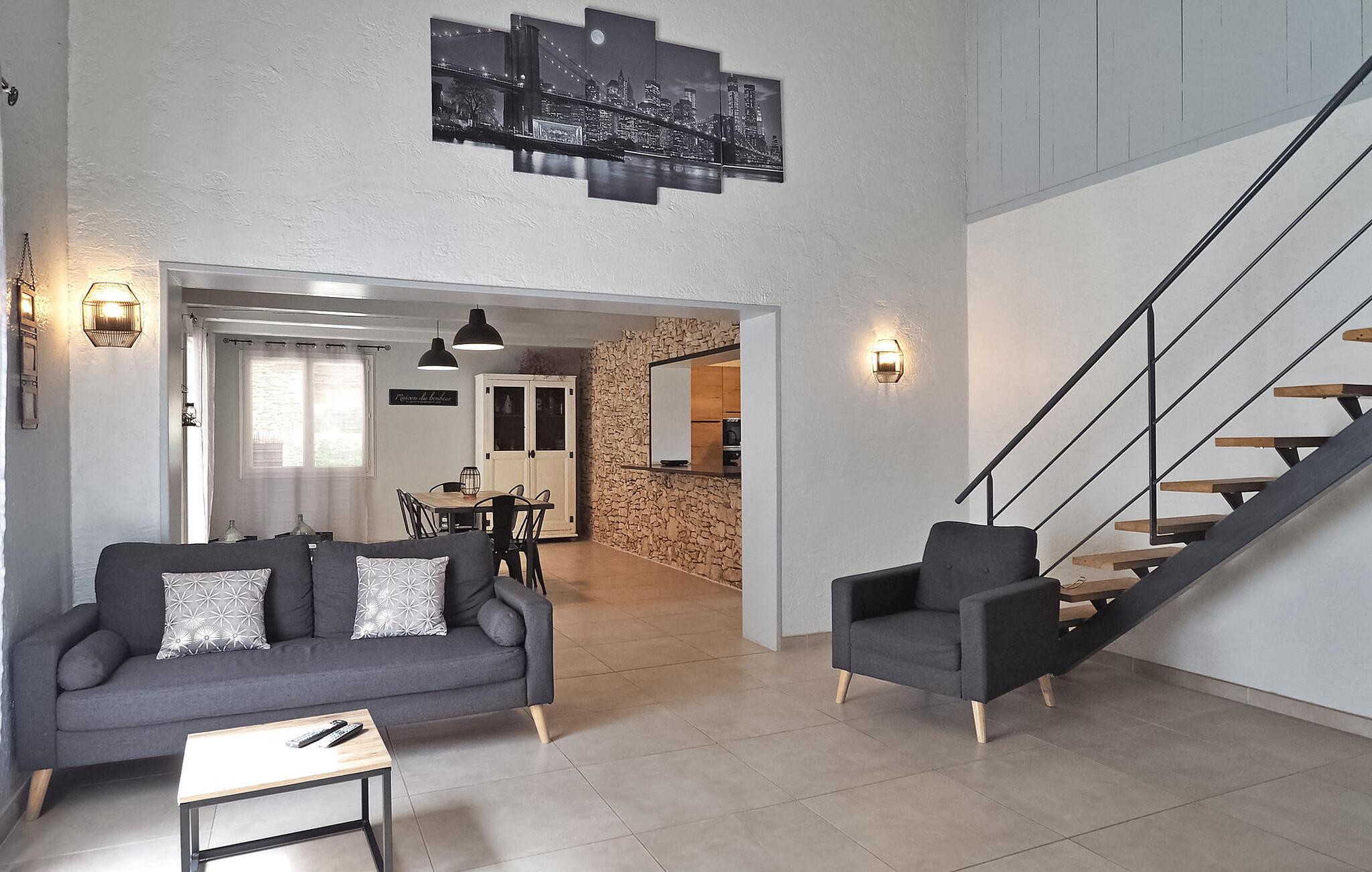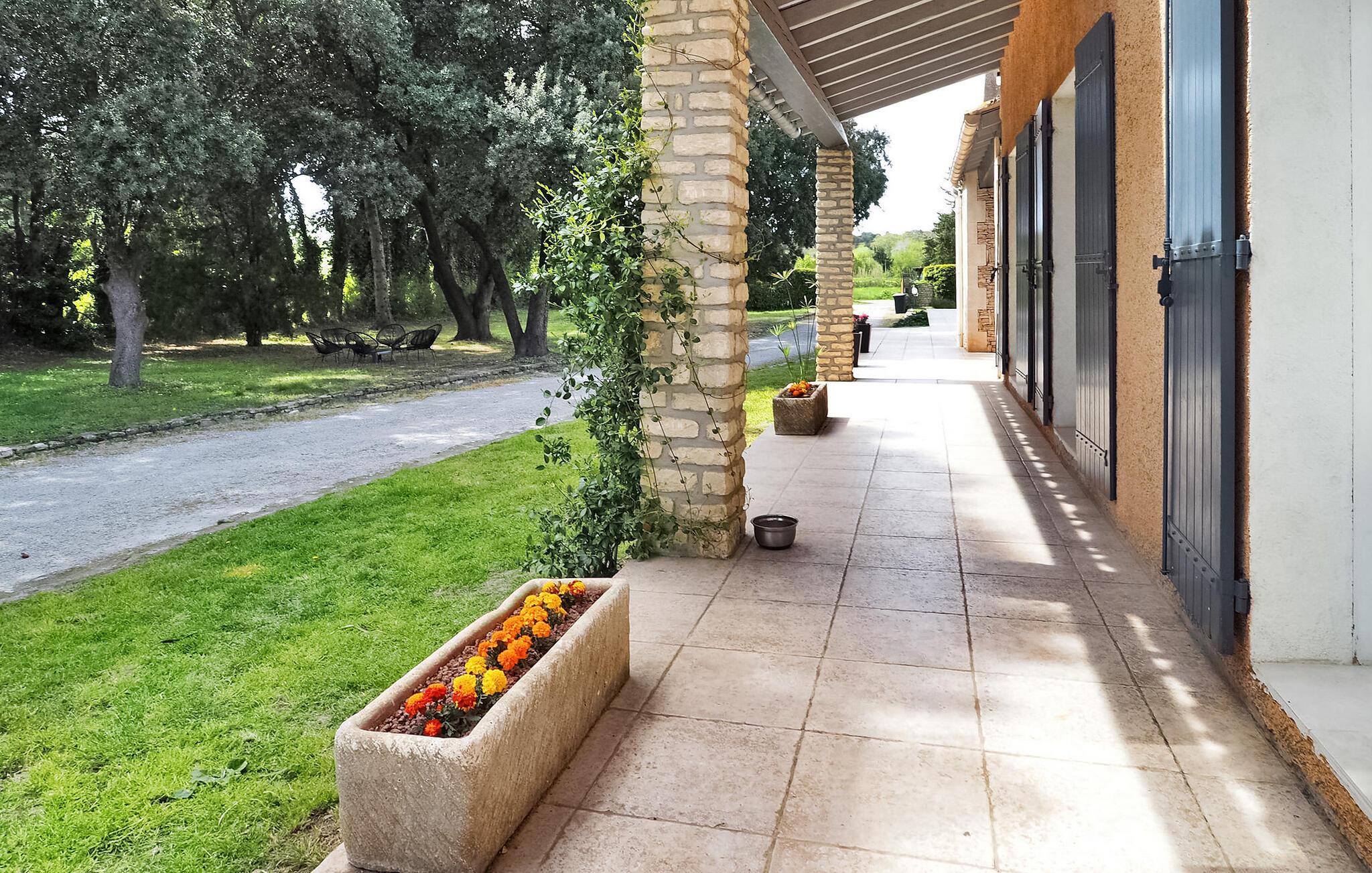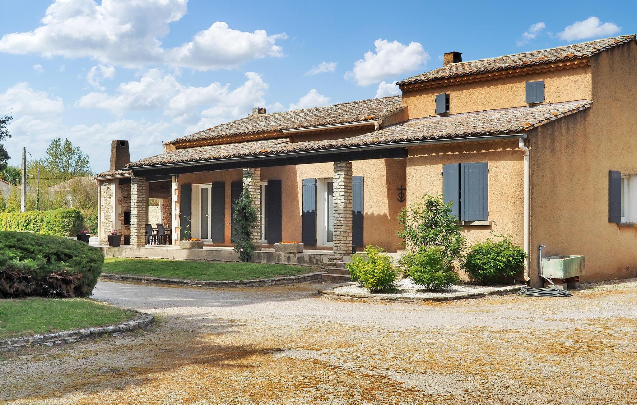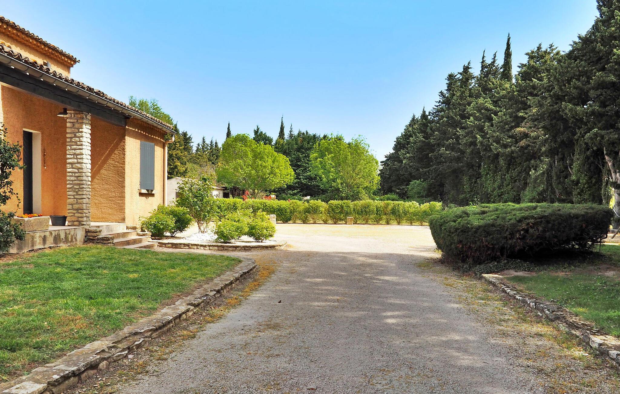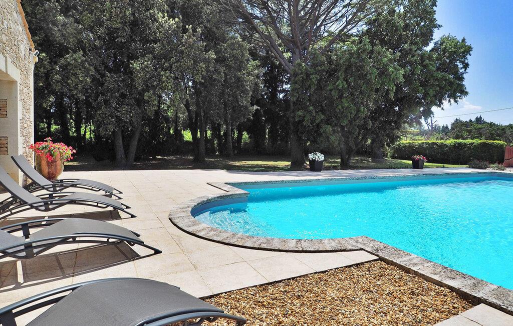 Denne landlige villaen mellom Saint-Rémy-de-Provence og Avignon er et innbydende tilfluktssted med privat basseng og plass til 6 gjester i 3 dobbeltrom som deler et dusjrom. Villaen er på ca. 120 m² og har et inngangsparti med garderobe og en mesanin med et koselig lesehjørne. Det romslige oppholdsrommet har sittegruppe med sofa, lenestol og krakker, spiseplass med bord til 6 personer og et kjøkken med halvåpen planløsning og moderne utstyr. Utenfor har villaen en skyggefull hage med et avslappende loungeområde omgitt av furutrær, en bowlingbane, en huske og en carport. Høydepunktet er det private svømmebassenget på 12 x 6 meter, komplett med en undervannstrapp. En spiseplass på den skyggefulle terrassen har utsikt over det innbydende bassenget og er perfekt for måltider i det fri. I nærheten ligger Saint-Rémy-de-Provence, en av de mest pittoreske byene i Provence med mange severdigheter, butikker og restauranter.