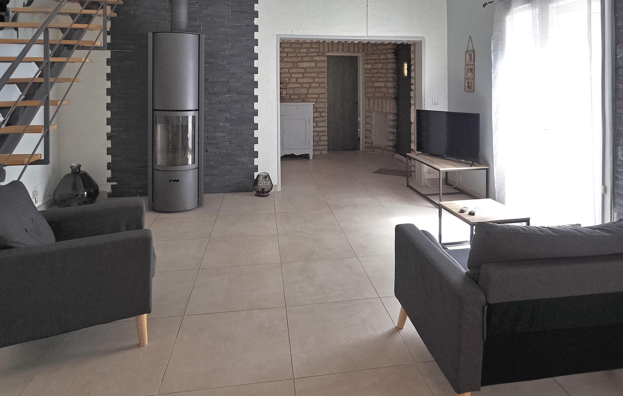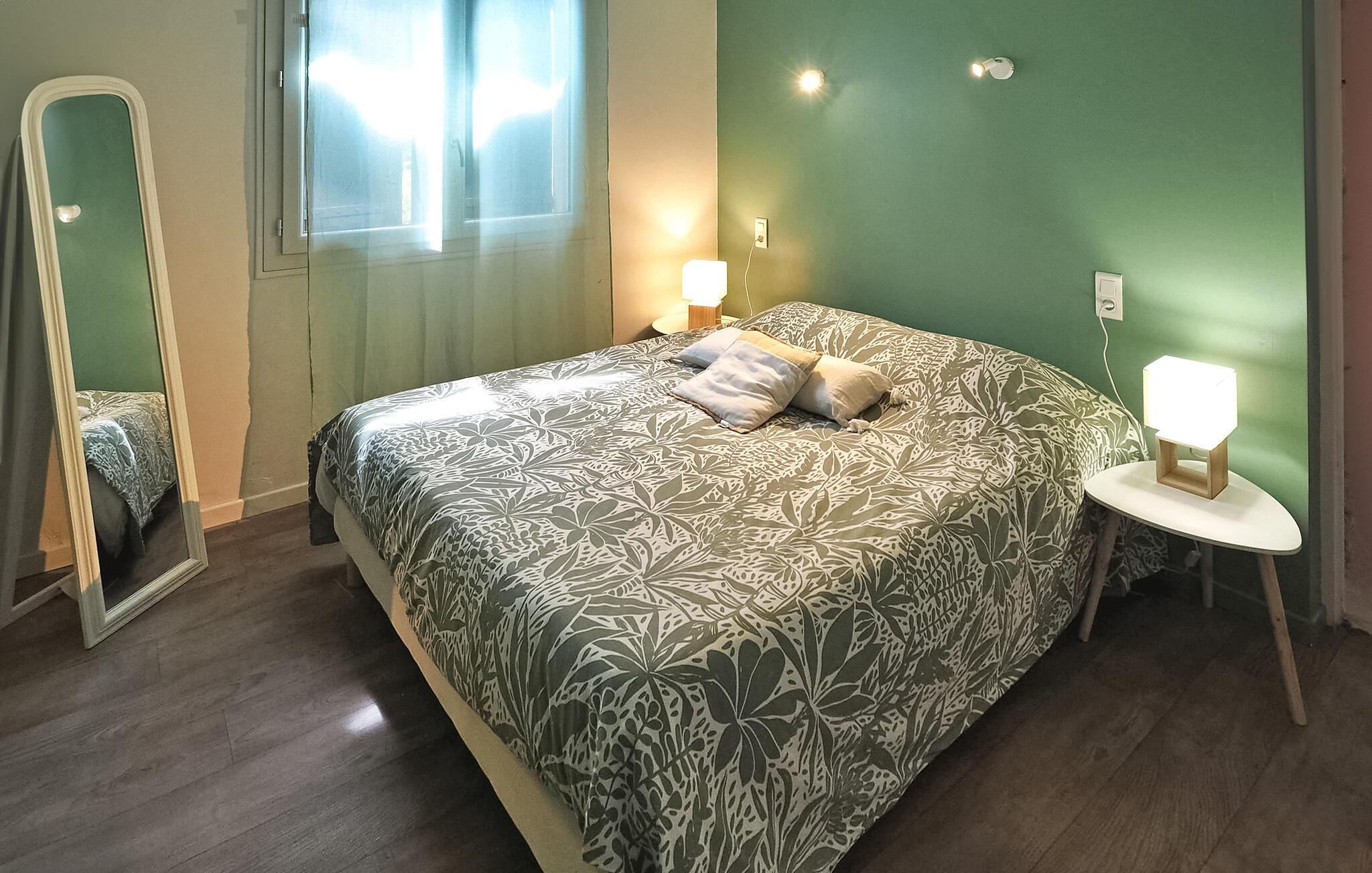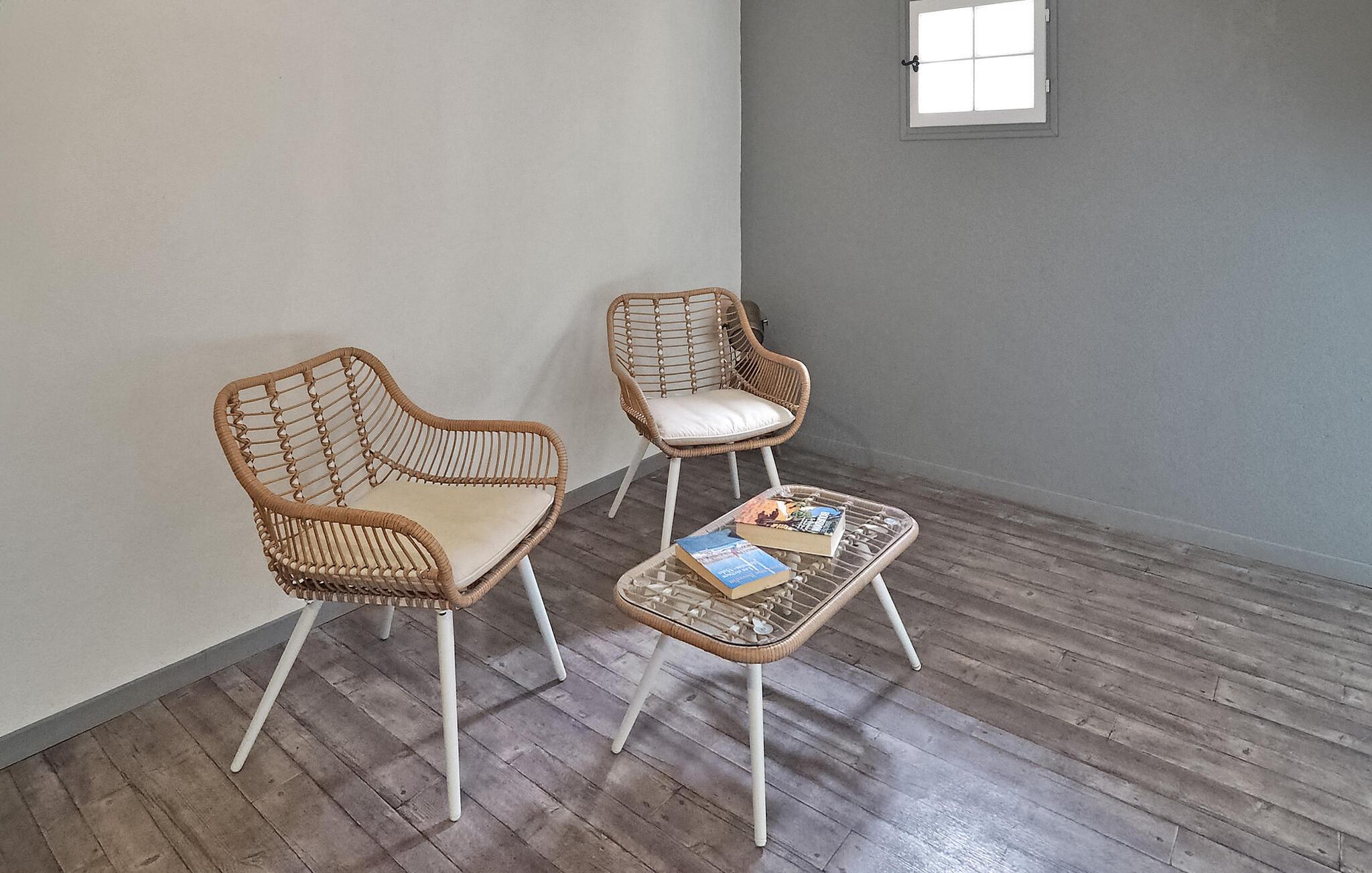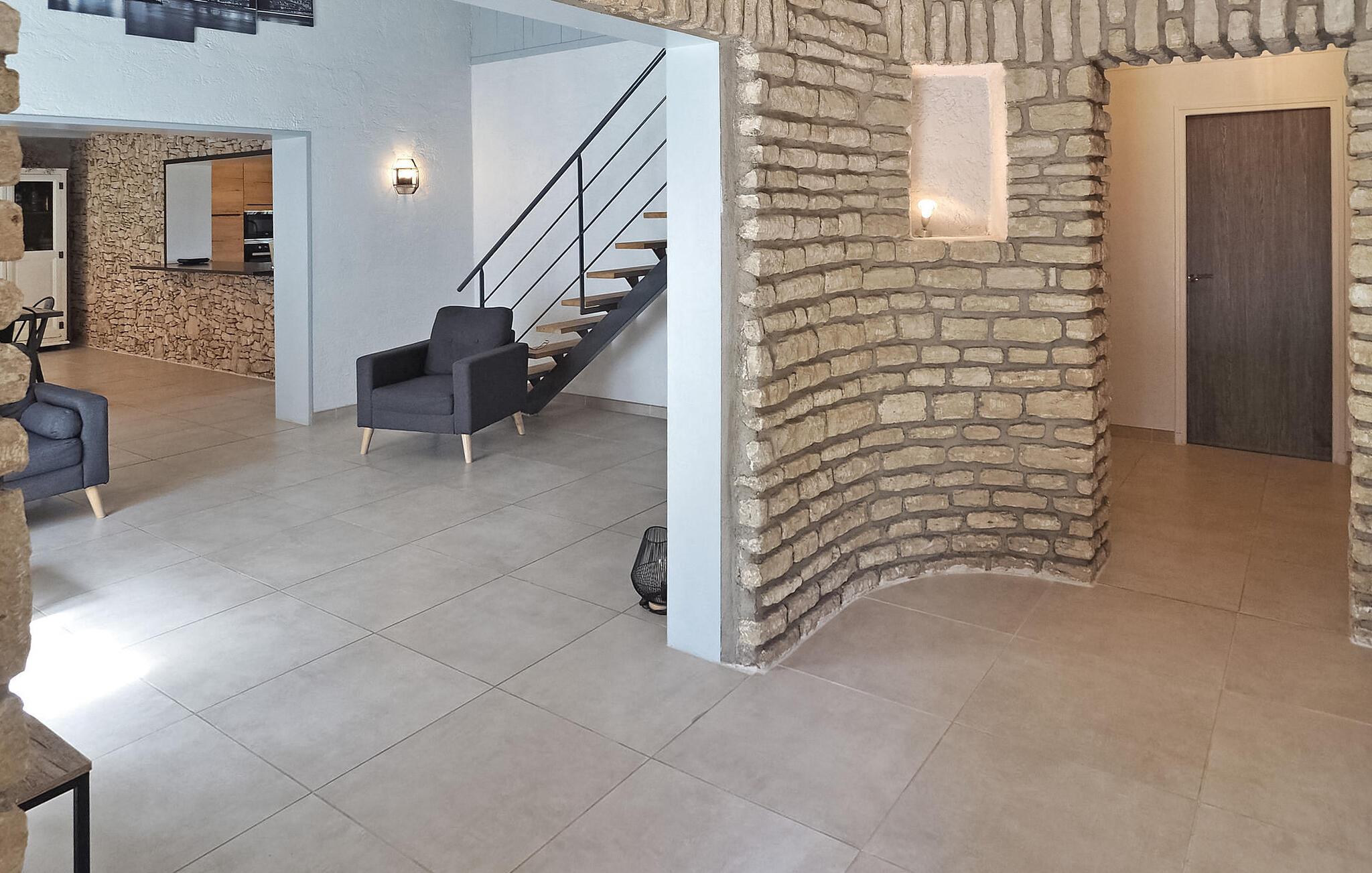 Denne landlige villaen mellom Saint-Rémy-de-Provence og Avignon er et innbydende tilfluktssted med privat basseng og plass til 6 gjester i 3 dobbeltrom som deler et dusjrom. Villaen er på ca. 120 m² og har et inngangsparti med garderobe og en mesanin med et koselig lesehjørne. Det romslige oppholdsrommet har sittegruppe med sofa, lenestol og krakker, spiseplass med bord til 6 personer og et kjøkken med halvåpen planløsning og moderne utstyr. Utenfor har villaen en skyggefull hage med et avslappende loungeområde omgitt av furutrær, en bowlingbane, en huske og en carport. Høydepunktet er det private svømmebassenget på 12 x 6 meter, komplett med en undervannstrapp. En spiseplass på den skyggefulle terrassen har utsikt over det innbydende bassenget og er perfekt for måltider i det fri. I nærheten ligger Saint-Rémy-de-Provence, en av de mest pittoreske byene i Provence med mange severdigheter, butikker og restauranter.