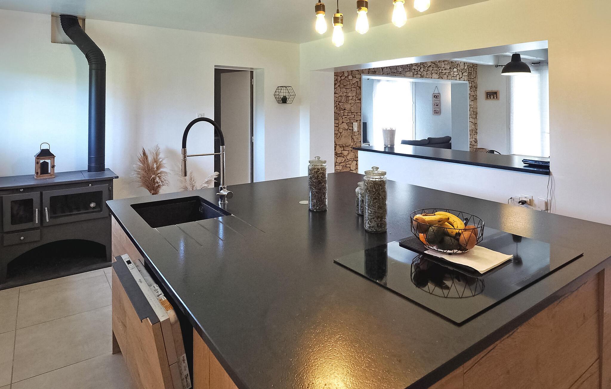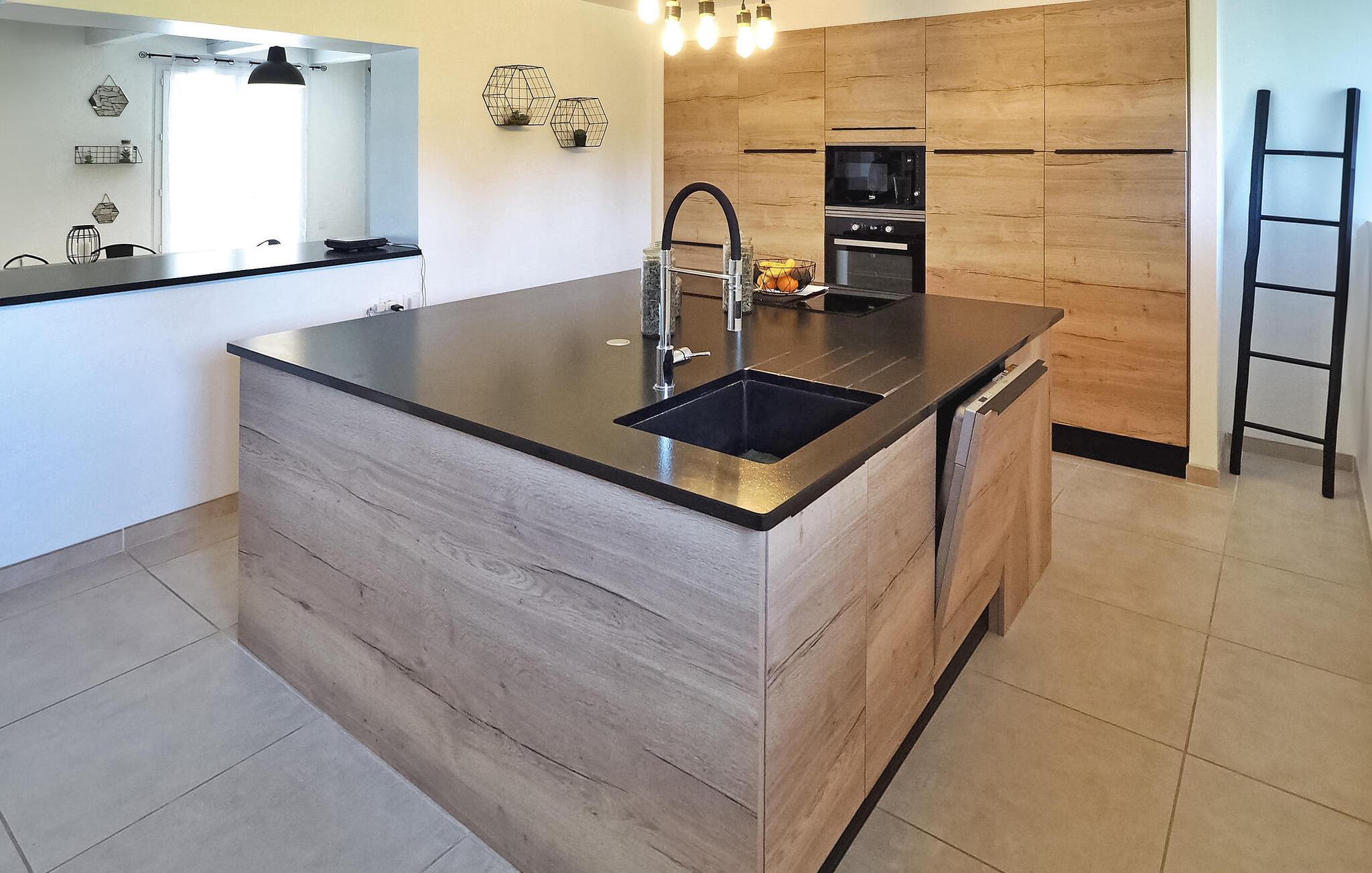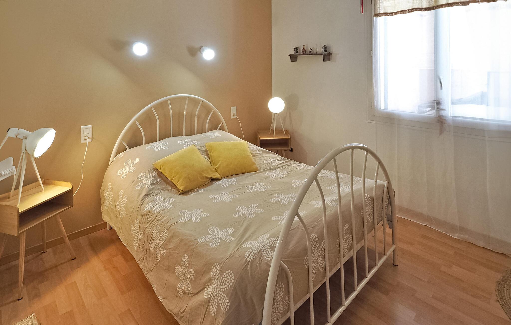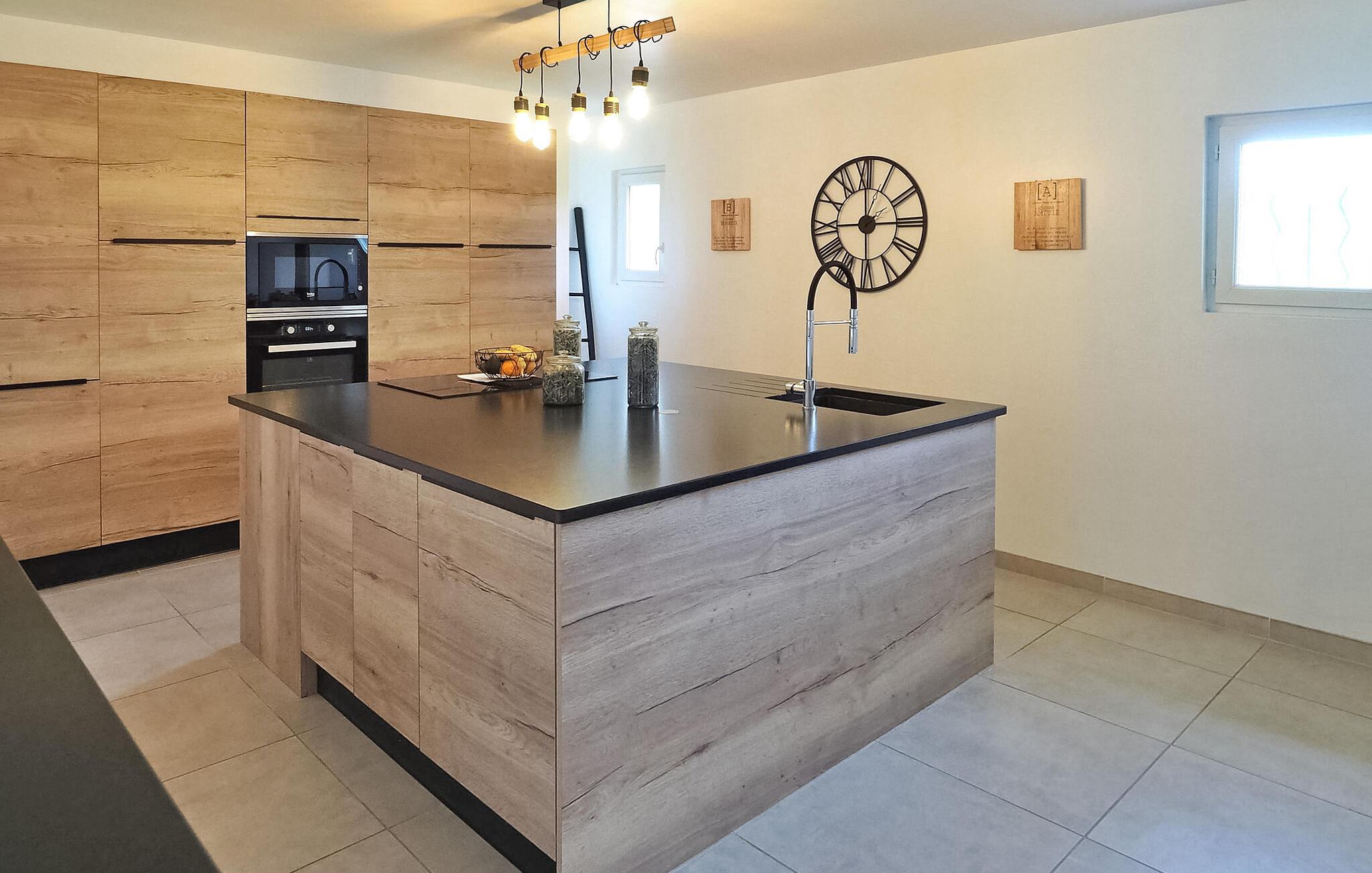 Denne landlige villaen mellom Saint-Rémy-de-Provence og Avignon er et innbydende tilfluktssted med privat basseng og plass til 6 gjester i 3 dobbeltrom som deler et dusjrom. Villaen er på ca. 120 m² og har et inngangsparti med garderobe og en mesanin med et koselig lesehjørne. Det romslige oppholdsrommet har sittegruppe med sofa, lenestol og krakker, spiseplass med bord til 6 personer og et kjøkken med halvåpen planløsning og moderne utstyr. Utenfor har villaen en skyggefull hage med et avslappende loungeområde omgitt av furutrær, en bowlingbane, en huske og en carport. Høydepunktet er det private svømmebassenget på 12 x 6 meter, komplett med en undervannstrapp. En spiseplass på den skyggefulle terrassen har utsikt over det innbydende bassenget og er perfekt for måltider i det fri. I nærheten ligger Saint-Rémy-de-Provence, en av de mest pittoreske byene i Provence med mange severdigheter, butikker og restauranter.