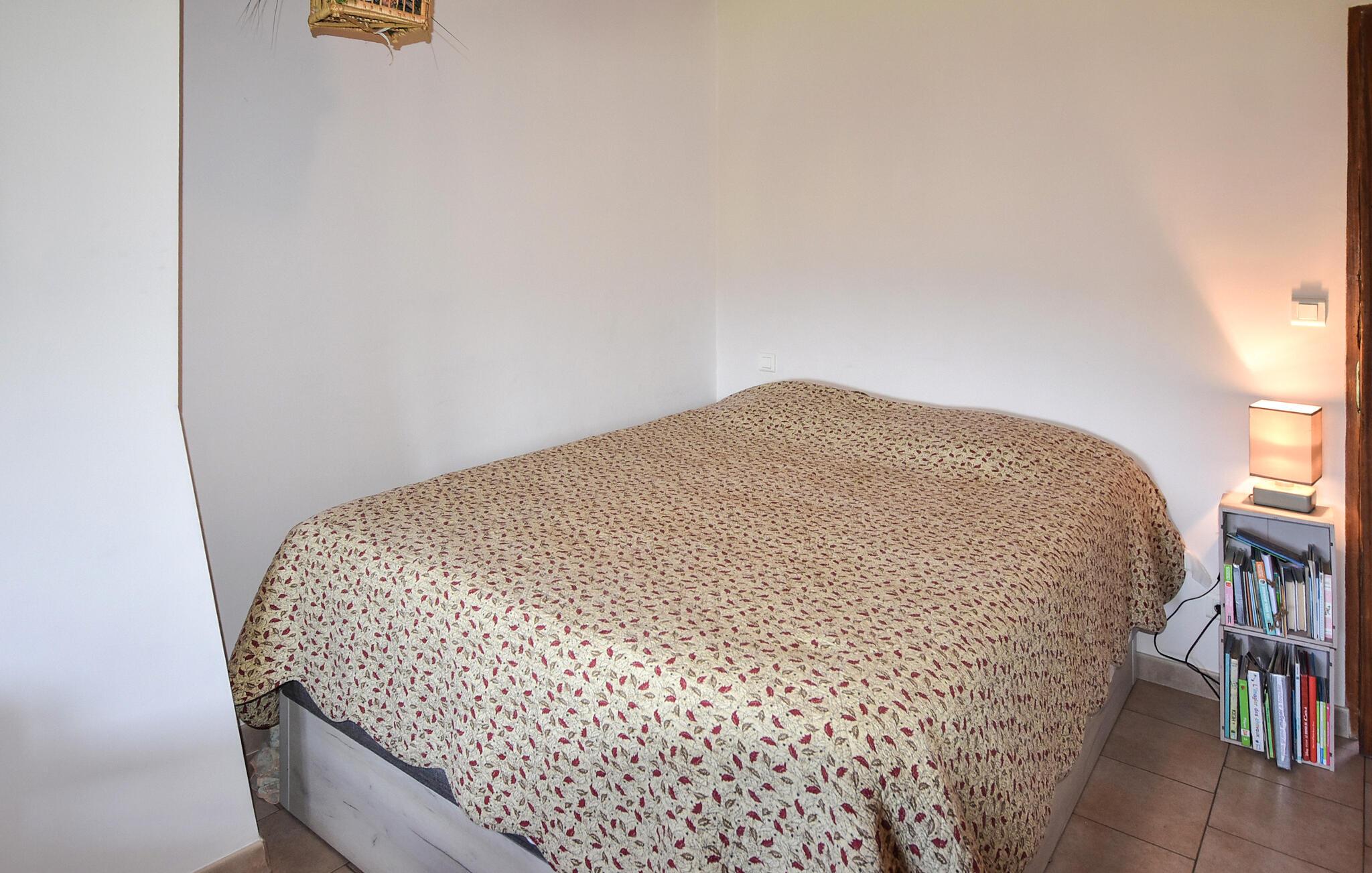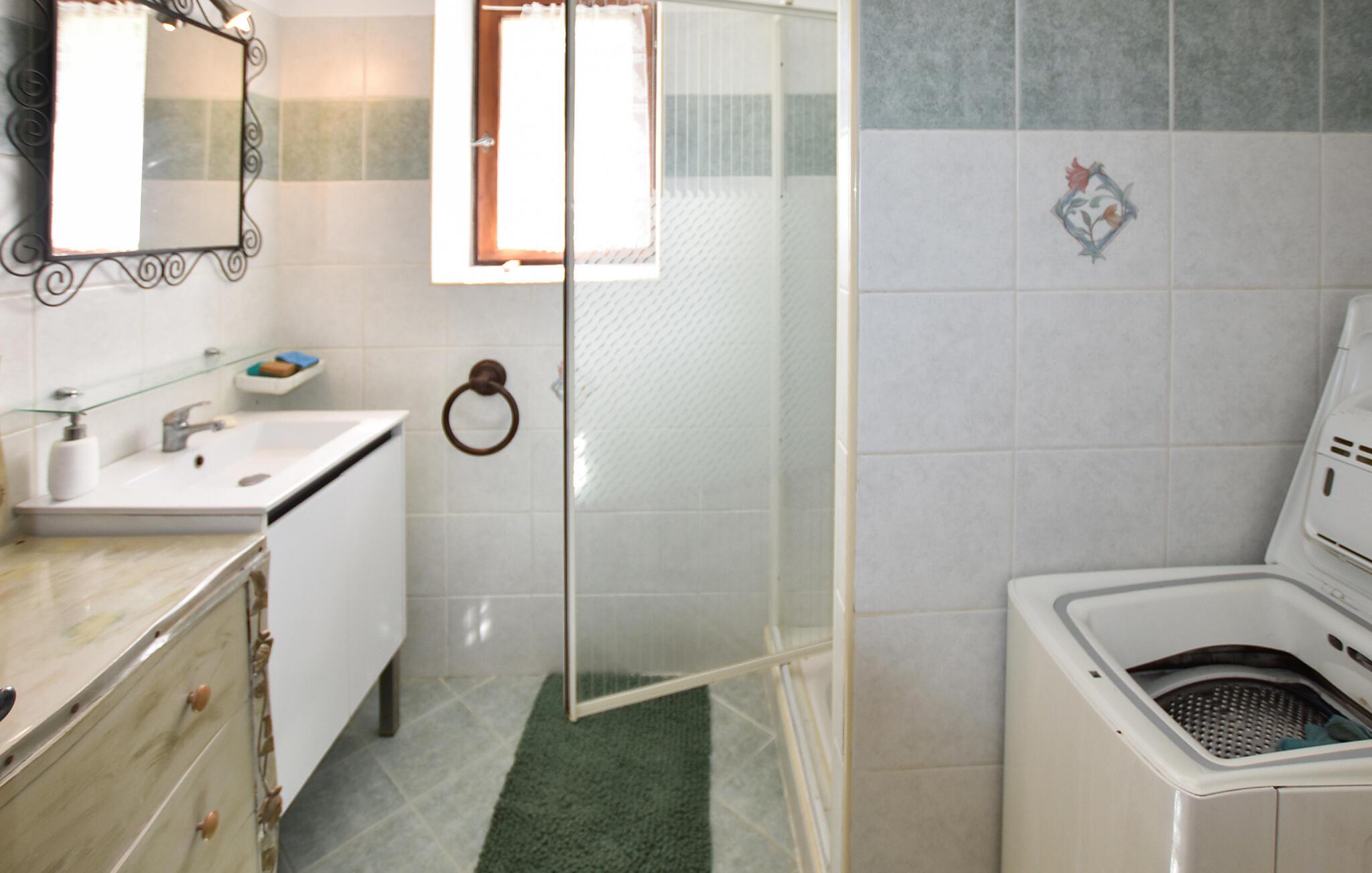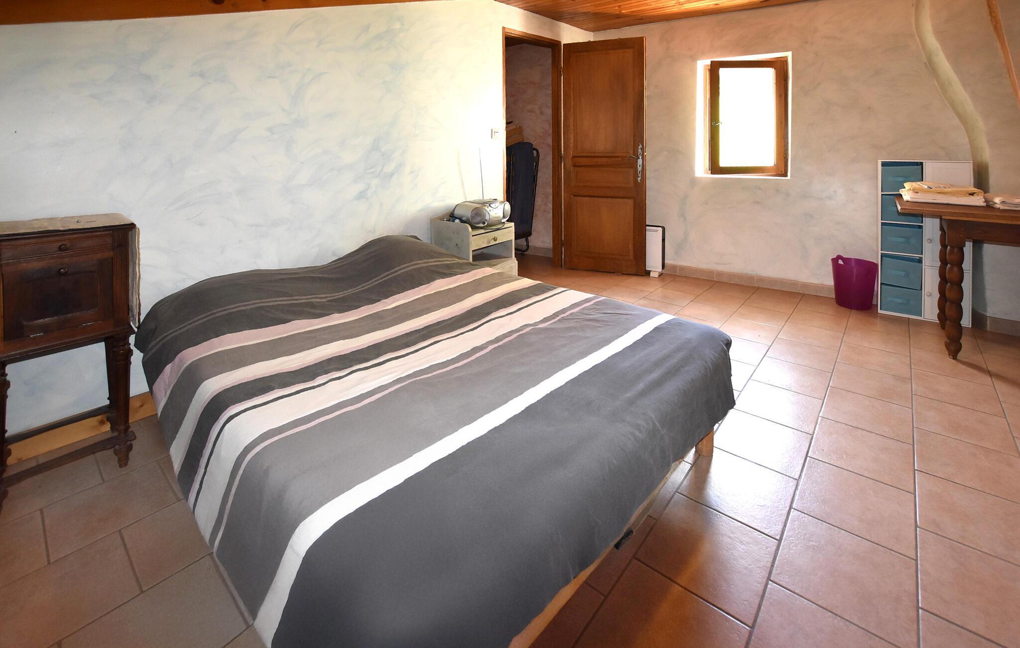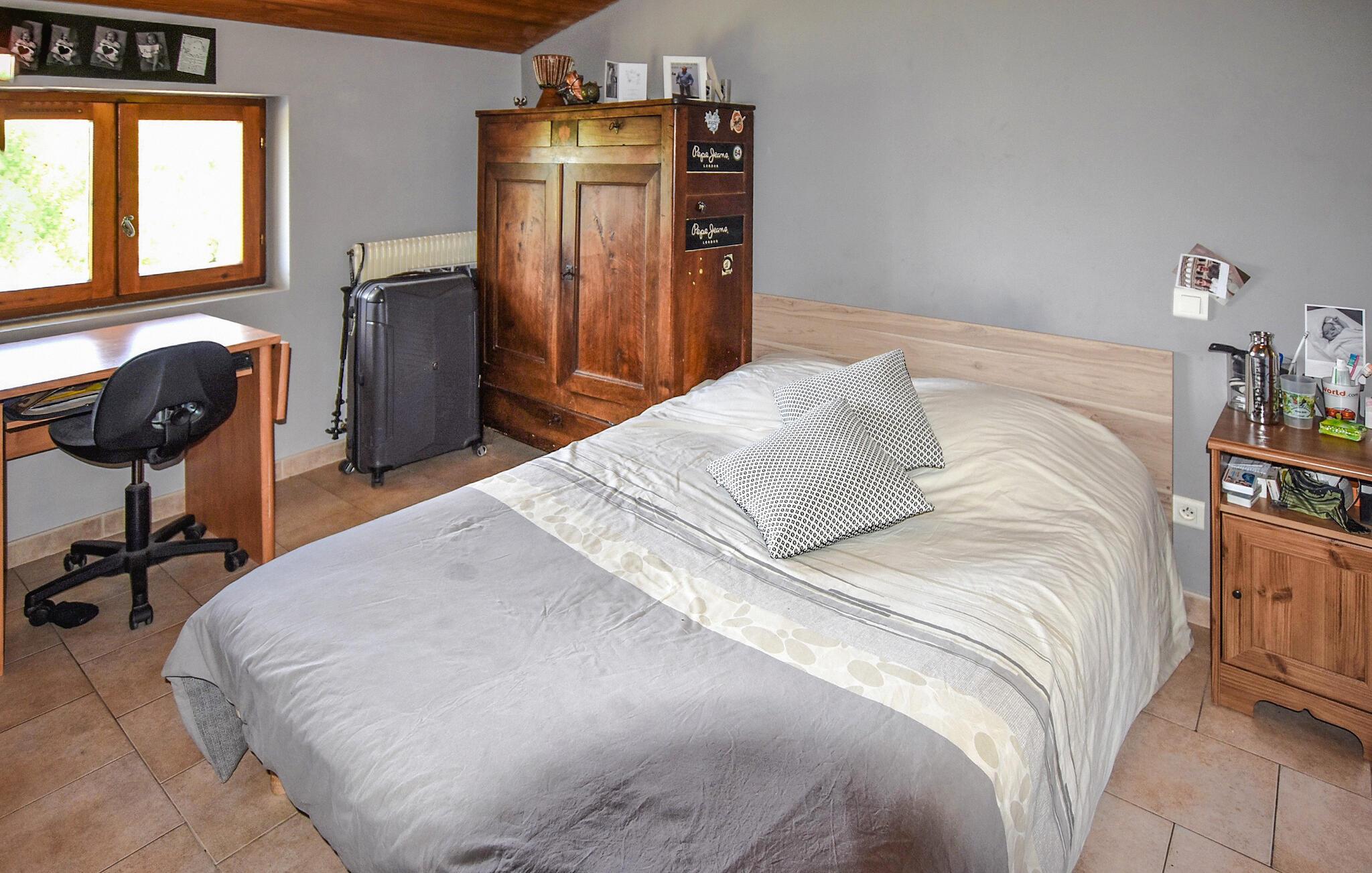 Opplev herlige feriestunder i dette sjarmerende landstedet, som byr på god plass og en fantastisk utsikt over fjellene rundt. Finn deg til rette i den romslige stuen med en koselig sofa, og nyt kveldene sammen ved spisebordet. Bruk det store spisekjøkkenet med sin rustikke sjarm til å tilberede deilige måltider.