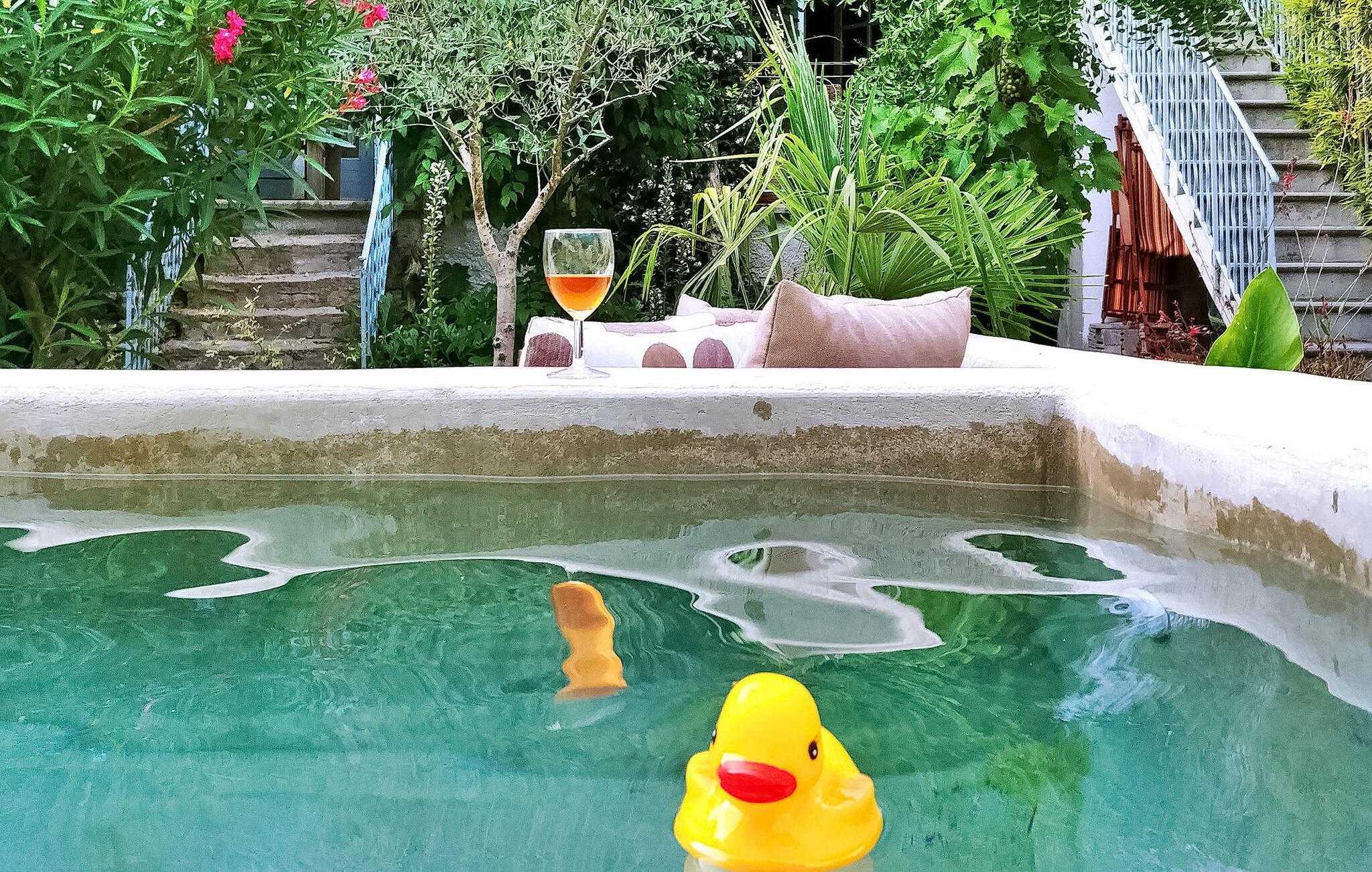 Denne ferieleiligheten ligger mellom det historiske sentrum av Nyons og den pittoreske elvebredden, og er en del av en vakkert restaurert herregård som tilbyr et fredelig tilfluktssted for to midt i den livlige atmosfæren. Rommet ligger i andre etasje i en smakfullt renovert herregård med tre komfortable ferieleiligheter, og er ideelt for en romantisk ferie. Eierne, som bor i første etasje, ønsker deg hjertelig velkommen og sørger for at du får mest mulig privatliv. Leiligheten ligger bare et steinkast fra det sjarmerende sentrum av Nyons med sine livlige markeder, butikker og restauranter. Leiligheten har en fantastisk utsikt over elven, den romerske broen og fjellene. Det åpne kjøkkenet er utstyrt med alt du trenger for et komfortabelt opphold. Etter noen få trappetrinn kommer du til soverommet med dobbeltseng, som er innredet med en art deco-skjenk. En trapp fører opp til en liten privat takterrasse med solsenger og plass til uteservering. Utendørsområdene deles med andre gjester, inkludert en koselig hage og et forfriskende romersk basseng (4,5 x 2,5 m) for avkjøling. De nærliggende elvestrendene er direkte tilgjengelige fra hagen og er ideelle for bading. Du kan parkere i en nærliggende gate og på en offentlig parkeringsplass ca. 50 meter fra huset, eller du kan parkere i en privat garasje på forespørsel og mot et pristillegg. Den gamle kjelleren i herregården er elegant innredet og kan brukes til avslapping, møterom eller til å smake på regionale delikatesser. Vær oppmerksom på at kjæledyr ikke er tillatt av hensyn til alle gjesters fred og ro.