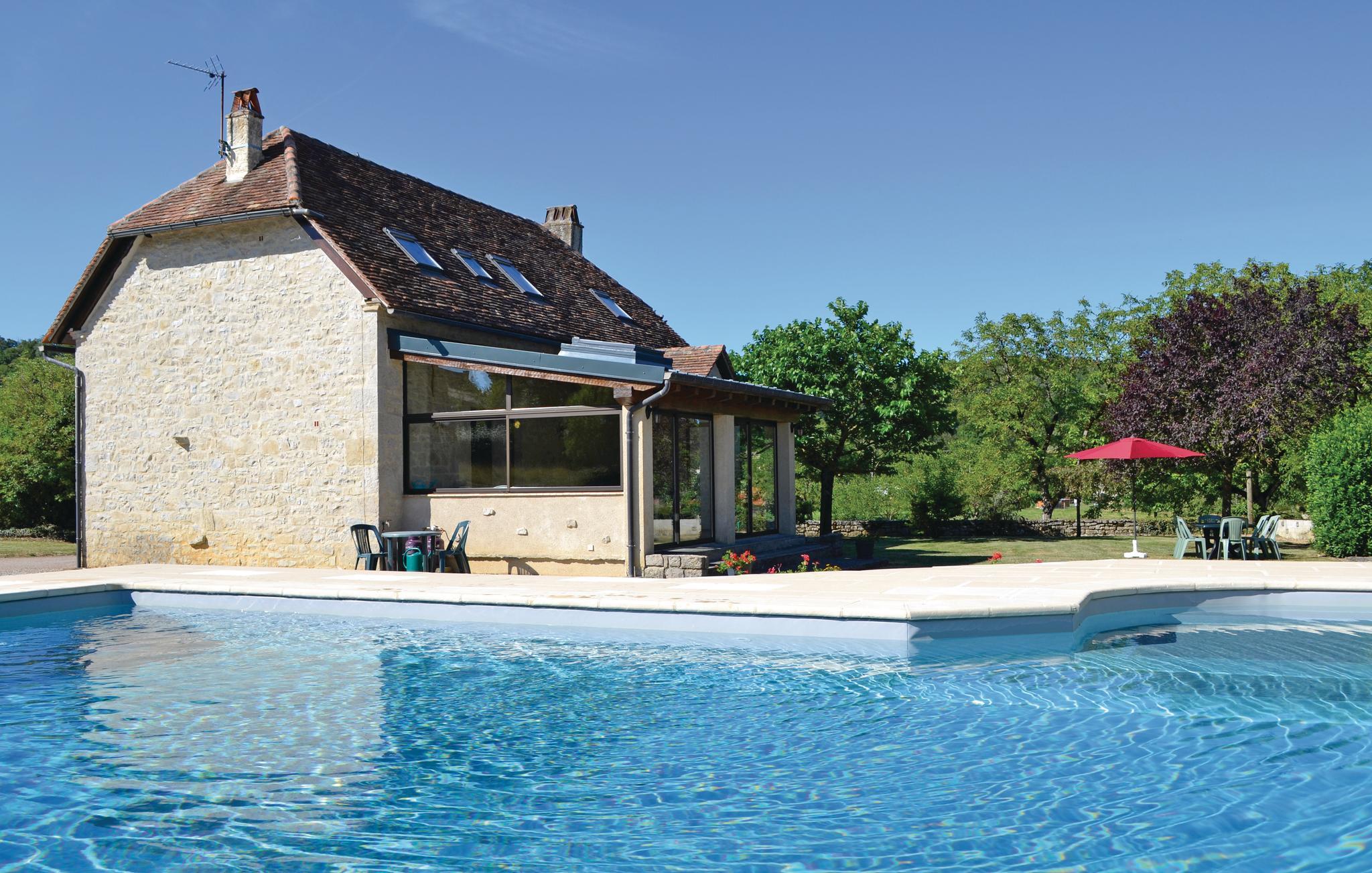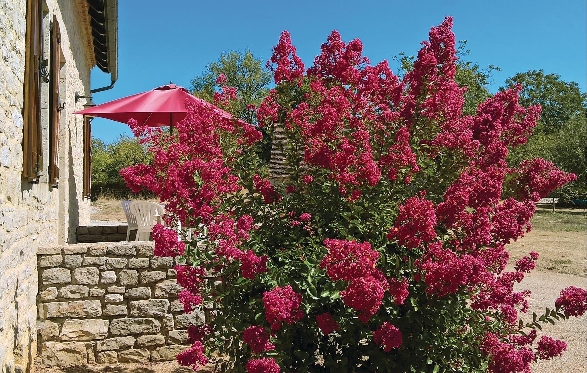 Stor hage med vakkert, privat basseng. Eiendommen har en landlig beliggenhet like utenfor landsbyen Padirac og innen rekkevidde av de historiske byene Cahors, Figéac og Brive-la-Gaillarde (ca. 50-60 km unna). Du befinner deg i departementet Lot, en av de vakreste og mest interessante delene av Frankrike. Padirac nyter stor berømmelse, her er den vakreste dryppsteinsgrotten langt og bredt. Pilegrimsstedet Rocamadour troner imponerende på en 120 m høy fjellvegg. Det er vakre landsbyer i Lot-dalen, ta en tur til St-Cirque-Lapopie med tursko, sykkel, kano eller bil. Innkvarteringen har blitt gjort av eieren til et vakkert og innbydende tilfluktssted for en uforglemmelig ferie.