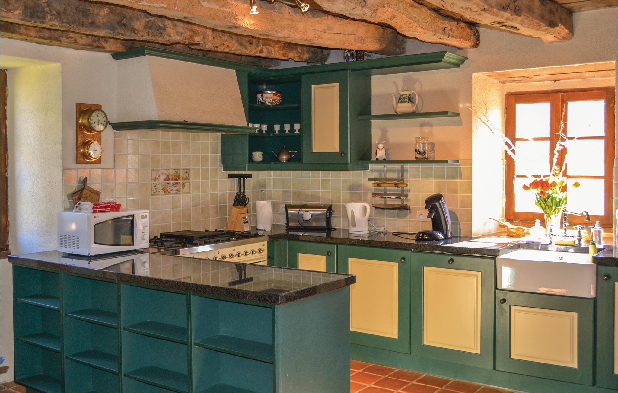 Dette svært romslige feriehuset med privat basseng består av tre individuelle innkvartering, hver med kjøkken, bad og soverom. Eiendommen, med plass til opptil tolv gjester totalt, ligger på en liten rolig vei i den veldig hyggelige Lot-regionen. 3 km unna kan du utforske Gouffre de Padirac. Du kan oppleve denne grotten på den mest imponerende måten ved å ta en båttur på en underjordisk elv. Det populære pilegrimsstedet Rocamadour (15 km) er også verdt en avstikker. Besøk kirken Notre-Dame og den berømte Madame Noire, og ta med barna til apeskogen Forêt des Singes og ørneparken Sanctuaire des Aigles. Rocamadour er også kjent for sin lille runde geitost, som smaker best sammen med et glass god vin. Dordogne-dalen (6 km) er det ideelle stedet for sportsaktiviteter: svømming, kanopadling, kajakkpadling, fotturer og og og. Dette vakre feriehuset lover en begivenhetsrik og uforglemmelig ferie i Lot. Privat boblebad på forespørsel og mot et gebyr.