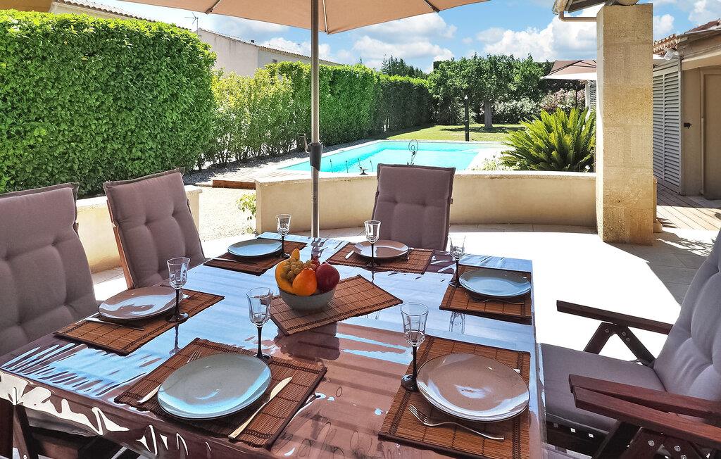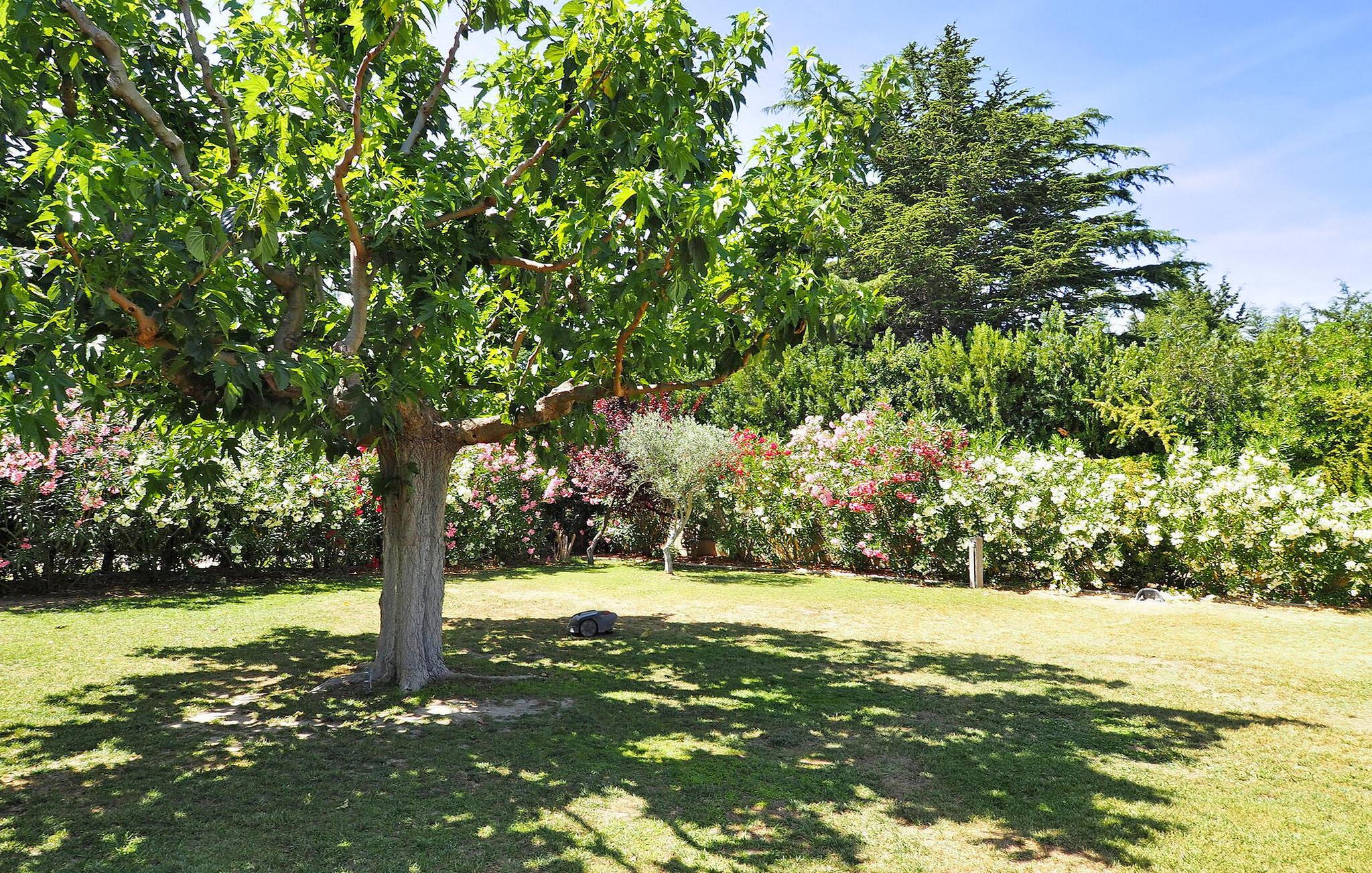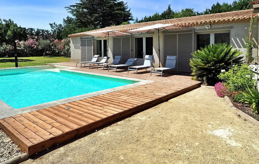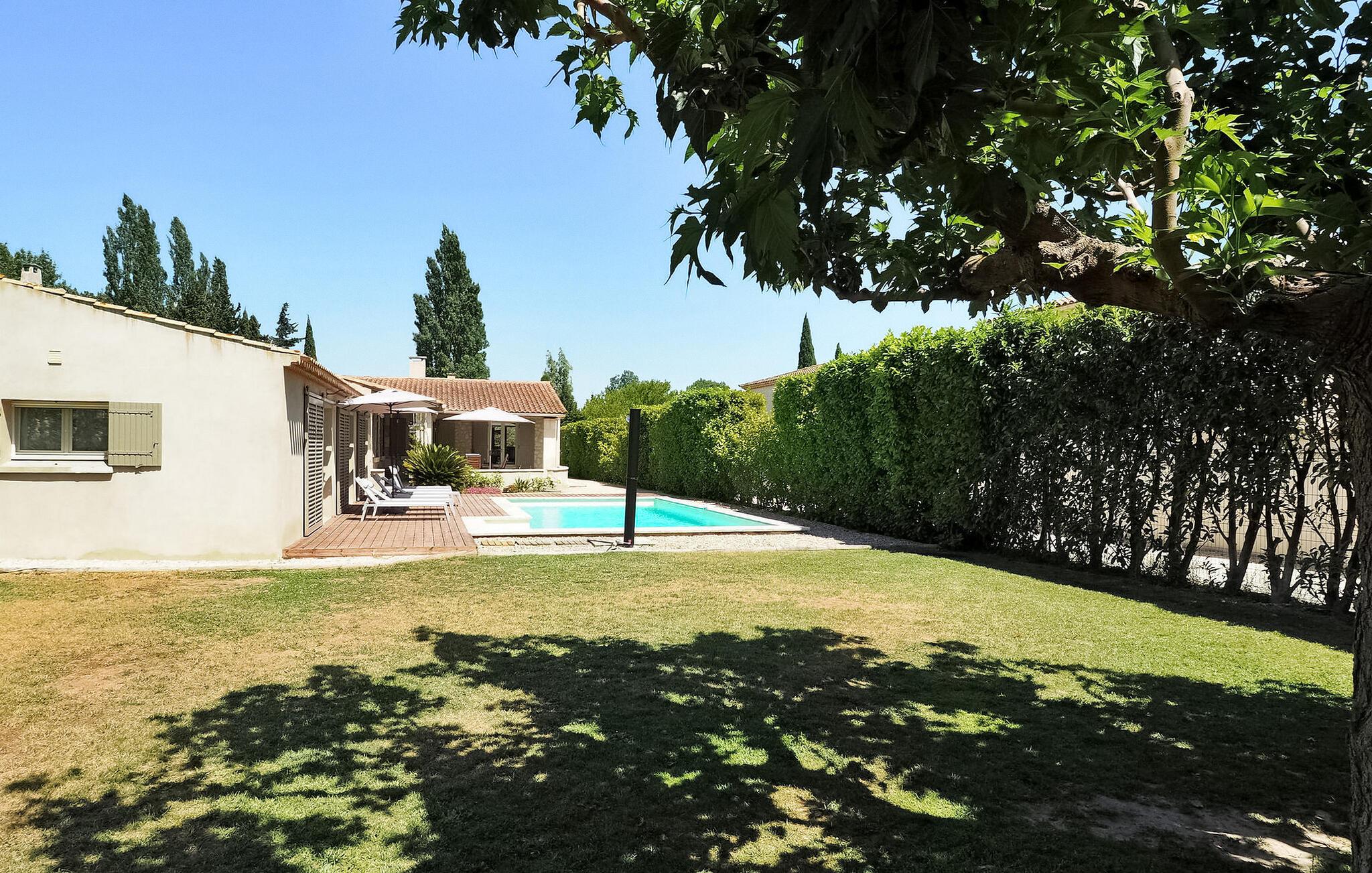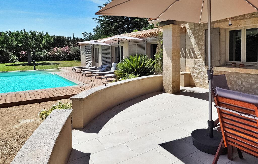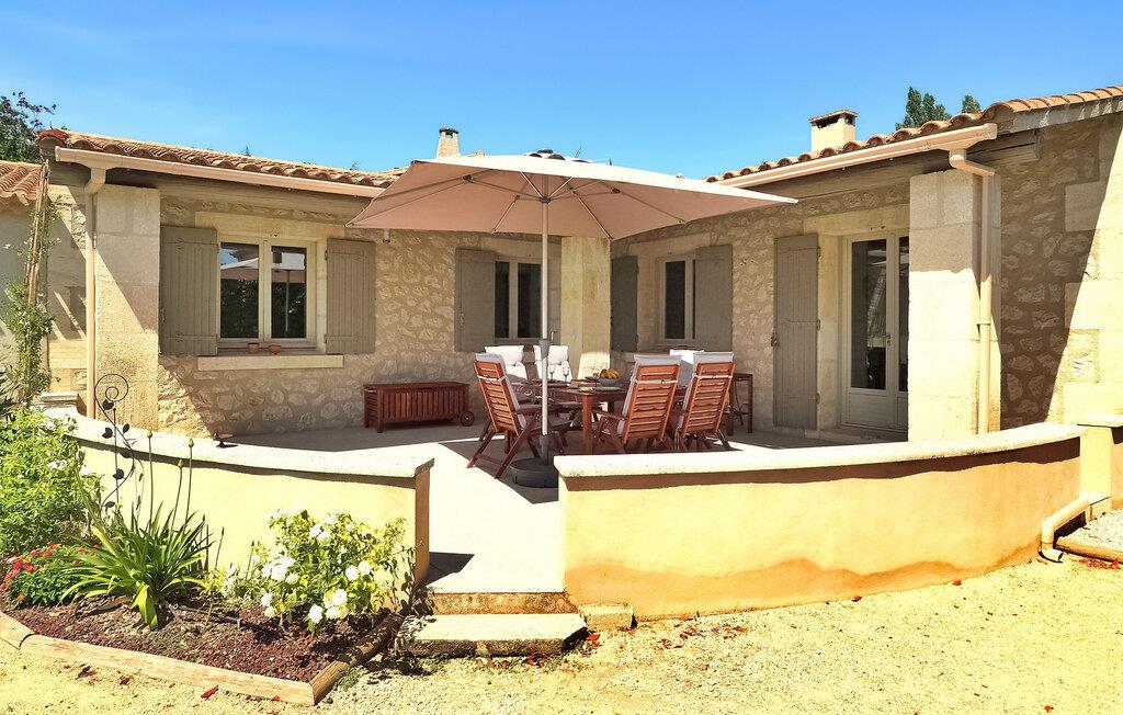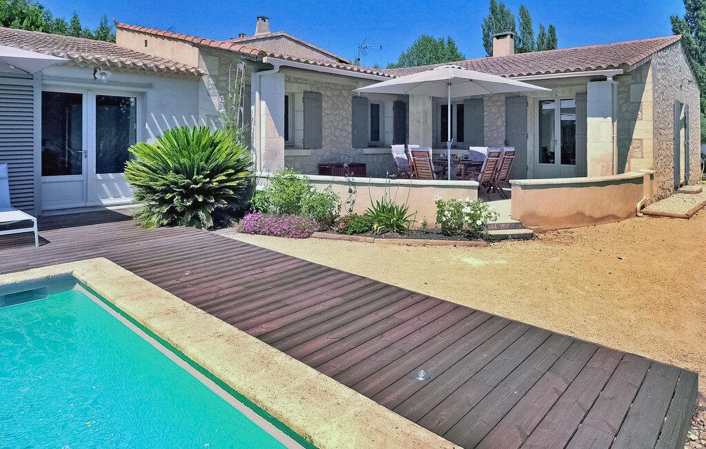 Feriehuset Paradou i Alpilles i Provence ligger nær sentrum av landsbyen. Dette enetasjes feriehuset har store karnappvinduer som fører ut til en overbygd terrasse og et privat bassengområde. Huset har et kjøkken med klimaanlegg og en sentral kjøkkenøy, en spiseplass og en TV-stue, som også har klimaanlegg. Kjøkkenet er utstyrt med diverse hvitevarer. Alle soverommene har klimaanlegg og eget bad. Utenfor har eiendommen et privat svømmebasseng (9,5 x 4,5 meter), solsenger, soldusj og en spiseterrasse. Du kan beundre fontenen med fisk på parkeringsplassen. Vær imidlertid forsiktig hvis det er små barn i nærheten av fontenen. Den autonome gressklipperen må ikke flyttes eller hindres under klippingen, og det er selvsagt forbudt å klatre på den. Huset har en ideell beliggenhet i krysset mellom alle Alpilles-kommunene, slik at du kan utforske Alpilles. Paradou er en sjarmerende, renovert, rolig landsby, trafikken er rolig, sykkelstier og sykkelutleie er tilgjengelig på stedet. Utgangspunkt for fotturer og tilgang til Alpilles-massivet fra landsbyen. Massif du Luberon ligger ca. 1 times kjøring mot øst og Nîmes mot vest. Strendene i Saintes-Maries-de-la-Mer ligger 60 km unna. I nærheten i landsbyen: Bakeri, slakter, supermarked, bar, sykkelutleie, frisør, marked hver tirsdag morgen, arrangementer i sommersesongen.
