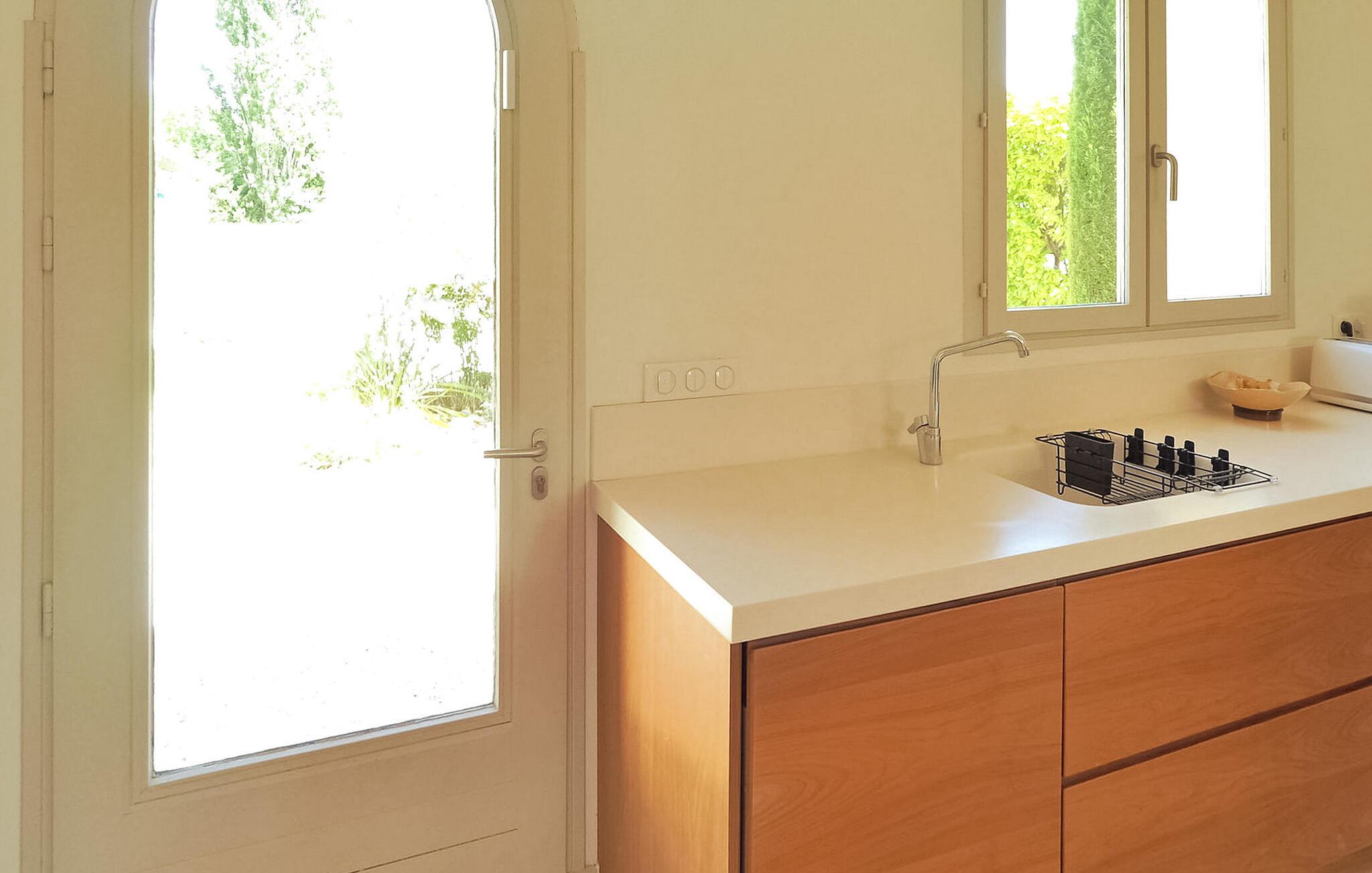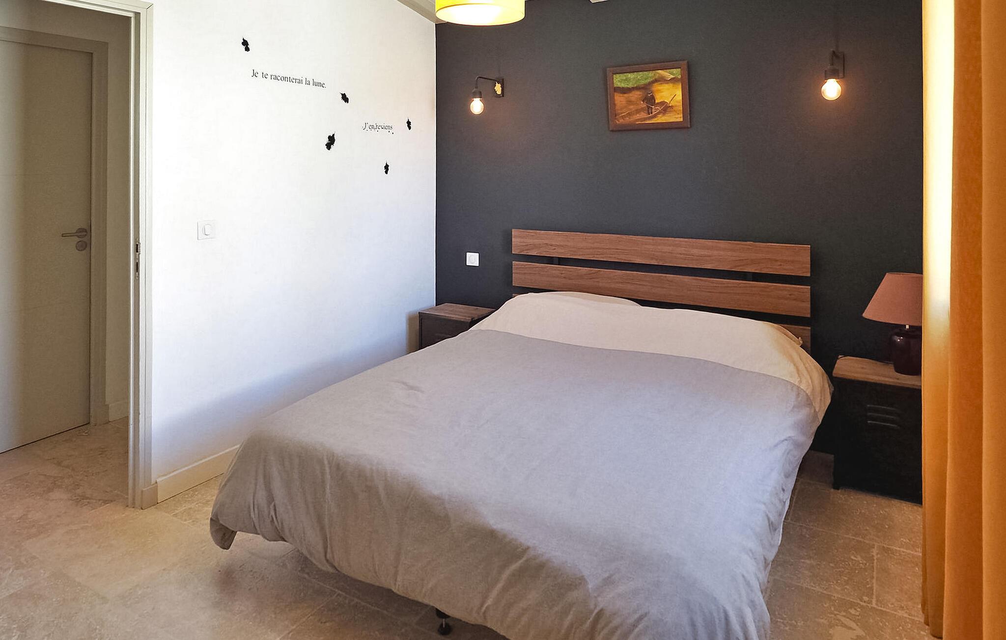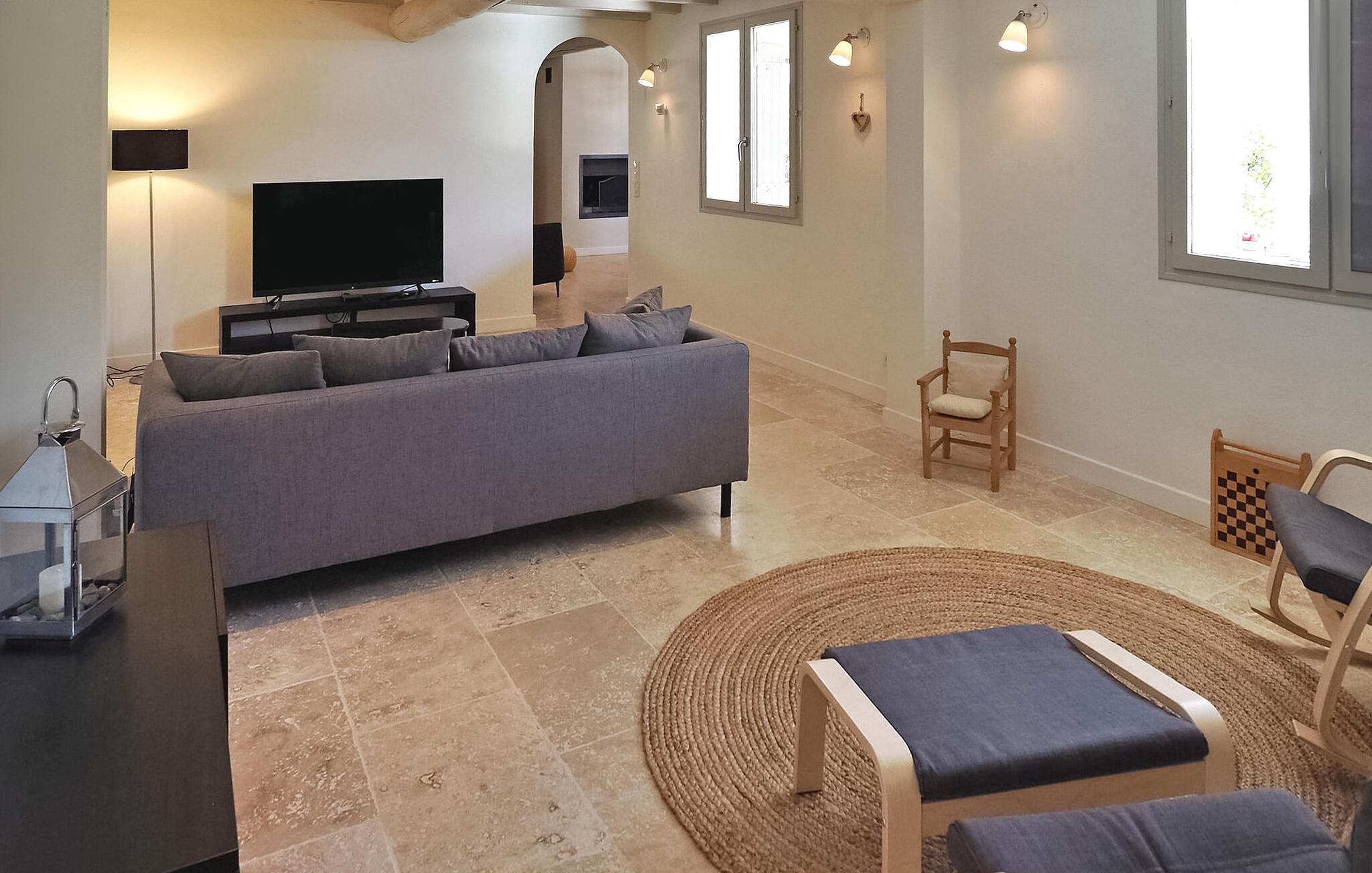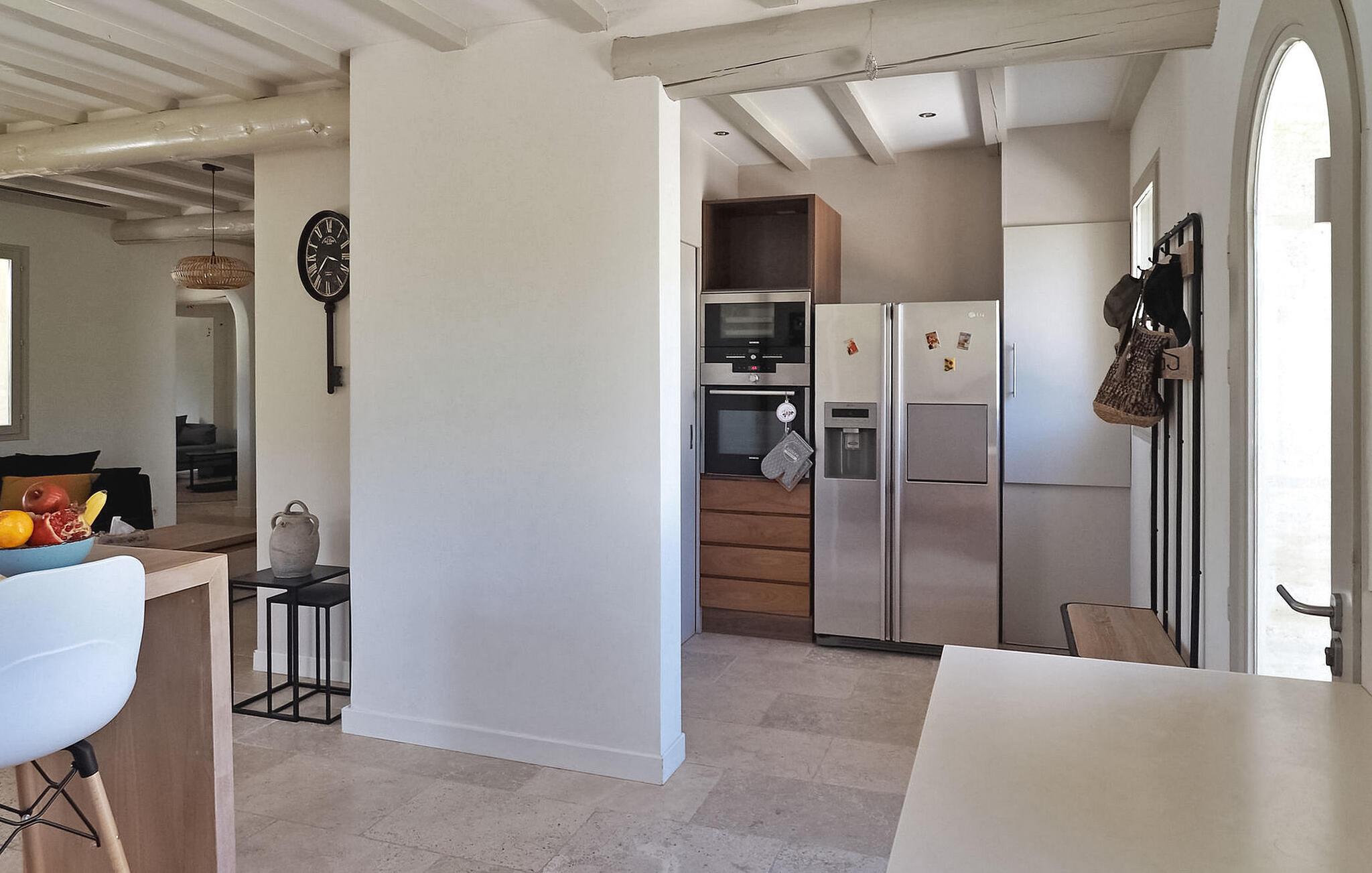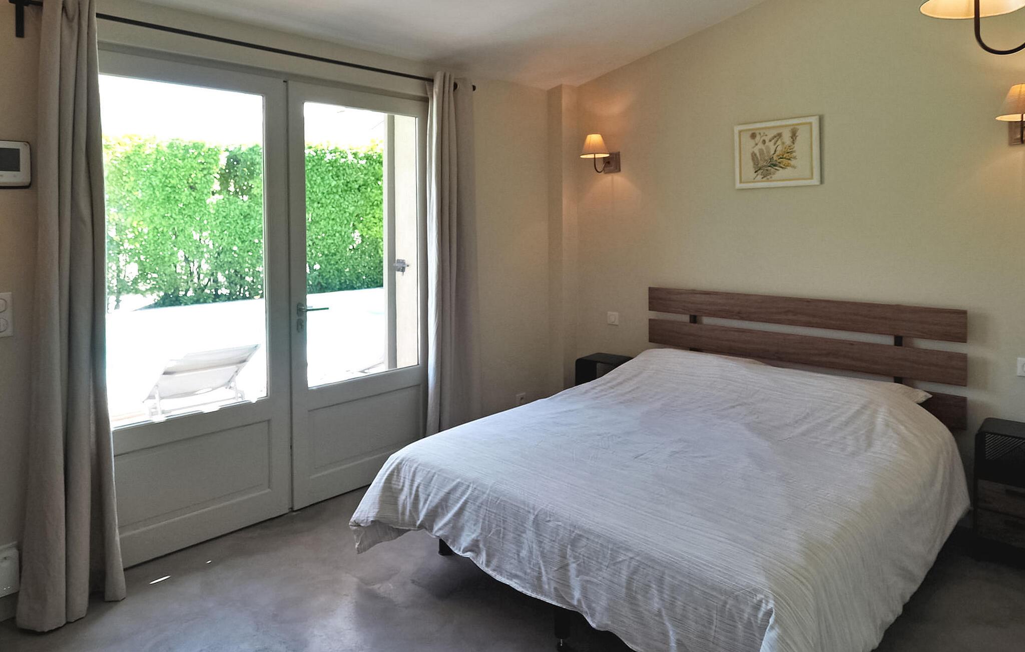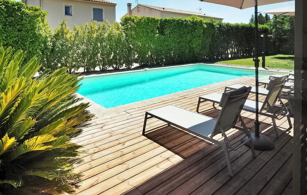 Feriehuset Paradou i Alpilles i Provence ligger nær sentrum av landsbyen. Dette enetasjes feriehuset har store karnappvinduer som fører ut til en overbygd terrasse og et privat bassengområde. Huset har et kjøkken med klimaanlegg og en sentral kjøkkenøy, en spiseplass og en TV-stue, som også har klimaanlegg. Kjøkkenet er utstyrt med diverse hvitevarer. Alle soverommene har klimaanlegg og eget bad. Utenfor har eiendommen et privat svømmebasseng (9,5 x 4,5 meter), solsenger, soldusj og en spiseterrasse. Du kan beundre fontenen med fisk på parkeringsplassen. Vær imidlertid forsiktig hvis det er små barn i nærheten av fontenen. Den autonome gressklipperen må ikke flyttes eller hindres under klippingen, og det er selvsagt forbudt å klatre på den. Huset har en ideell beliggenhet i krysset mellom alle Alpilles-kommunene, slik at du kan utforske Alpilles. Paradou er en sjarmerende, renovert, rolig landsby, trafikken er rolig, sykkelstier og sykkelutleie er tilgjengelig på stedet. Utgangspunkt for fotturer og tilgang til Alpilles-massivet fra landsbyen. Massif du Luberon ligger ca. 1 times kjøring mot øst og Nîmes mot vest. Strendene i Saintes-Maries-de-la-Mer ligger 60 km unna. I nærheten i landsbyen: Bakeri, slakter, supermarked, bar, sykkelutleie, frisør, marked hver tirsdag morgen, arrangementer i sommersesongen.