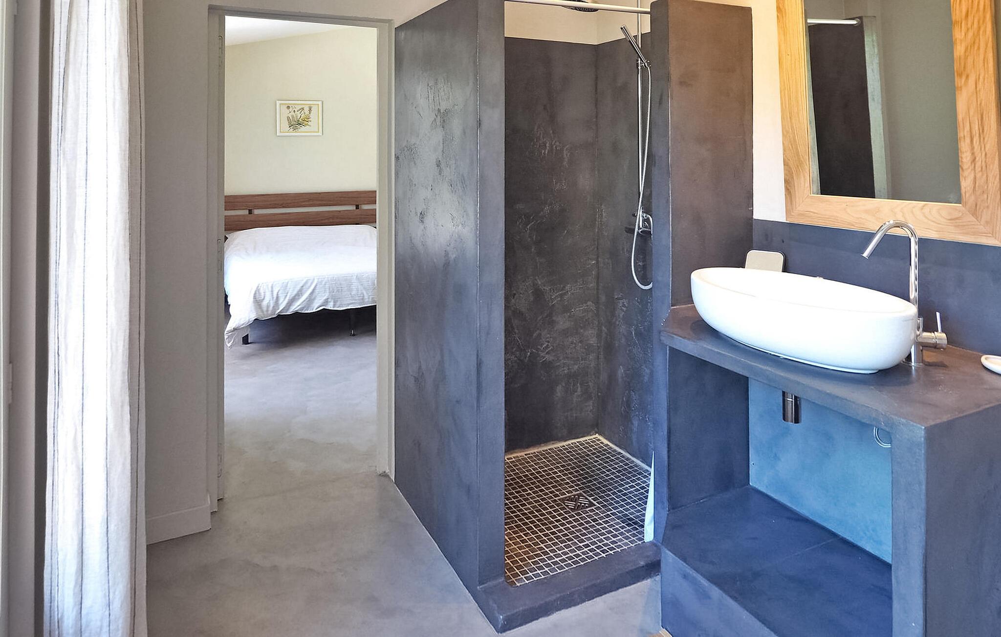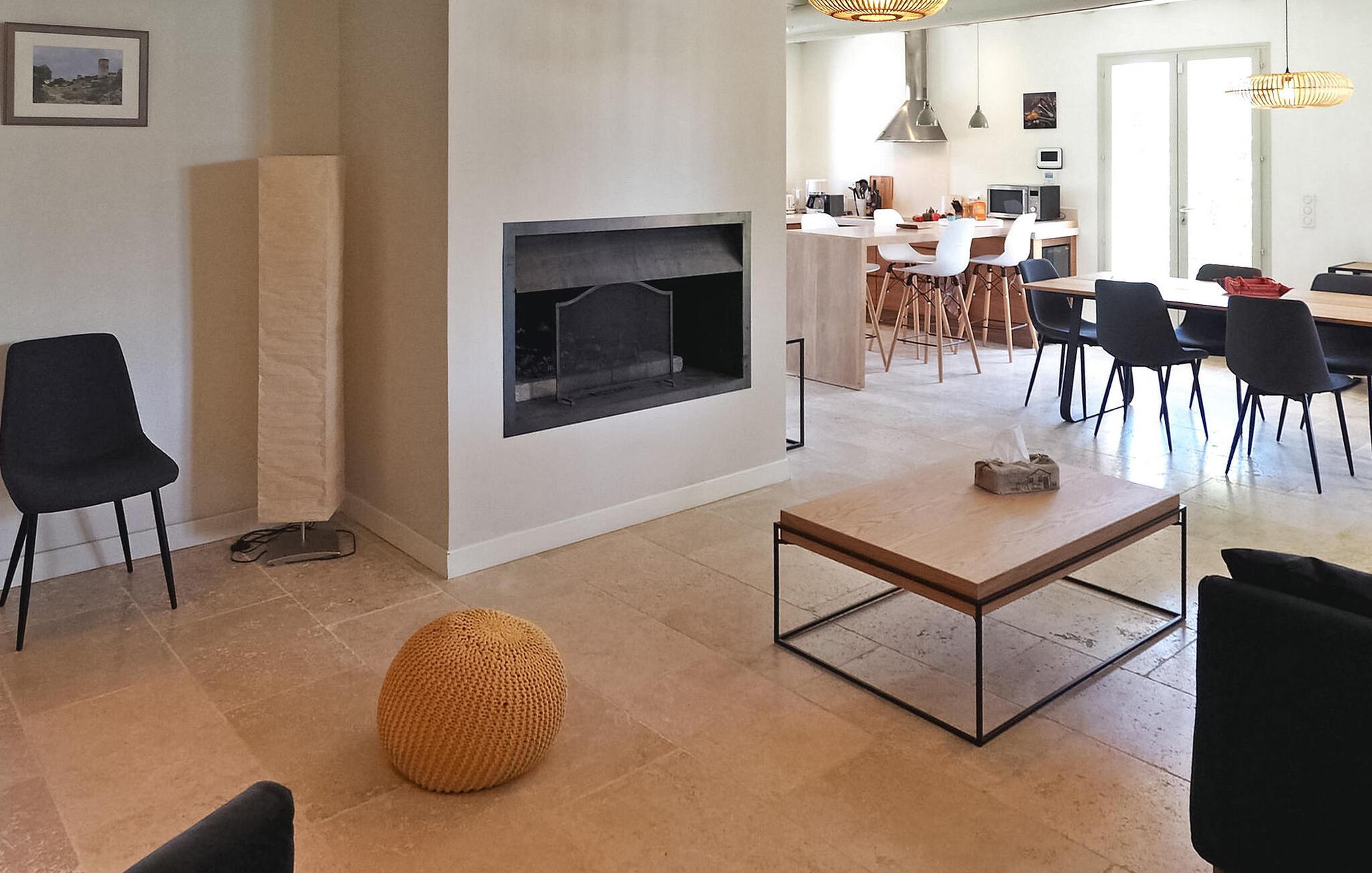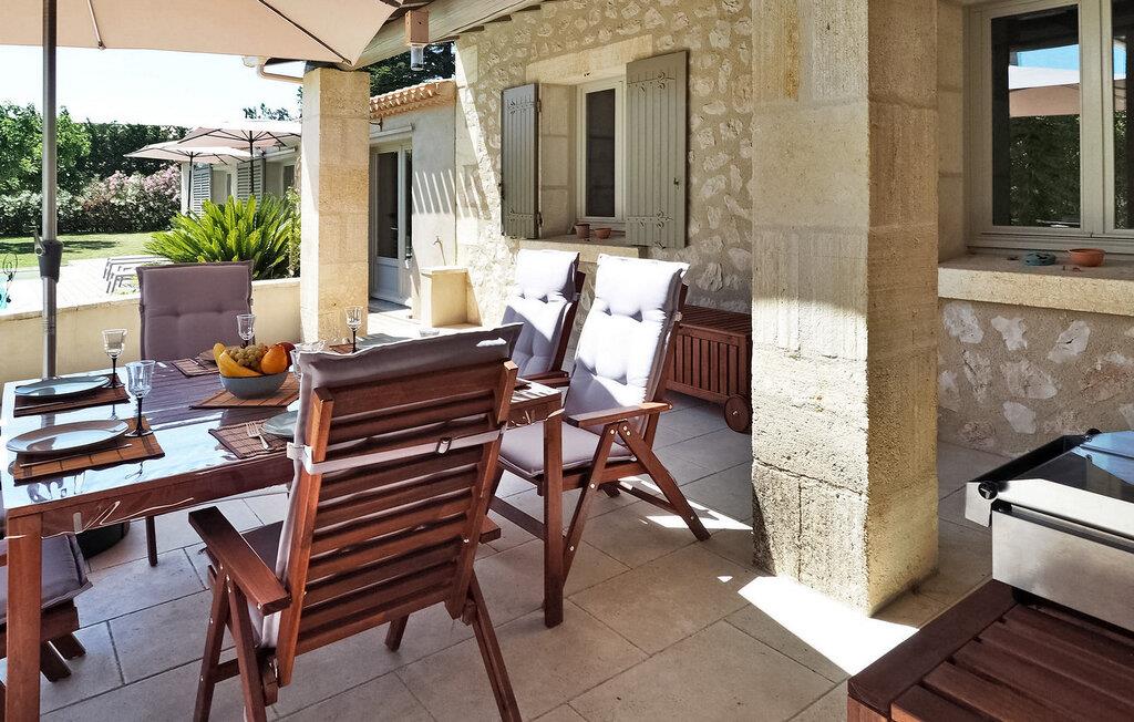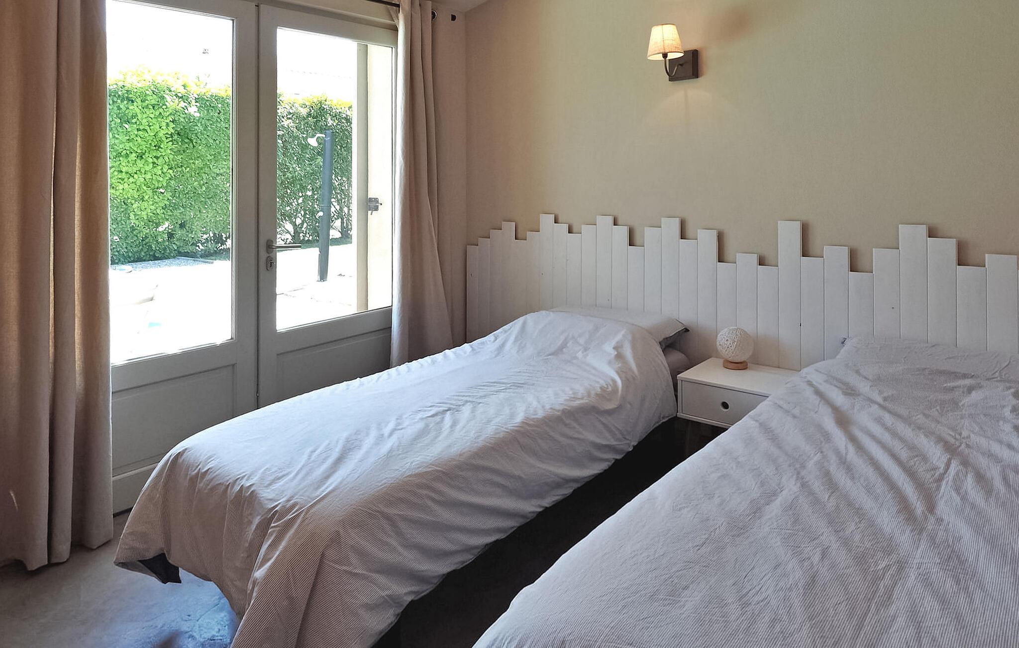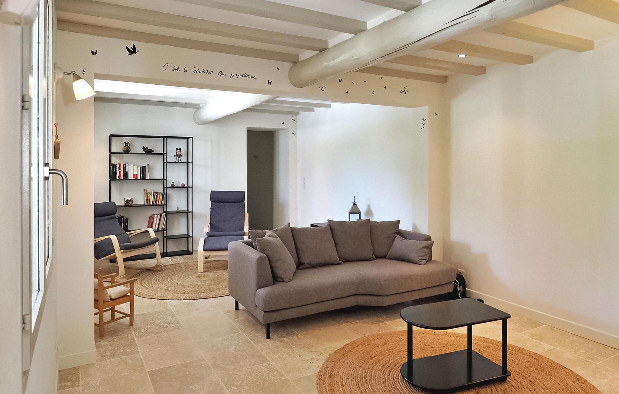 Feriehuset Paradou i Alpilles i Provence ligger nær sentrum av landsbyen. Dette enetasjes feriehuset har store karnappvinduer som fører ut til en overbygd terrasse og et privat bassengområde. Huset har et kjøkken med klimaanlegg og en sentral kjøkkenøy, en spiseplass og en TV-stue, som også har klimaanlegg. Kjøkkenet er utstyrt med diverse hvitevarer. Alle soverommene har klimaanlegg og eget bad. Utenfor har eiendommen et privat svømmebasseng (9,5 x 4,5 meter), solsenger, soldusj og en spiseterrasse. Du kan beundre fontenen med fisk på parkeringsplassen. Vær imidlertid forsiktig hvis det er små barn i nærheten av fontenen. Den autonome gressklipperen må ikke flyttes eller hindres under klippingen, og det er selvsagt forbudt å klatre på den. Huset har en ideell beliggenhet i krysset mellom alle Alpilles-kommunene, slik at du kan utforske Alpilles. Paradou er en sjarmerende, renovert, rolig landsby, trafikken er rolig, sykkelstier og sykkelutleie er tilgjengelig på stedet. Utgangspunkt for fotturer og tilgang til Alpilles-massivet fra landsbyen. Massif du Luberon ligger ca. 1 times kjøring mot øst og Nîmes mot vest. Strendene i Saintes-Maries-de-la-Mer ligger 60 km unna. I nærheten i landsbyen: Bakeri, slakter, supermarked, bar, sykkelutleie, frisør, marked hver tirsdag morgen, arrangementer i sommersesongen.