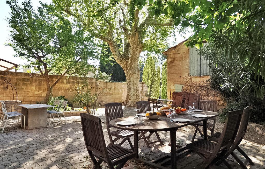 Feriehuset i Paradou har privat basseng og en skyggefull hage. Huset går over tre etasjer og har fasiliteter som TV-stue, velutstyrt kjøkken, vaskerom, stue/spisestue og fire soverom som deler på to bad med delvis aircondition. Utenfor er det et privat basseng og et skyggefullt område med sitteplasser. Vær oppmerksom på at det er en sikker brønn på eiendommen. Huset ligger like ved veien som fører til landsbyen Paradou, bare 400 meter fra det lokale bakeriet, slakteren, minimarkedet, sykkelutleien, legene og baren. Nyt ferien i en bondegård (Mas), ditt feriehus i Bouches-du-Rhône i Provence.