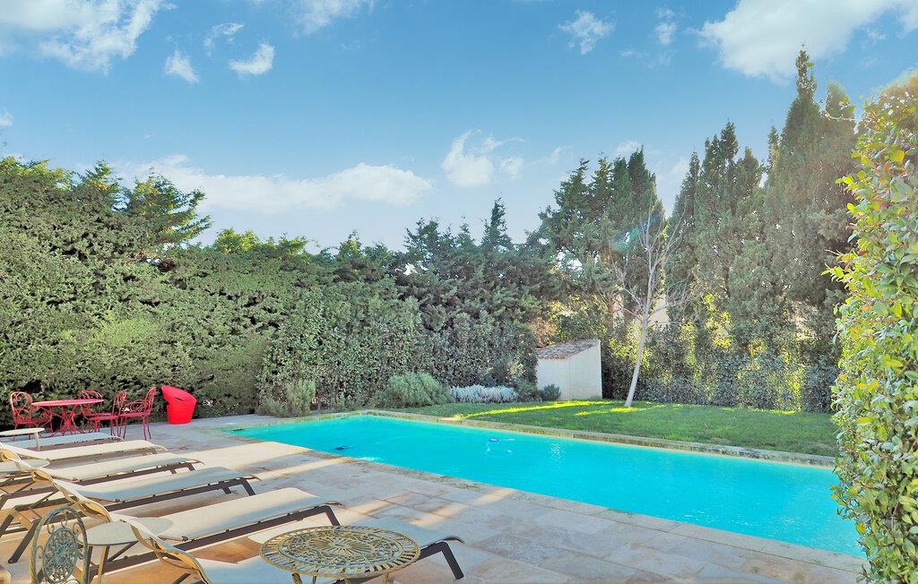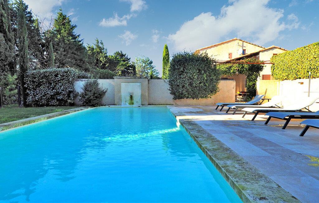 Dette store landstedet med privat basseng ligger i nærheten av landsbyen Paradou i Provence. I første etasje er det inngang med toalett og vaskerom. Stuen har åpen planløsning med kjøkken og spiseplass. I første etasje er det også en hovedsuite med dobbeltseng og eget bad med badekar, dusjkabinett, dobbel vask og toalett. I øverste etasje er det fire soverom med dobbeltseng og eget dusjrom eller felles bad. Utenfor er det en terrasse i skyggen av blåregn med bord og 12 stoler, mens en annen overbygd terrasse har hagemøbler for 8 personer. Det er også en egen overbygd terrasse med bordfotball og dart samt en bowlingbane. Tilgangen til det inngjerdede bassenget er sikret med to porter, og det er 6 solsenger og 2 solstoler ved bassenget. Butikkene i Paradou ligger ca. 350 meter fra huset. Her finner du et supermarked, en slakter, et bakeri, sykkelutleie/-salg, et marked tirsdag morgen og et sesongbasert marked fredag kveld. Landsbyfestivalen Paradou arrangeres den første helgen i september med tyrefekting, ball og gigantisk paella. Attraktivt feriehus med stor hage og privat basseng, i nærheten av lokale fasiliteter.
