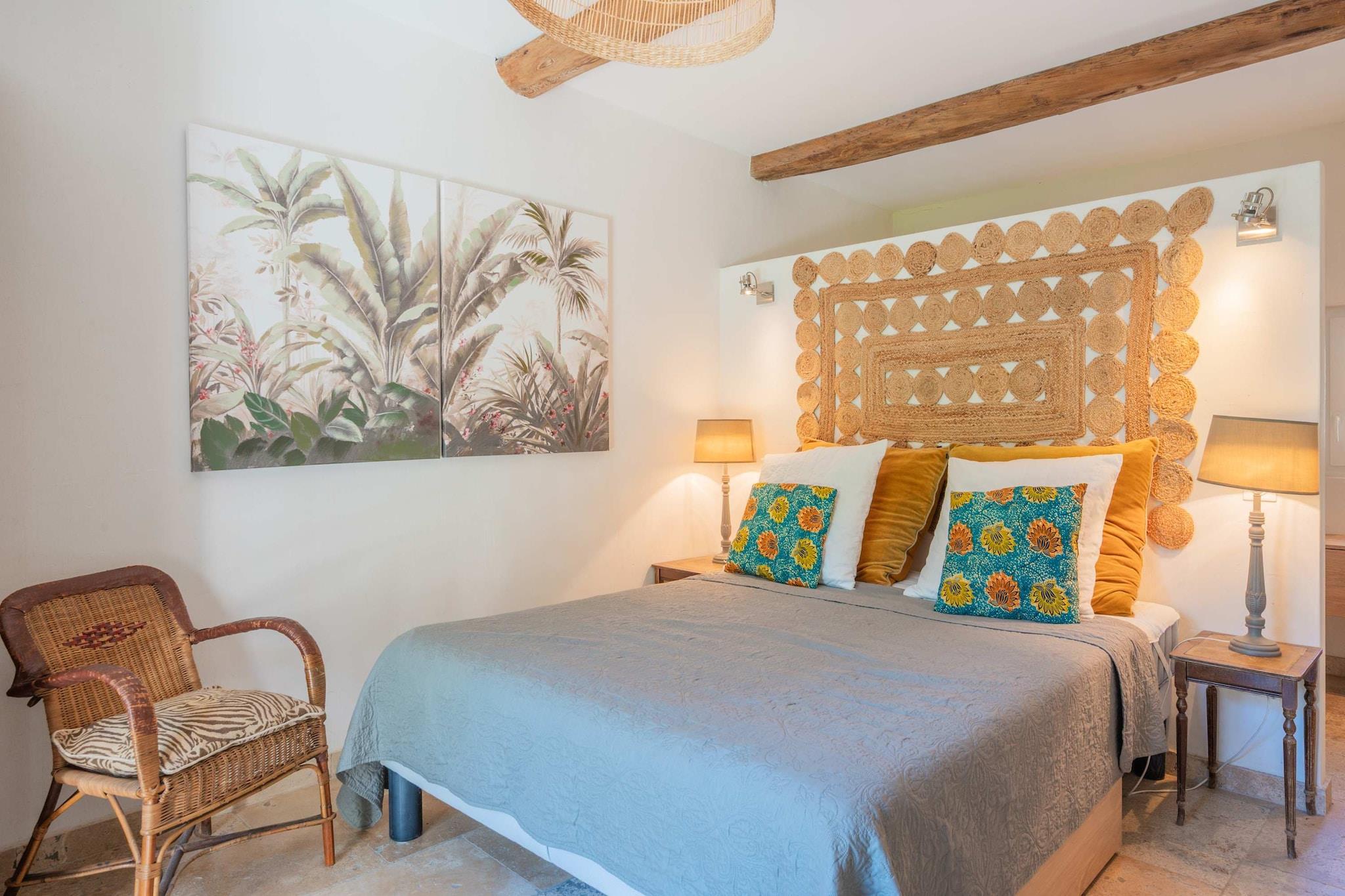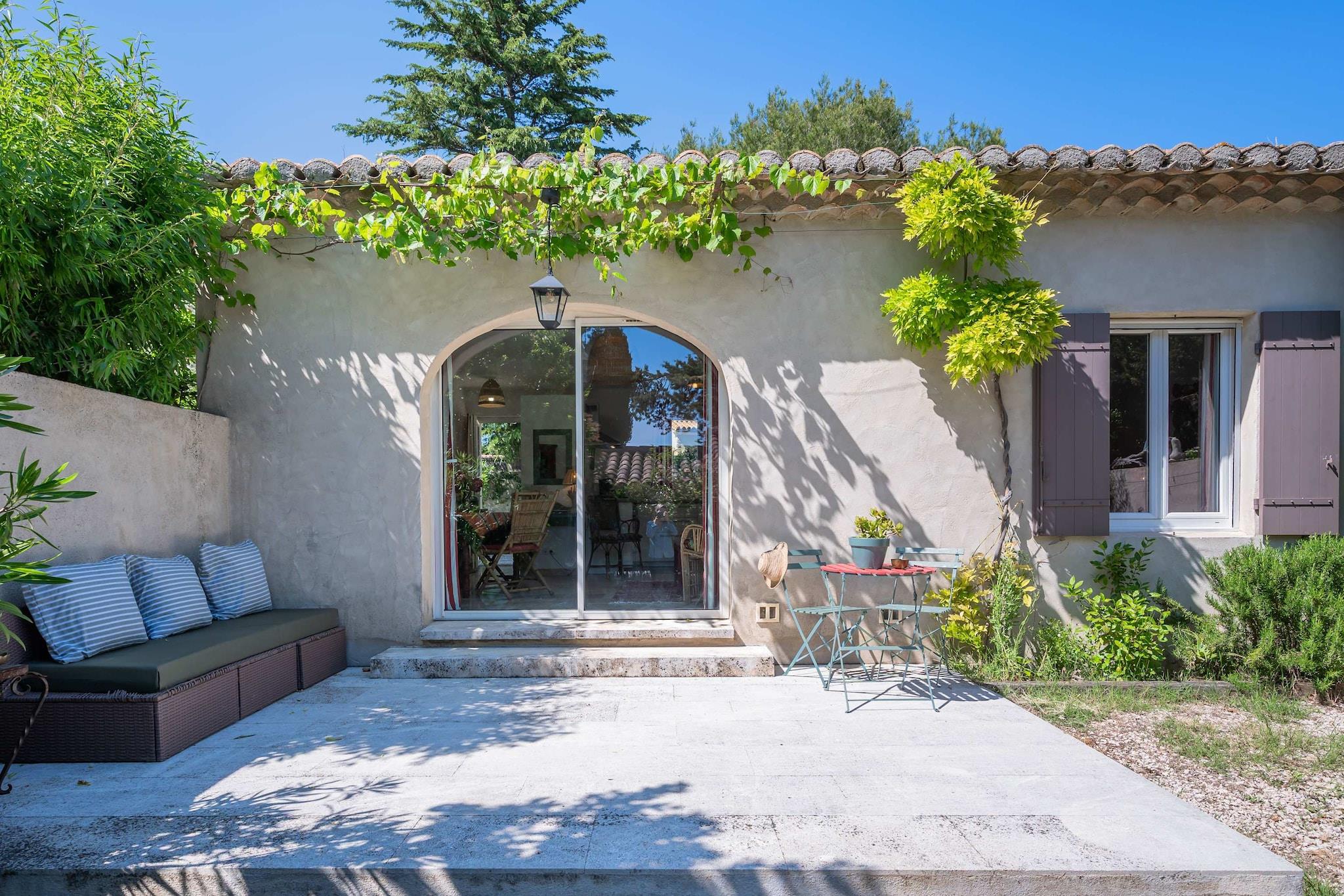 Dra til de bølgende åsene i Alpillene og bosett deg i denne fredelige villaen i den stille landsbyen Paradou, hvor olivenlunder, steinveier og provençalsk ro omgir deg. Det er den ideelle basen for de som ønsker å nyte turer på landet, landsbysjarm – og fortsatt dele gode stunder med andre under ett tak. Når du kommer inn, finner du et hjem bygget for en gruppe. Innvendig finner du en romslig og sjarmerende åpen stue med stue, spisestue og et fullt utstyrt kjøkken, et soverom med eget bad. Når du går opp, finner du et møblert soverom med en queen-size-seng og et tilhørende bad, to soverom med henholdsvis en queen-size-seng og to enkeltsenger, med delt bad og toalett. Det er et separat gjesterom som har en queen-size-seng og et velutstyrt bad, et toalett og en liten hage som er tilknyttet hovedhusets hage, med tilgang til bassenget. Fordi du er i Paradou, er du ikke langt fra det sjarmerende landsbylivet – på markedsdagen kan du spasere gjennom de lokale bodene, smake på olivenolje, kikke i håndverksbutikker eller prøve en kafé i en liten by. De nærliggende åsene i Alpillene tilbyr vakre tur- eller sykkelstier blant krattmark, vingårder og steinete åser. For et landskapsskifte ligger historiske landsbyer, slott, ruiner fra romertiden og gamle steinbygder spredt i nærheten. Denne villaen er mer enn et sted å sove – det er en langsom og enkel start på Provence-kulturen – felles måltider, stier på landet, rolige netter og felles latter. Flott for venner, familier eller en gruppe som ønsker komfort og frihet pakket inn i landlig sjarm.