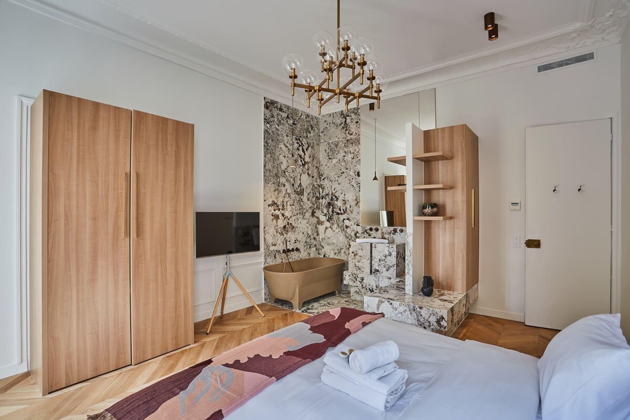 I 3. etasje: (Stue(Internett-tilgang, TV, spisebord, sittehjørne), Kjøkken(komfyr med kokeplater, vannkoker, brødrister, kaffetrakter, stekovn, mikrobølgeovn, kjøleskap, fryser, Wine glasses), Sovrum med badrum(badekar, håndvask, Inkl. håndklær, Queen Bed), Sovrum med badrum(badekar, håndvask, Inkl. håndklær, Queen Bed), Sovrum med badrum(dusj, håndvask, Inkl. håndklær, Queen Bed), Sovrum med badrum(dusj, håndvask, Inkl. håndklær, Queen Bed), WC, WC) , , , , Førstehjelp, vedovn, tørketrommel, badekar, vaskemaskin, balkong eller terrasse, oppvarming, klimaanlegg, strykejern, Hårtørker, , , , , , Baking sheet, Carbon monoxide detector, Coffee, Downtown, Shower gel