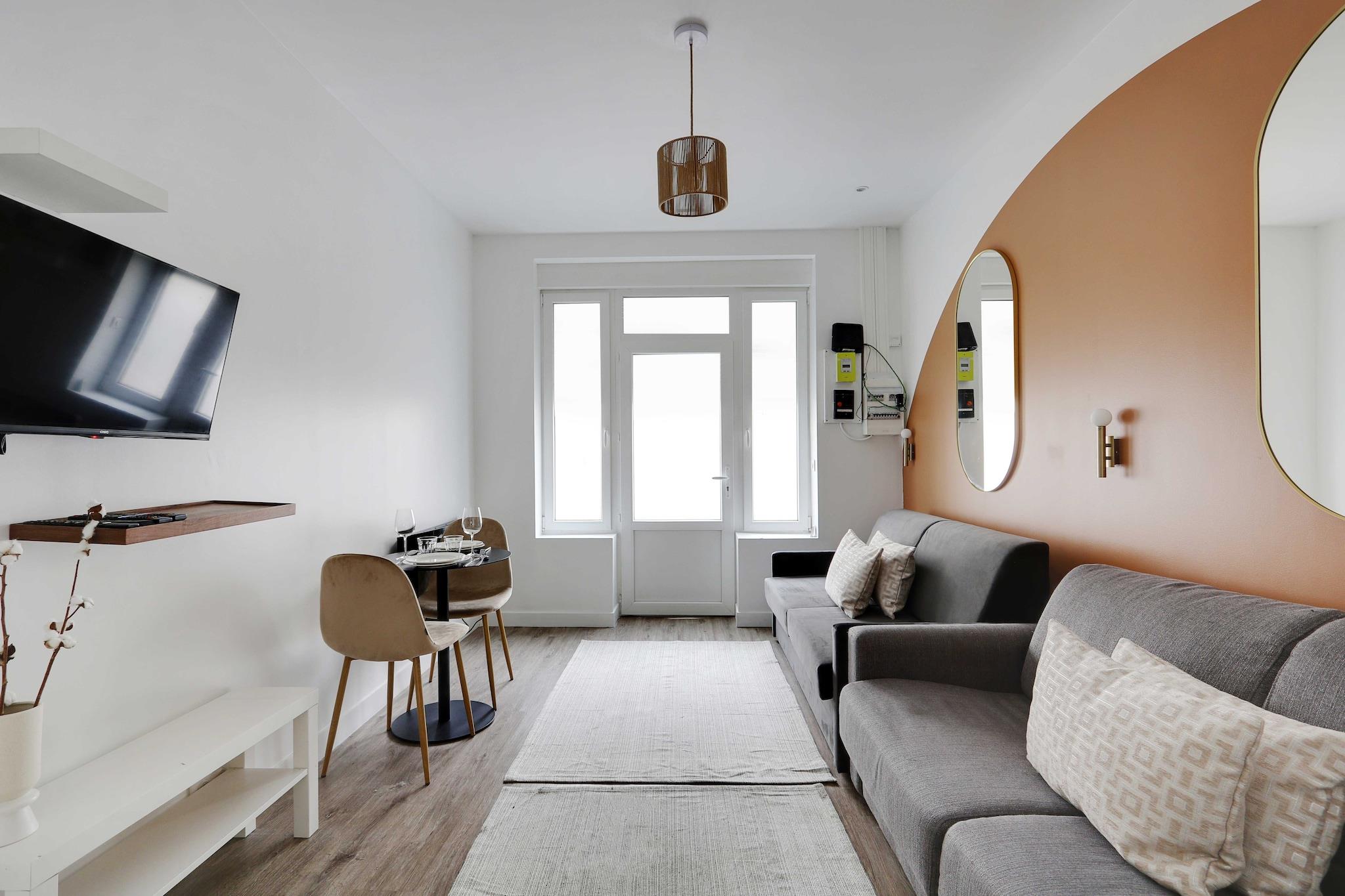 Første etasje: (Kjøkken(spisebord, vedovn, vannkoker, brødrister, kaffetrakter, stekovn, mikrobølgeovn, kjøleskap, elektriske kokeplater, , , Wine glasses), Stue/soverom(, dobbel sovesofa, TV), bad(dusj, toalett, Hårtørker, Håndklær/sengetøy (inkl.), )) , , , , Førstehjelp, Lekeområde, oppvarming, strykejern, , , Carbon monoxide detector, Cleaning Disinfection, Cleaning before checkout, Downtown, Enhanced cleaning practices, High touch surfaces disinfected, Long term stays allowed, Room-darkening shades, Town