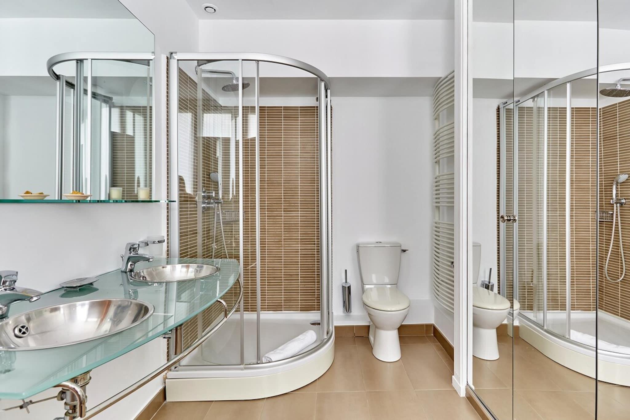 I 7. etasje: (Kjøkken(vedovn, vannkoker, brødrister, komfyr, kaffetrakter, stekovn, mikrobølgeovn, oppvaskmaskin, kjøleskap, fryser, , Baking sheet, Wine glasses), Stue/spisestue(Internett-tilgang, TV, spisebord, sittehjørne), Sovrum med badrum(dusj, håndvask, toalett, Hårtørker, Inkl. håndklær, , Queen Bed), WC) , , , , Førstehjelp, TV, vedovn, tørketrommel, vaskemaskin, balkong eller terrasse, oppvarming, klimaanlegg, strykejern, Hårtørker, crib(free), , , , , , Baking sheet, Carbon monoxide detector, Downtown, Shower gel