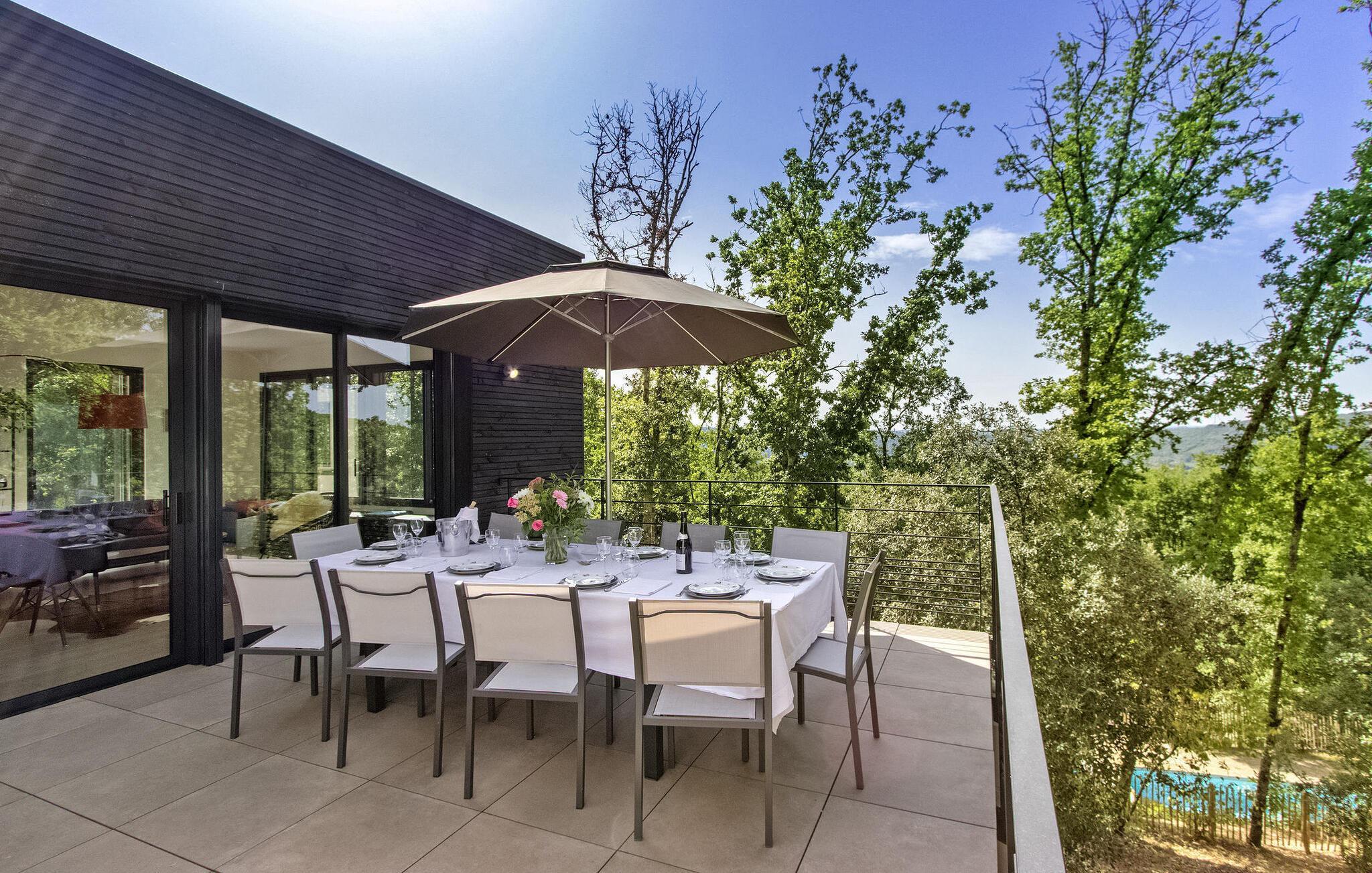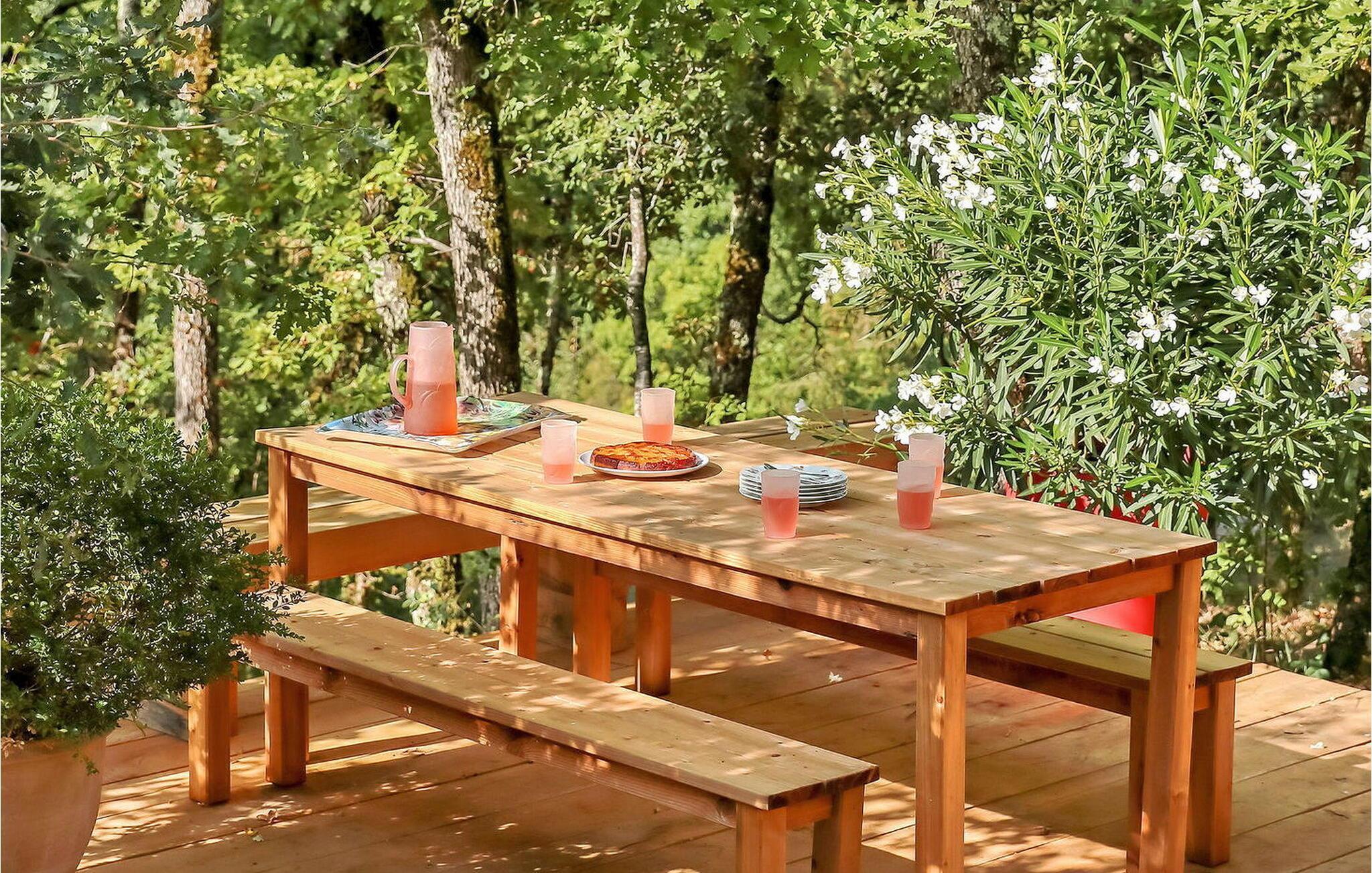 Nyt en herlig ferie i denne romslige villaen i Dordogne, ideell for en gruppe som ønsker avslapping og komfort. Denne moderne villaen har et privat, oppvarmet og innelukket basseng og en fantastisk utsikt over dalen. Villaen har en rekke fasiliteter. Første etasje består av en romslig stue med spiseplass og en koselig sittegruppe. Doble karnappvinduer vender ut mot terrassen, som er utstyrt med persienner, mens det halvåpne kjøkkenet har utgang til det fri gjennom en glassdør. Villaen har også et soverom med eget bad i første etasje og utgang til terrassen. På hageplan har villaen flere soveplasser, blant annet et soverom som er perfekt for 4 barn. Uteområdet byr på rikelig med plass til å slappe av og kose seg. Her finner du et oppvarmet svømmebasseng som er sikret med dykkeralarm og gjerde. Vær oppmerksom på at eierne bor på en naboeiendom med egen inngang. På grunn av det bratt skrånende terrenget må du være spesielt oppmerksom på små barn. Huset ligger på landet, nærmeste landsby er Cazoulès (ingen butikker), og nærmeste butikker (supermarked og marked) ligger i Souillac (5 km).