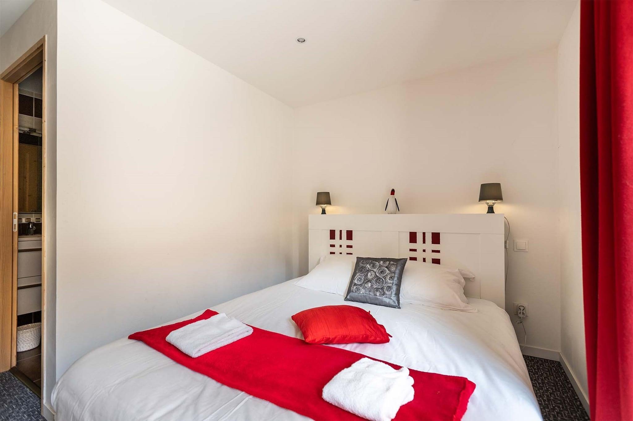 Chalet Les Amis-residensen har en privilegert beliggenhet mellom Les Arcs og La Plagne, ved portene til den vakre Parc de la Vanoise, plassert i hjertet av skiområdet Paradiski. Den har 5 ferieleiligheter for 8 til 14 personer og en egen hytte for maksimalt 10 personer, som ble totalrenovert i 2024. Et felles spaområde med badstue og boblebad tilbyr avslapning etter en lang dag i skiområdet. En gratis skyttelbuss tar deg direkte til skibakkene. Denne 2-etasjes leiligheten tilbyr eksepsjonell utsikt over Nancroix-dalen, fjellene, granskogene og Massif de la Vanoise. Fra den store stuen med åpen kjøkkenløsning fører en trapp til de tre soverommene, hver med eget bad.