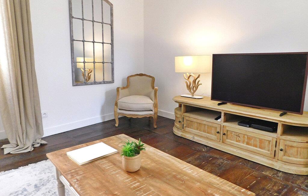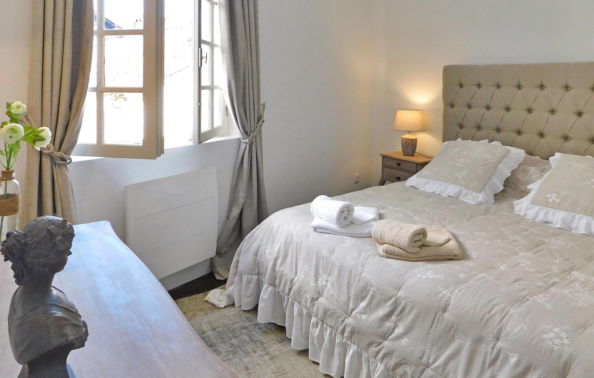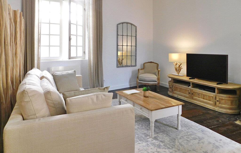 Denne karakteristiske leiligheten i andre etasje ligger i en herregård fra 1300-tallet i Périgueux og utstråler tidløs sjarm. En privat gågate fører til en indre gårdsplass med en bemerkelsesverdig arkitektur og en vakker steintrapp. Inne i leiligheten harmonerer moderne møbler med originale tregulv og stor takhøyde vakkert med den historiske bygningen. Utenfor finner du de lokale butikkene og restaurantene i Périgueux, og på lørdager er det et yrende marked under tak. Her kan du fordype deg i historien, der hvert hjørne forteller en historie og byr på en ferie i en svunnen tids eleganse.