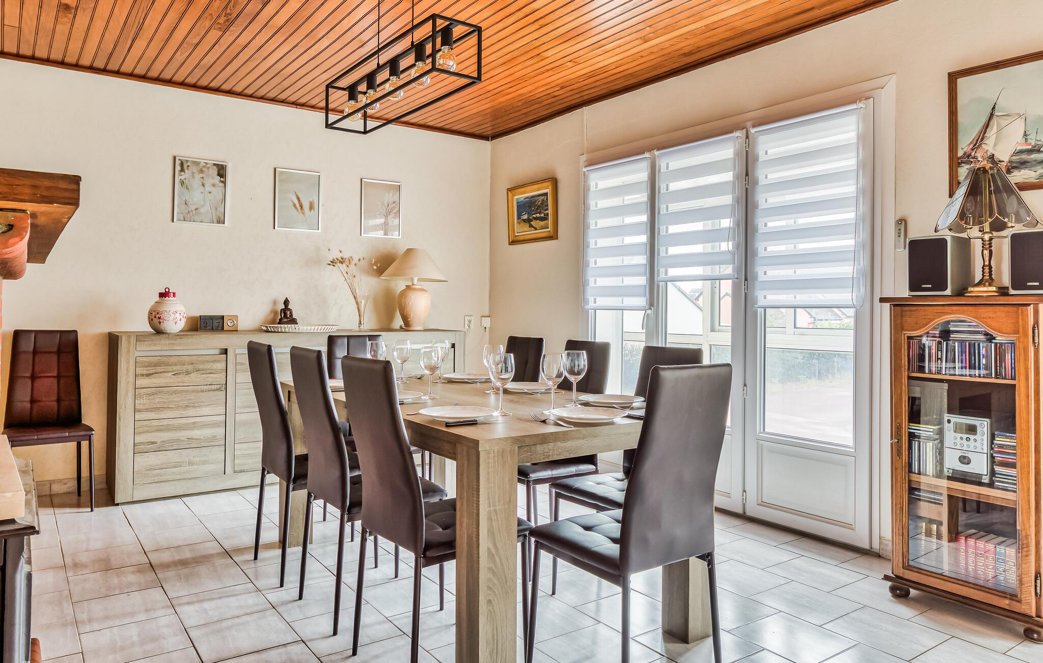 Bare noen få skritt fra stranden, inviterer dette moderne, romslige huset deg inn i de lyse og elegante rommene. Her kan du trylle frem kulinariske høydepunkter med ferske råvarer fra det ukentlige markedet i Coutances, planlegge aktivitetene dine over stilfulle måltider og kose deg i sofaen etter en aktiv dag.