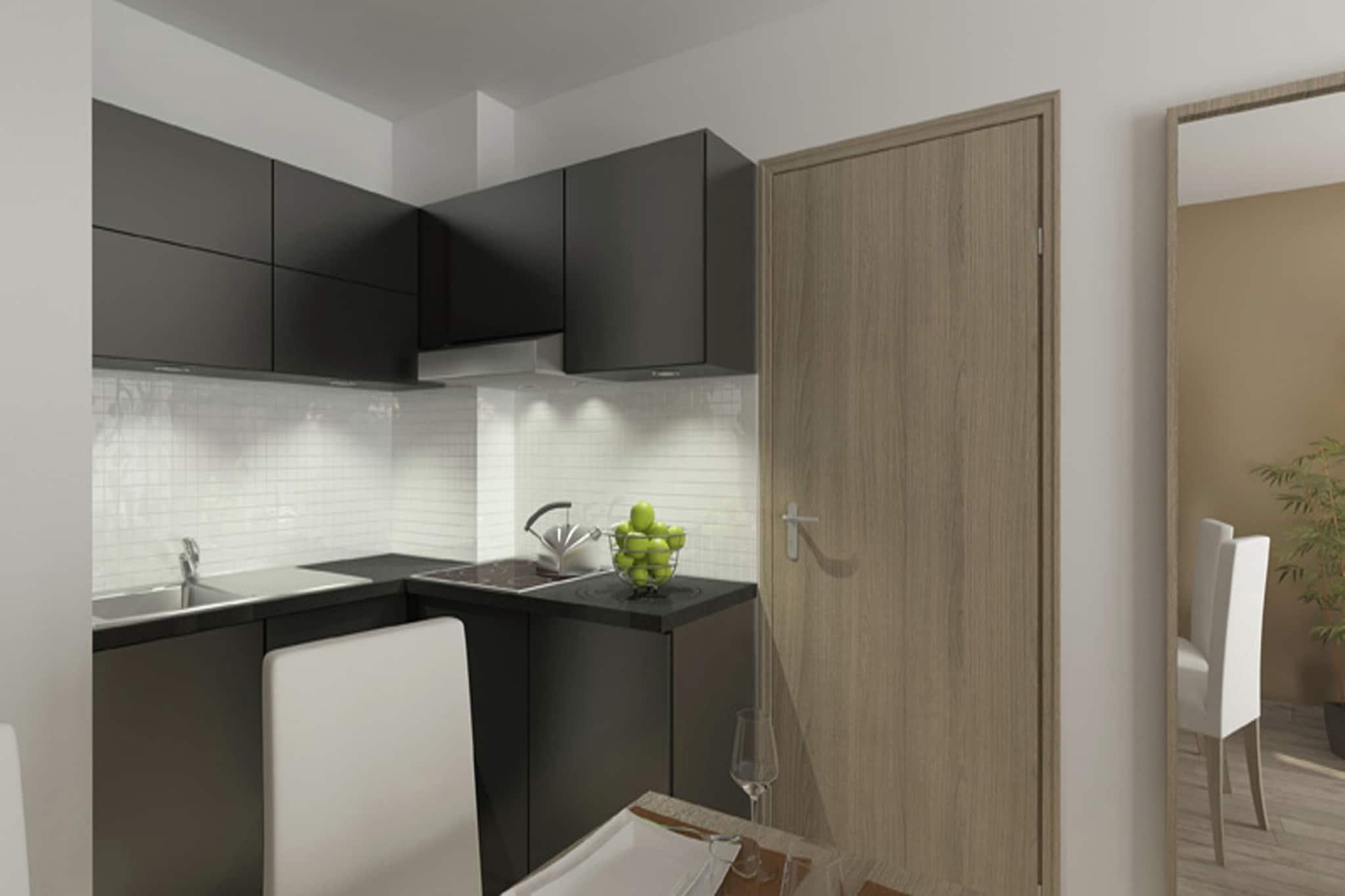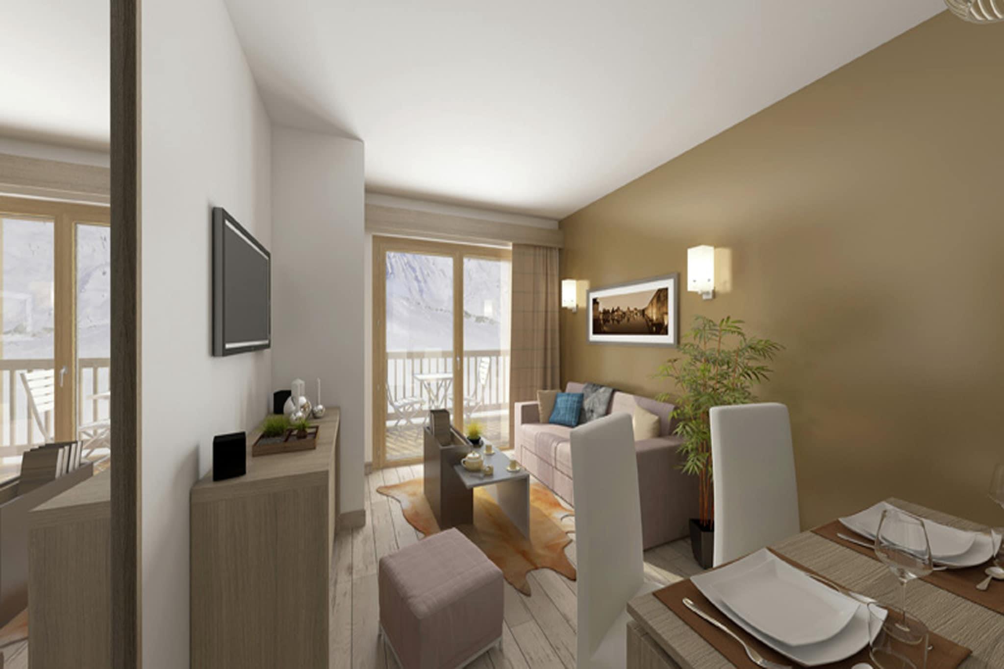 Stue(dobbel sovesofa, TV), Åpent kjøkke(komfyr(keramisk), Kombi stekovn/mikrobølgeovn, oppvaskmaskin), soveværelse(Dobbeltseng eller 2 enkeltsenger), soveværelse(Dobbeltseng eller 2 enkeltsenger), bad(badekar eller dusj, håndvask), WC, badstue(betalt), oppbevaring av ski, balkong eller terrasse, svømmebasseng(deles med andre gjester)