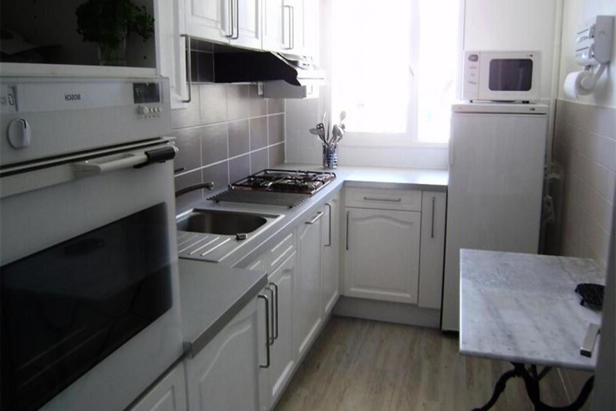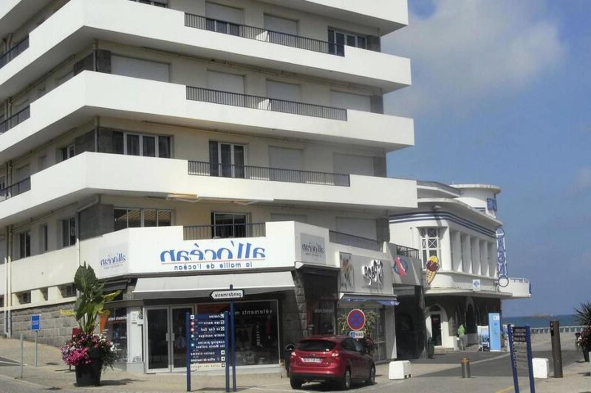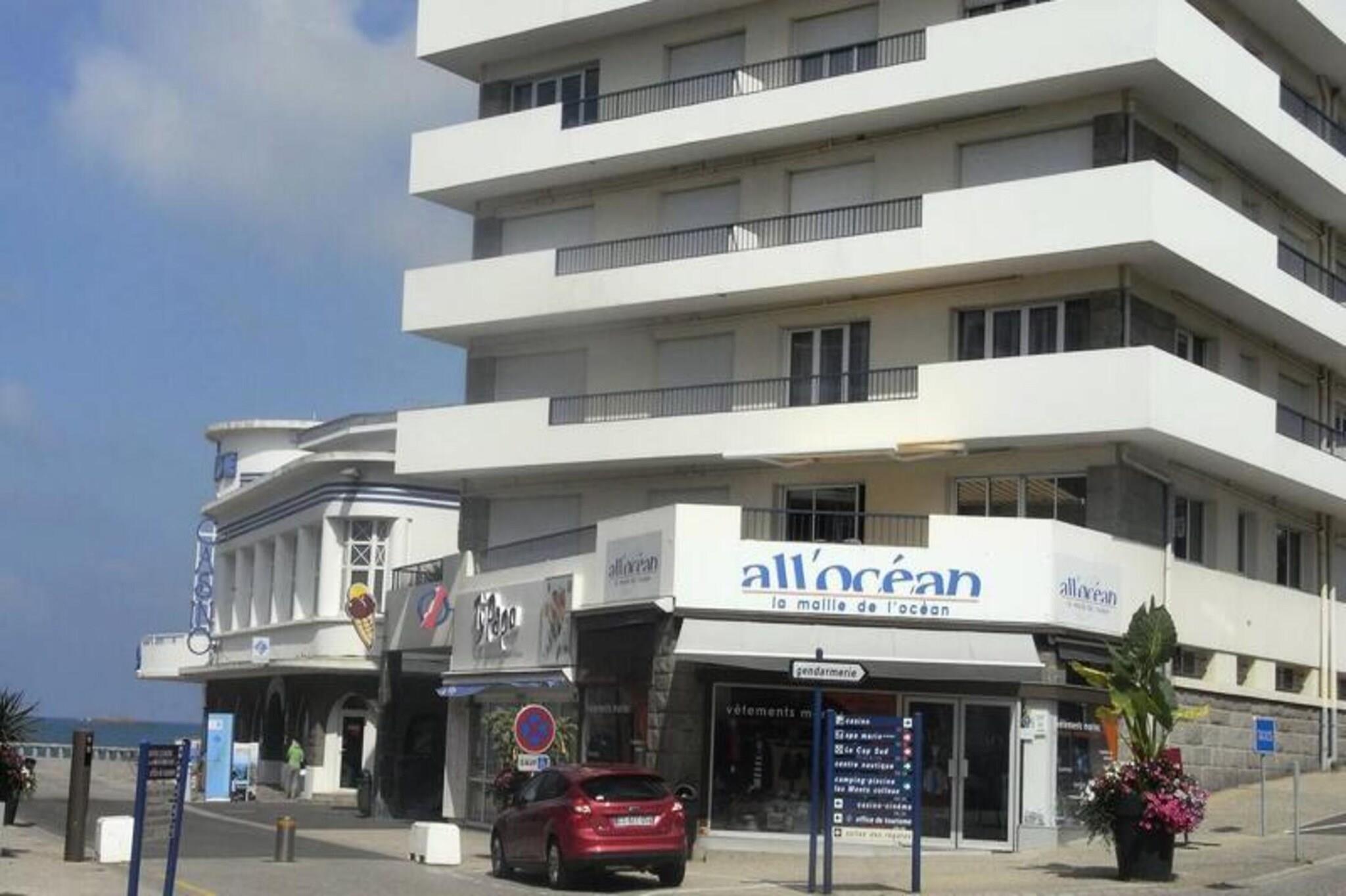 Denne romslige T3-leiligheten på 65 m² tilbyr komfortabel innkvartering med havutsikt fra den 30 m² store terrassen. Den har to soverom: ett med dobbeltseng (140x190 cm) og direkte tilgang til terrasse, og det andre med to enkle køyesenger og en enkeltseng. Stuen har en sovesofa for to personer, en TV og et spisebord for seks. Leiligheten har plass til opptil syv personer og er ikke kjæledyrvennlig. For ekstra bekvemmelighet er det privat parkering i kjelleren. Denne leiligheten ligger på et ypperlig sted med direkte tilgang til en stor strand, innen gangavstand til butikker, spa, marina, kasino og kino. Den sørlige eksponeringen sikrer solfylte dager, og du vil kunne nyte en rekke nærliggende attraksjoner, kafeer og lokale markeder for en herlig opplevelse. Leiligheten er utstyrt med et fullt uavhengig kjøkken, inkludert mikrobølgeovn, induksjonstopp, stekeovn, kjøleskap, oppvaskmaskin og andre viktige apparater. Badet har dusj og vask, og det er separat WC. Terrassen tilbyr uteservering med bord, lenestoler, fluktstoler og en markise for skygge. Valgfrie tjenester inkluderer leie av sengetøy, babyseng og Wi-Fi.