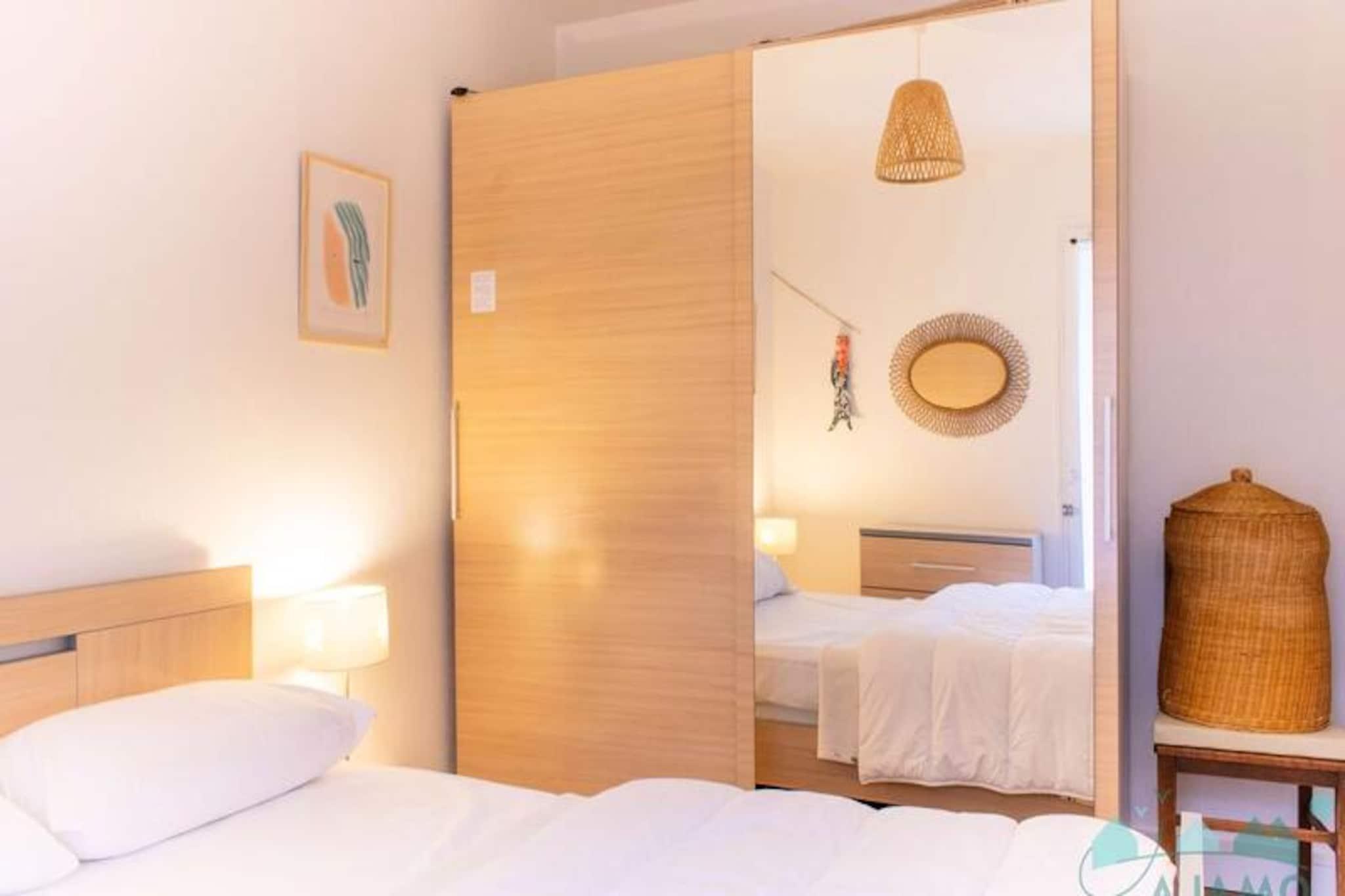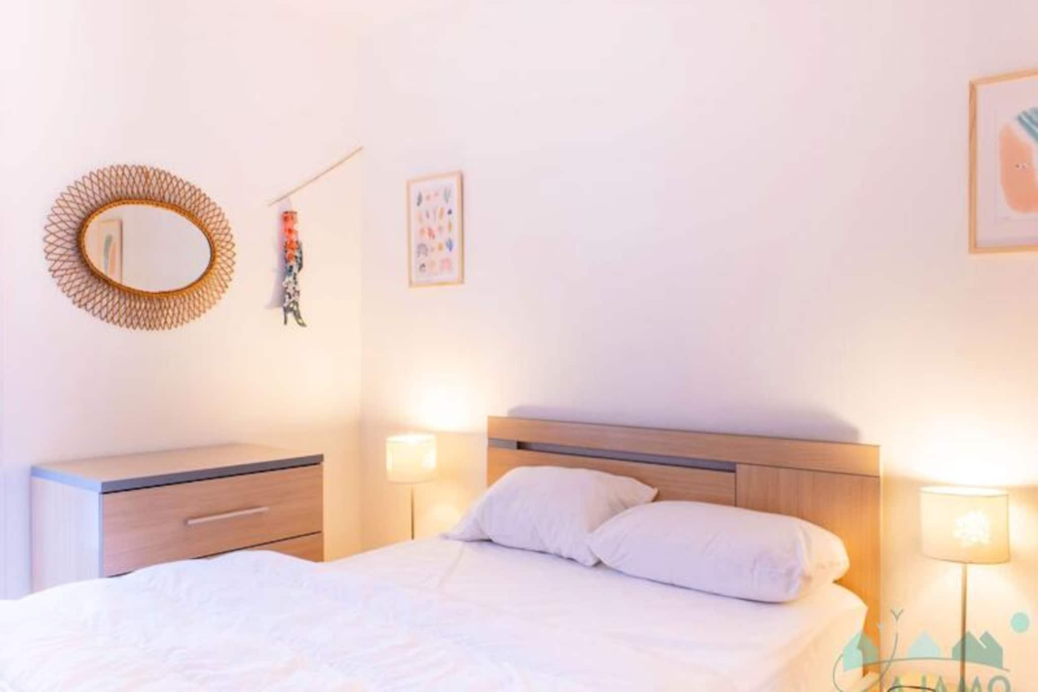 I hjertet av Bretagnes pittoreske Pléneuf-Val-André tilbyr denne herlige ettromsleiligheten en rolig kystferie, bare 200 meter fra den gylne sanden og de milde bølgene på de nærliggende strendene. Enten du søker en romantisk ferie eller et fredelig tilfluktssted for en liten familie, inviterer denne sjarmerende boligen deg til å slappe av og nyte skjønnheten ved den franske kysten. Tenk deg å starte morgenen på den sørøstvendte terrassen, sole deg i det myke sollyset med en kopp kaffe i hånden, mens havbrisen forsiktig rører i luften. Innvendig er leiligheten gjennomtenkt designet for å kombinere komfort og funksjonalitet. Den lyse stuen har en koselig sofa, et TV-hjørne og et innbydende sted å slappe av etter en dag med utforsking. Det fullt utstyrte kjøkkenet er perfekt for å tilberede fersk lokal sjømat eller en rolig frokost, med moderne apparater som kjøleskap, komfyrtopp, stekeovn, mikrobølgeovn og mer. Soverommet, komplett med en komfortabel dobbeltseng og rikelig med lagringsplass, sikrer avslappende netter, mens dusjrommet med vaskemaskin gjør oppholdet ditt enda mer praktisk. Wi-Fi, elektrisk oppvarming og privat parkering er inkludert, noe som gjør oppholdet ditt så problemfritt som mulig. Gå ut, og du vil befinne deg bare noen øyeblikk unna den pulserende sjarmen til Pléneuf-Val-André. Spaser langs promenaden, utforsk de lokale markedene, eller nyt regionens berømte mat på nærliggende restauranter. For naturelskere lokker kyststiene og den naturskjønne utsikten over Bretagnes kuperte kystlinje. Enten du slapper av på stranden, oppdager skjulte bukter eller bare nyter den rolige atmosfæren, plasserer denne leiligheten deg i hjertet av det hele. Bestill oppholdet ditt i dag og opplev den perfekte blandingen av avslapning og eventyr i et av Frankrikes mest fortryllende kystdestinasjoner.