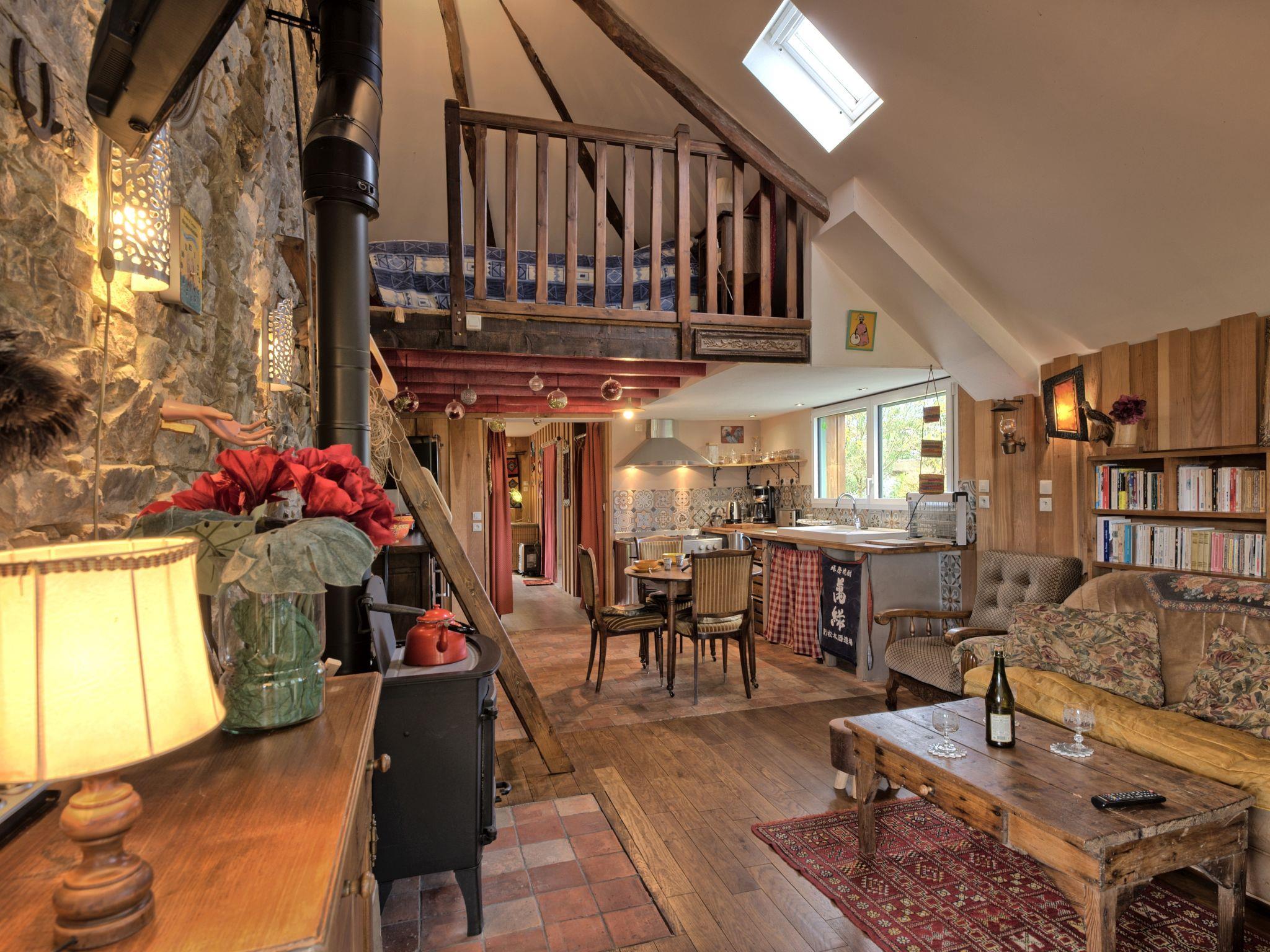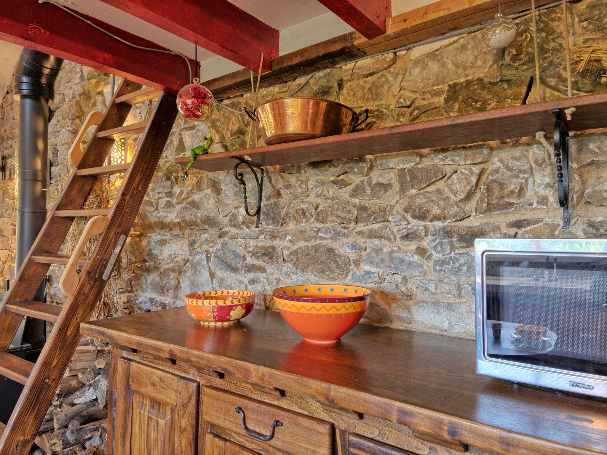 "Wood love Home", 2-room terraced house 70 m2, south facing position. Object suitable for 2 adults. Cosy and wooden furniture furnishings: living/dining room with 1 sofabed (140 cm, length 180 cm), Scandinavian wood stove, dining table, library and TV (flat screen). Exit to the terrace. 1 room with curtain with 1 french bed (160 cm, length 200 cm). Exit to the garden. Open kitchen (5 gas rings, toaster, kettle, microwave, freezer, electric coffee machine). Shower/WC. Heating not available in all rooms. Upper floor: (ladder) open gallery with 1 french bed (140 cm, length 190 cm). Terrace, south facing position, garden, south facing position and north facing position. Terrace furniture, barbecue (portable), deck chairs (2). Facilities: washing machine. Internet (WiFi, free). Please note: non-smoking house. Maximum 1 pet/ dog allowed. Smoke alarm. The property is adapted for people with reduced mobility. Offer by a private individual according to Art. 155, IV of CGI.
