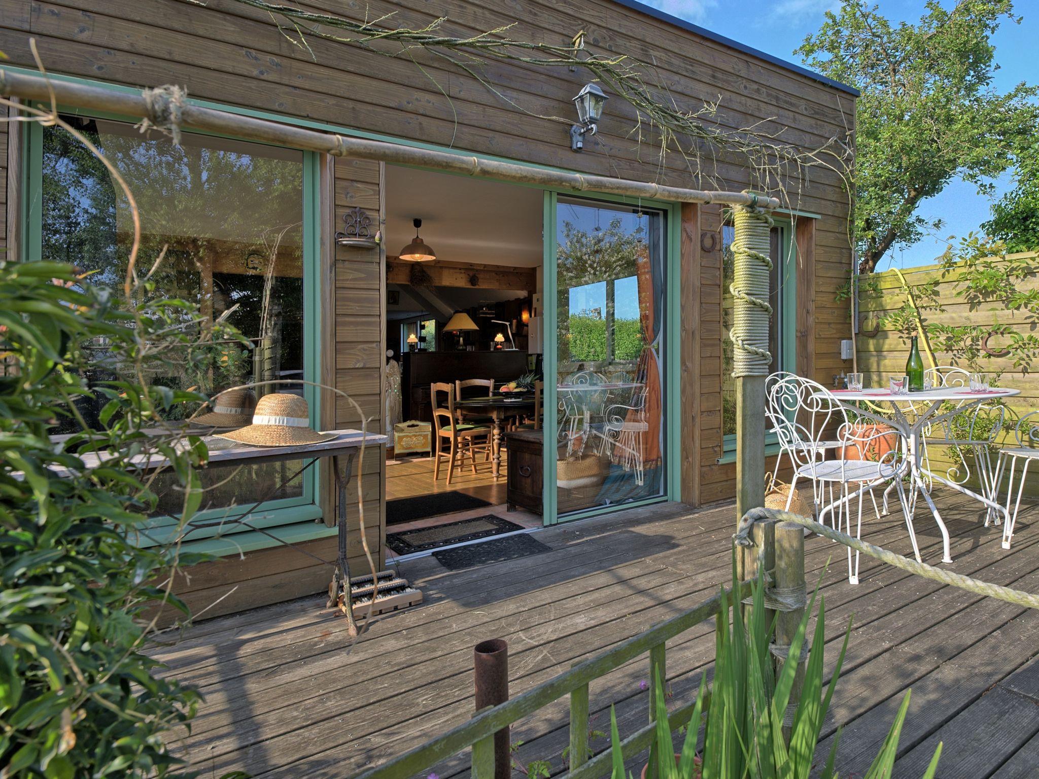 Terraced house "Wood love Home", surrounded by fields. On the outskirts, 800 m from the centre of Plerneuf, 11 km from the centre of St Brieuc, 14 km from the sea, 14 km from the beach. For shared use: property 1'000 m2, terraced garden (not fenced) with plants and trees. Private: natural garden 300 m2, parking (for 2 cars) on the premises. Supermarket 4 km, restaurant 4 km, bakery 800 m, bus stop 1 km, sandy beach "Plage des Rosaires" 14 km. Marina 15 km, sailing school 14 km. Nearby attractions: Binic, Etables-sur-Mer 14 km, Saint-Quay-Portrieux 19 km, Plouha, Guingamp 23 km, Paimpol, Abbaye de Beauport 36 km, Pléneuf Val André 40 km, Cap Fréhel 60 km. Hiking paths: GR 34, Ile de Bréhat.