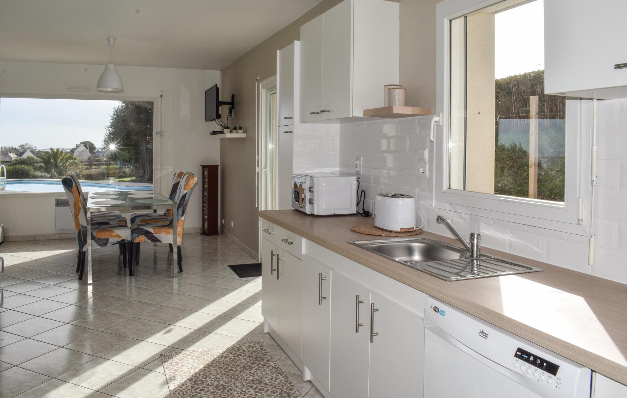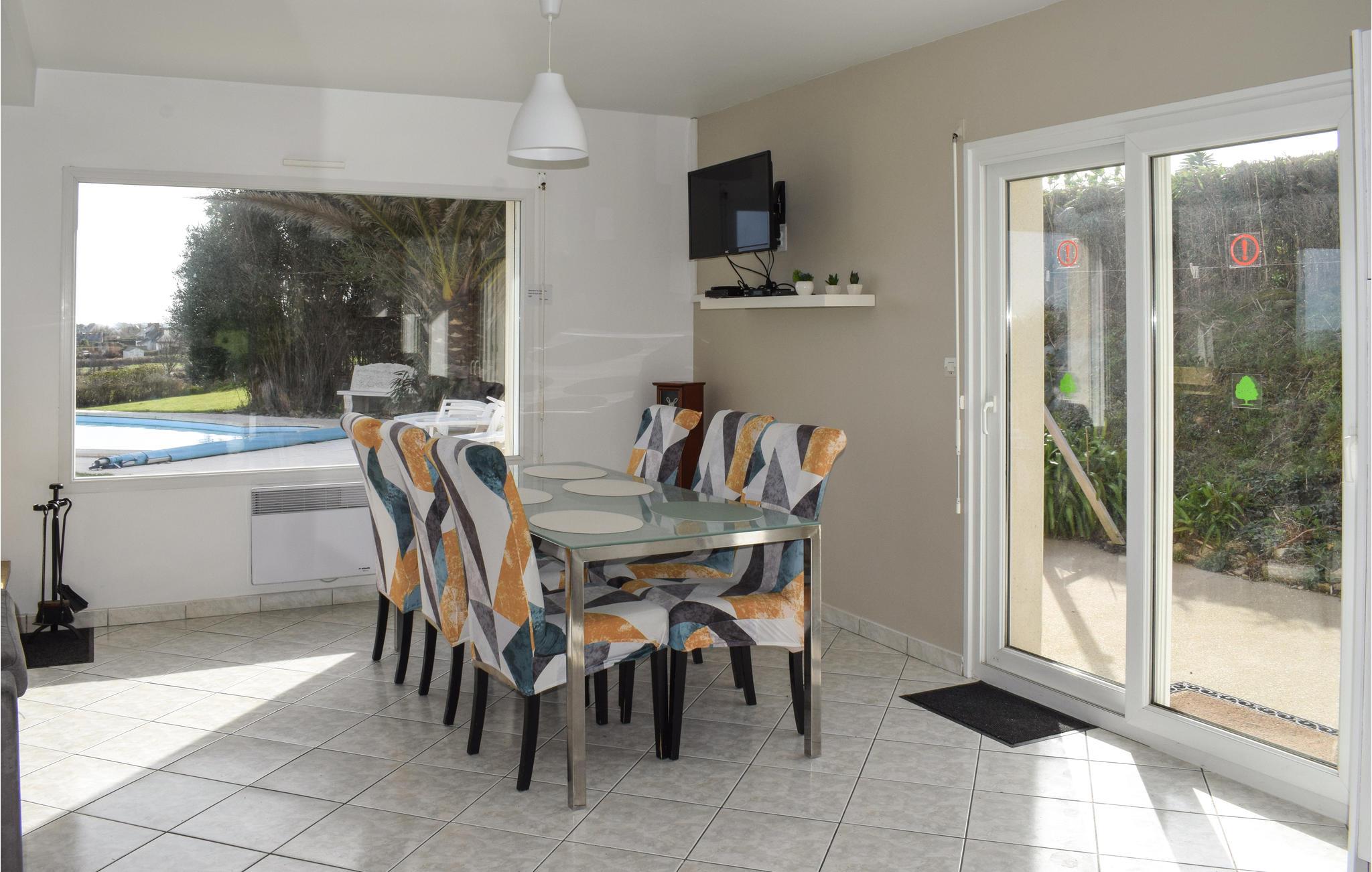 Bli gjest i dette eksepsjonelle feriehuset med privat basseng og panoramautsikt over havet, 160 m fra stranden. Fra terrassen, bassenget, stuen og første etasje i denne lyse frittliggende villaen i Pleubian i Côtes d'Armor, vil du nyte en fantastisk utsikt over Atlanterhavets blå og himmelens skiftende farger. Denne leiligheten er innredet i en ren og moderne stil med store vinduer. Den har sofaer rundt en vedfyrt peis og et vakkert kjøkken. Den har en ideell beliggenhet for å utforske den bretonske kysten, strendene og området rundt.
