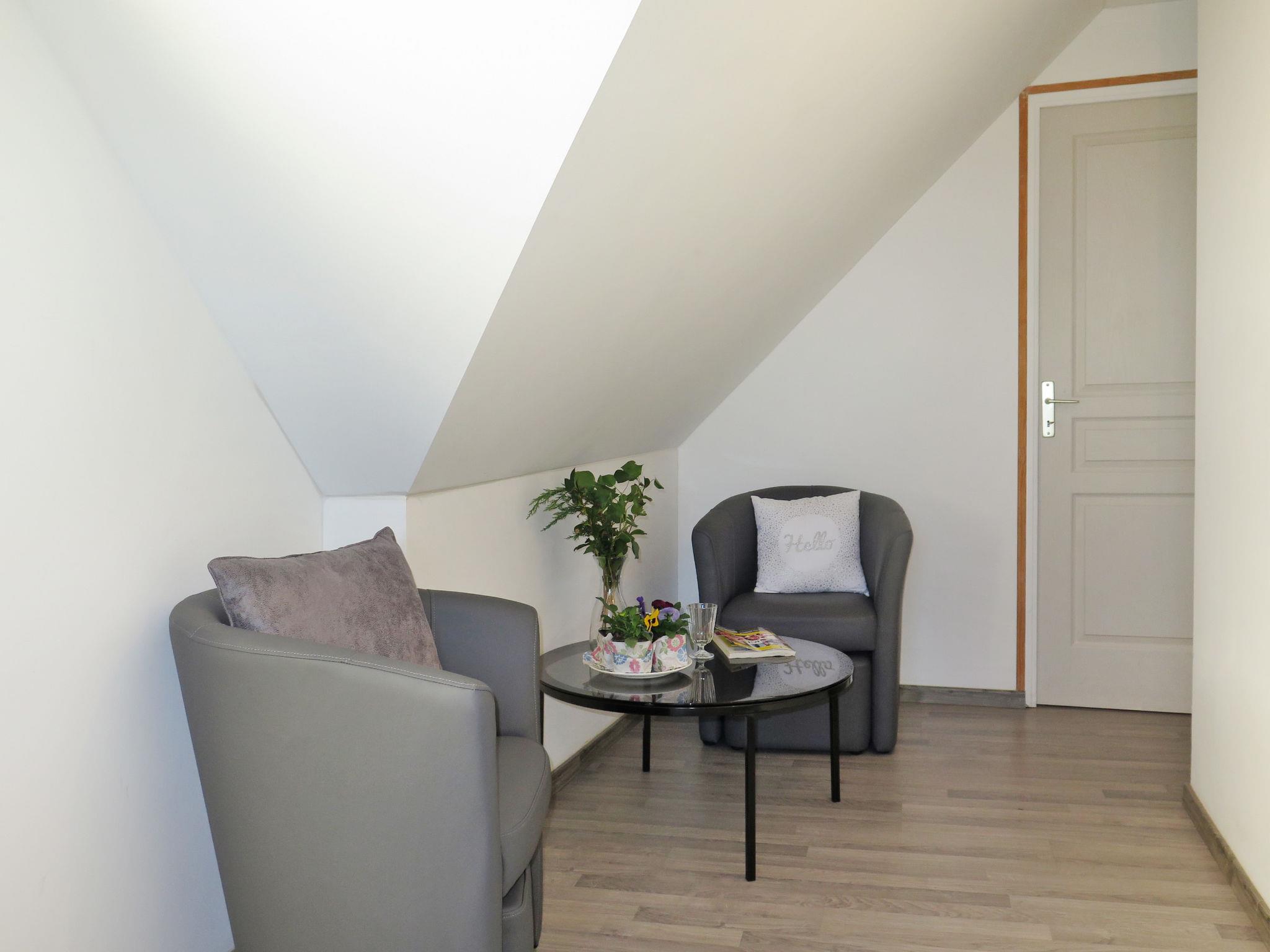 "Chez Yvonne", 3-room house 100 m2 on 2 levels. Cosy furnishings: living room with 1 sofabed, satellite TV, flat screen, CD-player and DVD. Exit to the patio. Kitchen (oven, dishwasher, 4 ceramic glass hob hotplates, toaster, kettle, microwave, freezer, electric coffee machine) with TV. Shower, sep. WC. Upper floor: 1 room with sloping ceilings with 1 french bed (140 cm, length 190 cm). 1 room with sloping ceilings with 2 beds (90 cm, length 200 cm). Sep. WC. Electric heating. Terrace. Terrace furniture, barbecue (portable), deck chairs (3), sitting area, box-room. Facilities: washing machine, dryer, iron, children's high chair, baby cot, hair dryer. Internet (WiFi, free). Please note: non-smoking house. Maximum 2 small pets/ dogs allowed. Smoke alarm.
