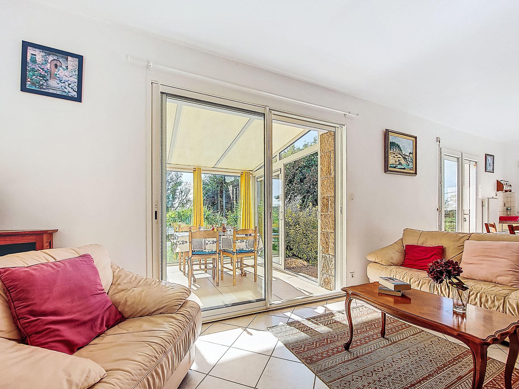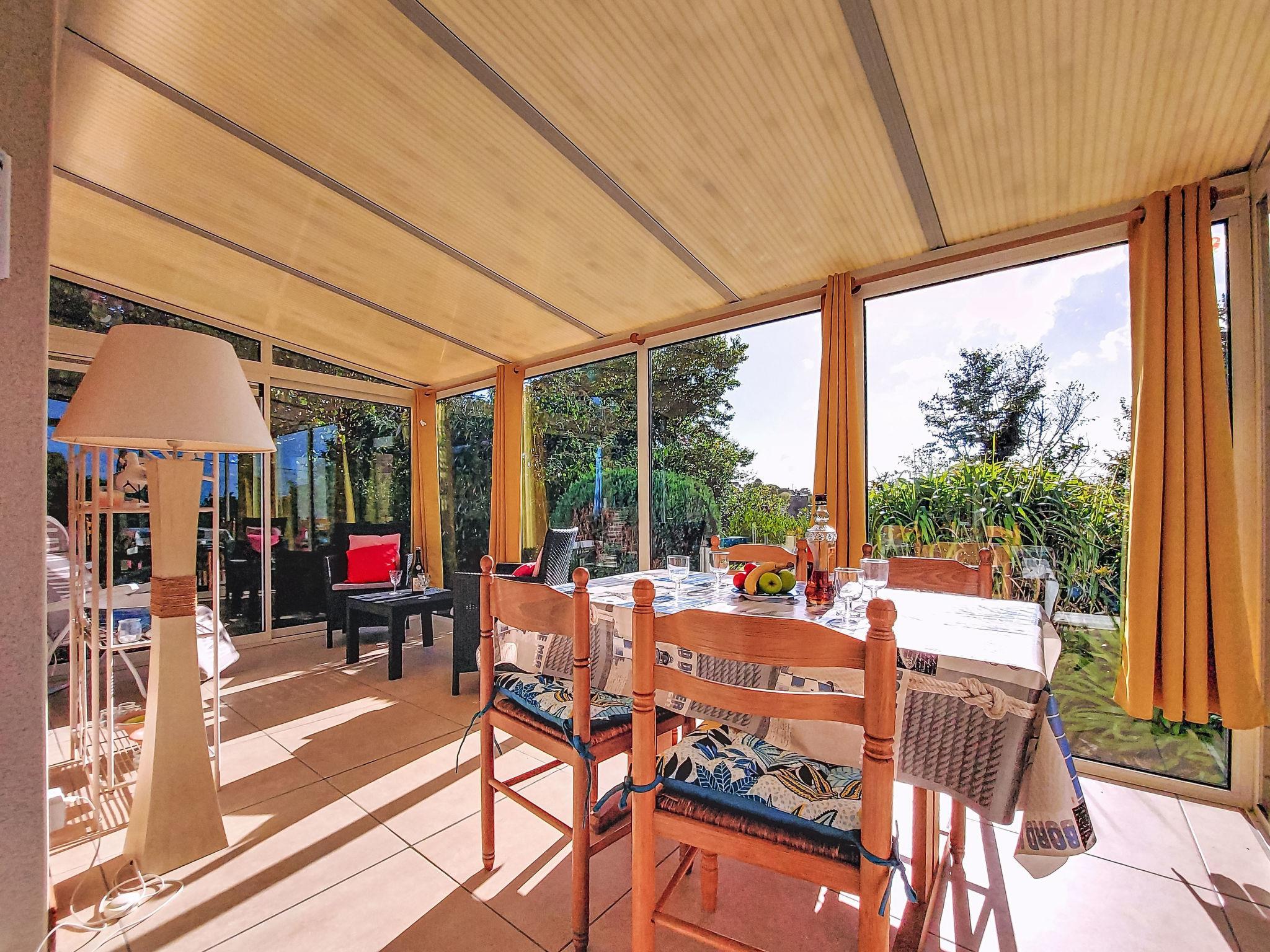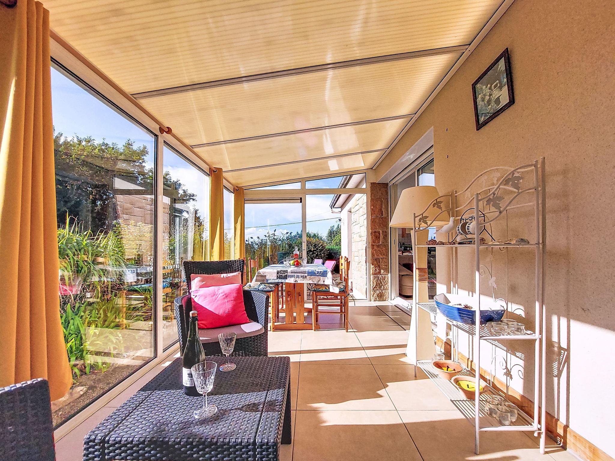 "Kerguntuil", 3-room house 60 m2. Bright, beautiful and cosy furnishings: living room with veranda with dining table and TV. Exit to the veranda. 1 room with 1 french bed (160 cm, length 200 cm). 1 room with 2 beds (90 cm, length 200 cm). Open kitchen (oven, dishwasher, 3 induction hot plates, toaster, microwave, freezer, electric coffee machine). Exit to the garden. Bathroom, sep. WC. Electric heating. Terrace furniture, barbecue (portable), deck chairs (4), box-room. Facilities: washing machine. Internet (WiFi, free). Please note: non-smoking house. Maximum 2 pets/ dogs allowed. Smoke alarm.