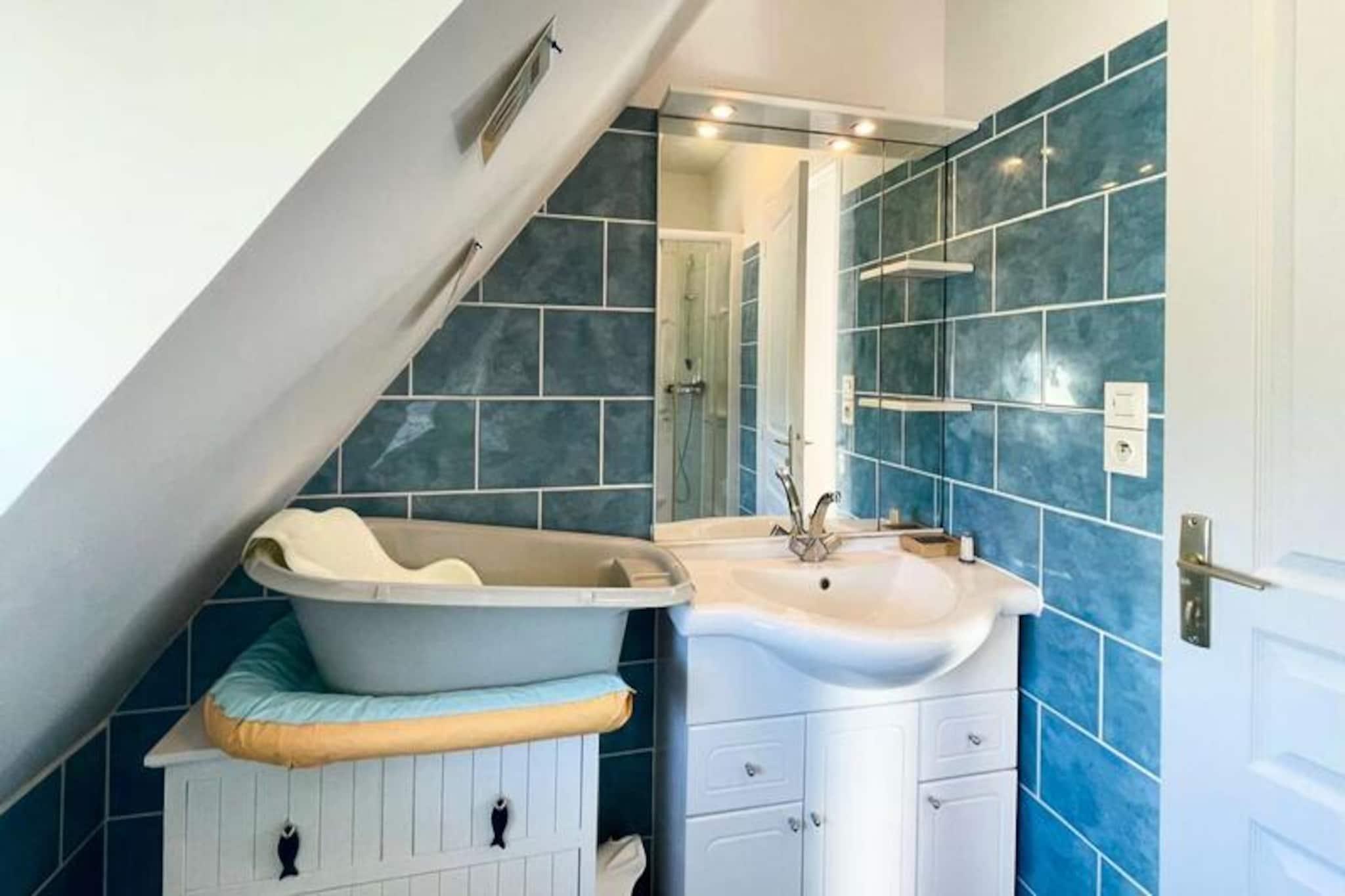 På den pittoreske Île Grande, hvor tidevannets rytme møter roen i øylivet, inviterer dette vakkert renoverte huset fra 1920-tallet deg til å oppleve sjarmen til den rosa granittkysten. Med sin tidløse karakter og moderne komfort er dette 3-stjerners overnattingsstedet et fristed for familier eller små grupper som søker et fredelig tilfluktssted ved sjøen. Tenk deg å våkne opp til lyden av bølger og gå ut i en frodig, lukket hage med direkte tilgang til kyststier som avdekker en fantastisk utsikt over det omkringliggende landskapet. Innvendig blander huset sømløst autentisitet med moderne bekvemmeligheter. Den romslige stuen og spisestuen åpner seg direkte ut mot hagen, og skaper et perfekt sted for avslapning eller felles måltider. Det åpne kjøkkenet er fullt utstyrt for kulinariske kreasjoner, mens soverommet i første etasje med eget bad sikrer ekstra komfort. Ovenpå tilbyr to soverom med havutsikt, inkludert ett designet for barn og babyer, rolige steder for hvile. Et dedikert arbeidsområde i et av soverommene passer for de som kombinerer arbeid og fritid. Moderne fasiliteter som Wi-Fi, oppvaskmaskin og babyutstyr sikrer et bekymringsfritt opphold for alle. Beliggenheten er en drøm for både naturelskere og eventyrere. Utforsk øyas kyststier, oppdag den unike skjønnheten til Rosa Granittkysten, eller nyt aktiviteter som vannsport, ridning og golf på den nærliggende 18-hullsbanen. Med gratis parkering bare noen skritt unna og en trygg hage for små kjæledyr, tilbyr dette hjemmet både bekvemmelighet og komfort. Enten du nyter en grillfest i hagen eller vandrer langs kysten, lover dette idylliske tilfluktsstedet uforglemmelige minner for alle gjester.