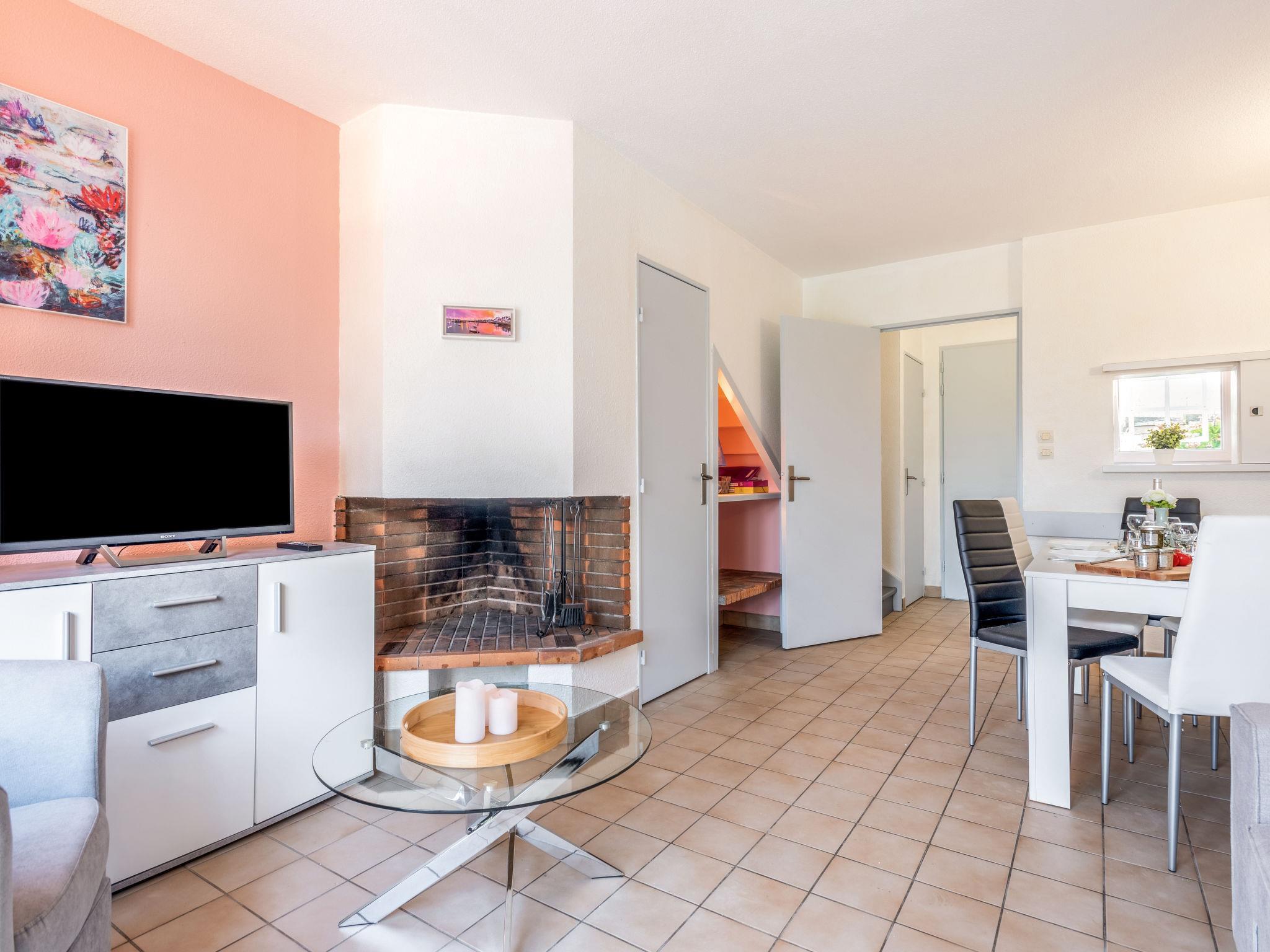 3-room apartment 44 m2 on 2 levels. Fully renovated in 2020, practical and beautiful furnishings: living/dining room with 1 double sofabed (1 x 195 cm, length 152 cm), TV and flat screen. Open kitchen (mini-oven, oven, dishwasher, 3 ceramic glass hob hotplates, grill, electric coffee machine, combination microwave). Shower/WC. Upper floor: 1 room with 1 french bed (1 x 140 cm, length 190 cm). 1 room with 2 beds (80 cm, length 190 cm). Bath/WC. Electric heating. Small terrace 12 m2. View of golf course. Facilities: hair dryer. Parking space n 74. Please note: smoke alarm. 4 seater sofa convertible into a 2 seater bed. 56161 000049 G5