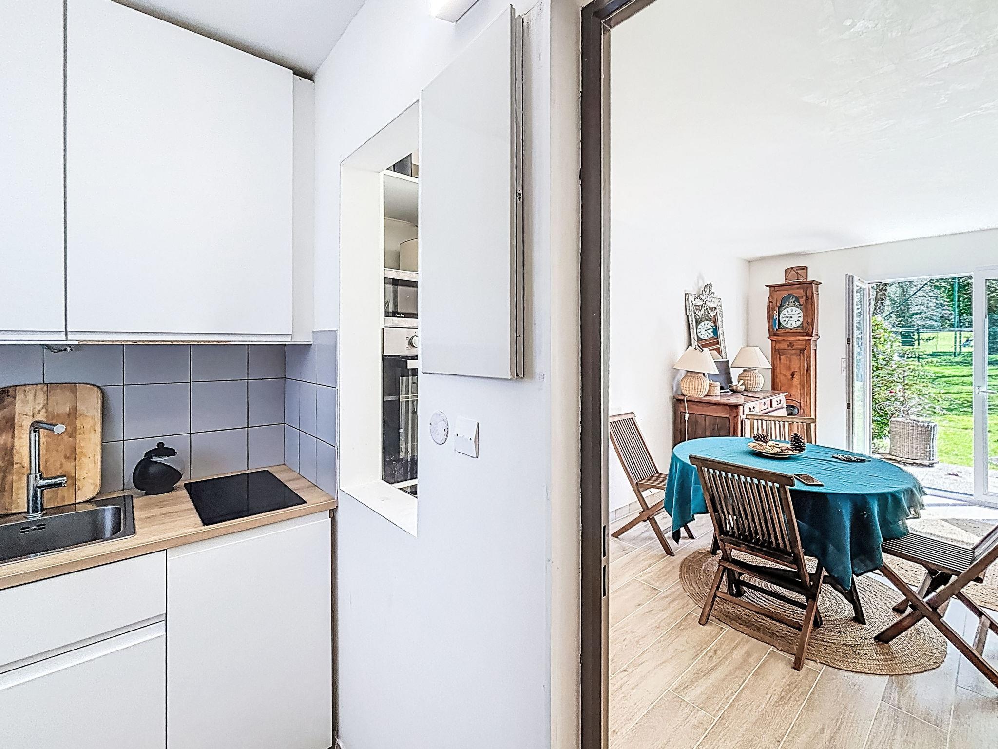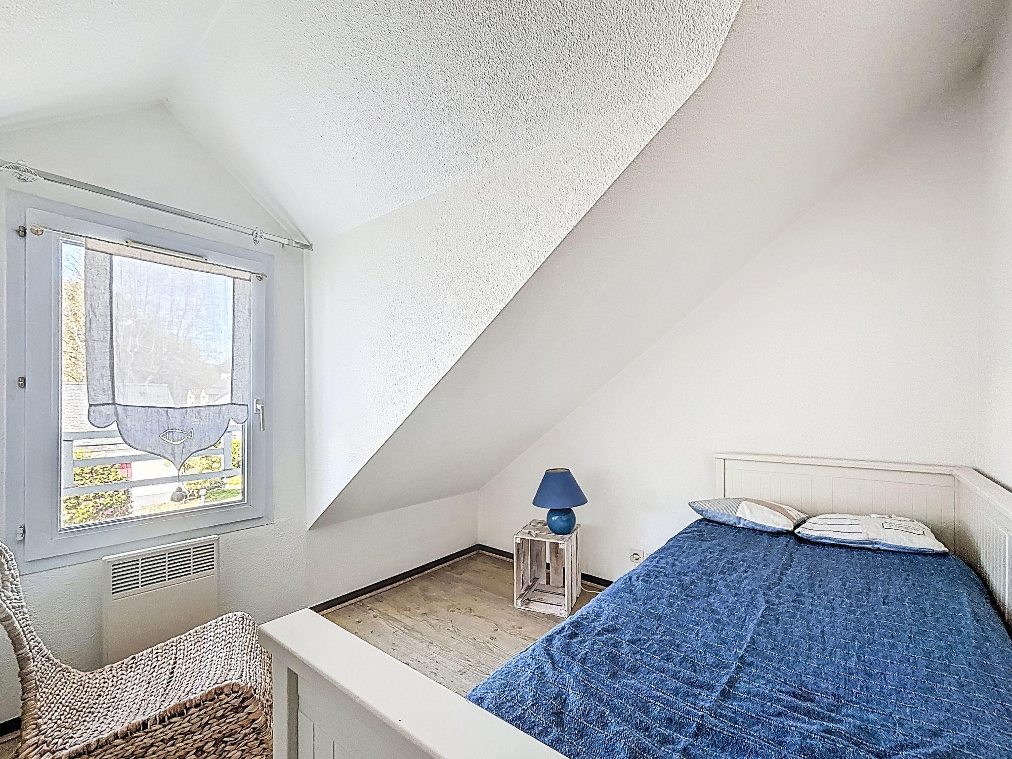 "Les Cottages du golf", 3-room terraced house 39 m2. Comfortable furnishings: living/dining room with TV (flat screen). Exit to the terrace. Kitchen (oven, 2 induction hot plates, kettle, microwave, freezer, electric coffee machine). Sep. WC. Upper floor: 1 room with 1 pull-out bed (2 pers. 2 x 90 cm, length 190 cm). 1 room with 1 pull-out bed (2 pers. 2 x 80 cm, length 190 cm), TV (flat screen). Bathroom. Heating. Terrace, patio. Terrace furniture. Facilities: washing machine. Internet (WiFi, free). Parking. Please note: no parking. Smoke alarm. Offer by a private individual according to Art. 155, IV of CGI. 56161000139OL
