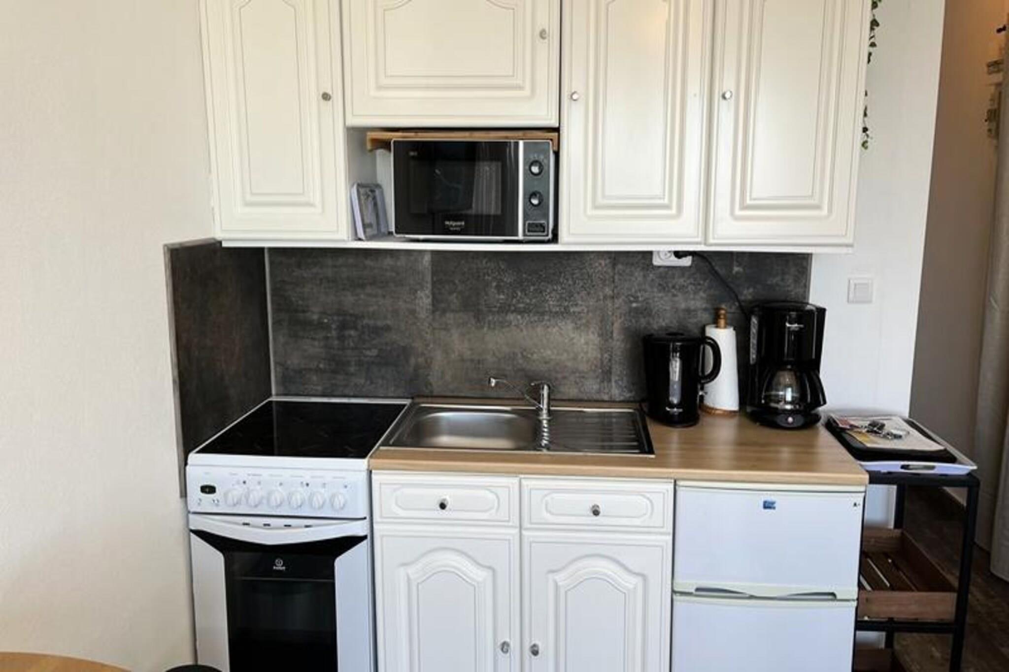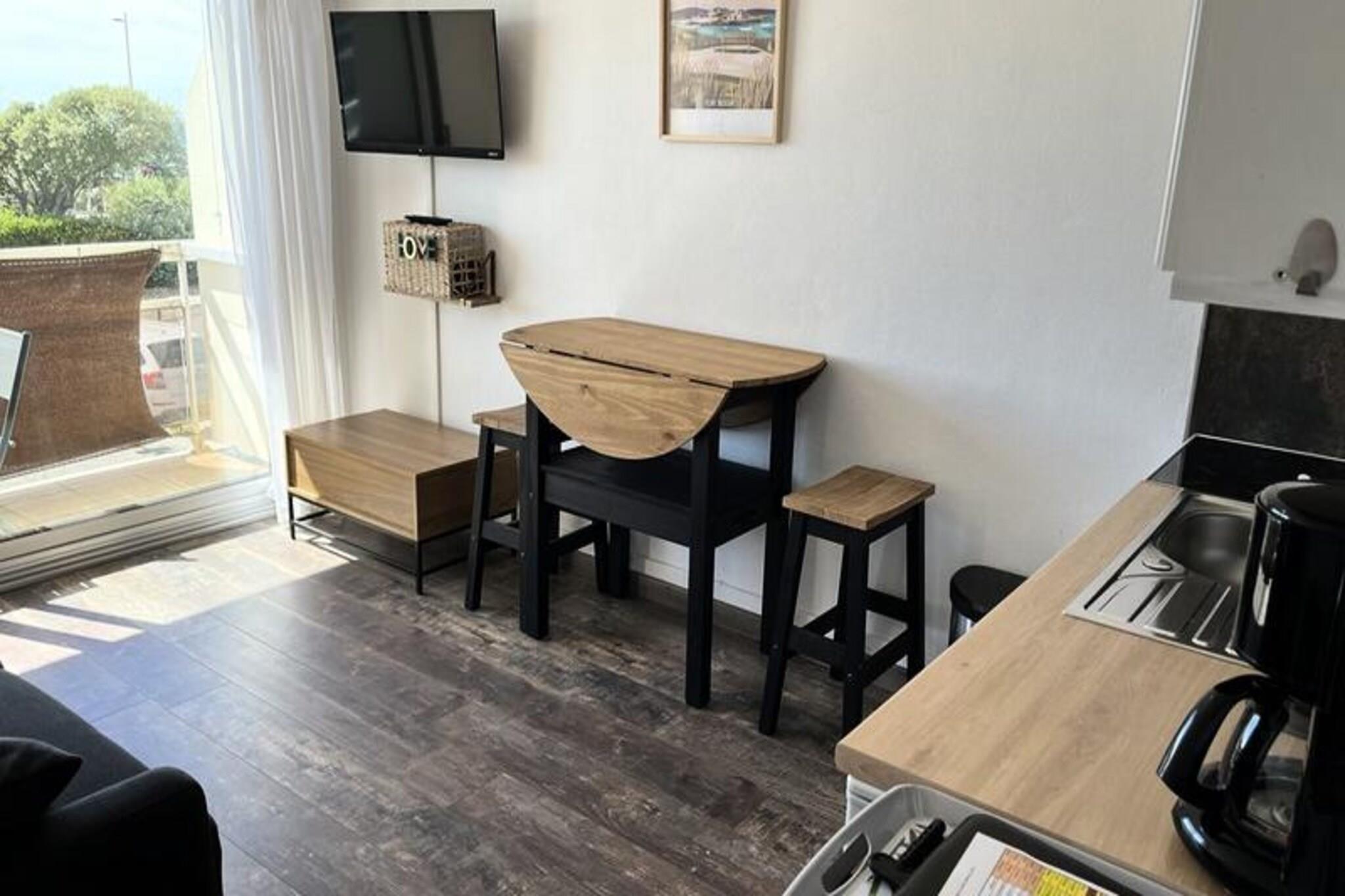 Denne koselige ettromsleiligheten på 20 m² tilbyr et komfortabelt opphold med en fantastisk utsikt over havet og festningen fra den 4 m² store terrassen. Den er perfekt for opptil to gjester, og har en stue med sovesofa, et bord med 4 stoler og en TV med WiFi. Leiligheten har også et renovert bad med dusjkabinett og WC. Eiendommen tillater ikke kjæledyr og krever at gjestene tar med eget sengetøy og håndklær, eller de kan velge å leie dem mot et gebyr. Et rengjøringsgebyr er også tilgjengelig på forespørsel. Et depositum på EURO300 kreves ved ankomst. Studioet har en ideell beliggenhet for de som ønsker å nyte utendørsaktiviteter og lokale attraksjoner. Vannsport er tilgjengelig i nærheten, og det er en sykkelsti langs sjøen, samt turstier langs kysten som starter fra Fort-Bloqué. Den vakre sandstranden ligger bare en kort spasertur unna, og lokale butikker, inkludert en bar, restaurant og bakeri, ligger praktisk til ved foten av boligen. Større supermarkeder ligger bare 6 km unna, og sikrer at alle dine shoppingbehov er dekket. Innvendig har ettromsleiligheten en åpen kjøkkenkrok med mikrobølgeovn, kjøleskap, elektrisk kaffetrakter, vannkoker og kokeplater for enkel matlaging. Stuen er designet for komfort med hagemøbler på terrassen. For ekstra bekvemmelighet tilbyr overnattingsstedet gratis parkering og fellesarealer for gjestene. Oppvarming er tilgjengelig fra oktober til mai, med strøm belastet basert på bruk.