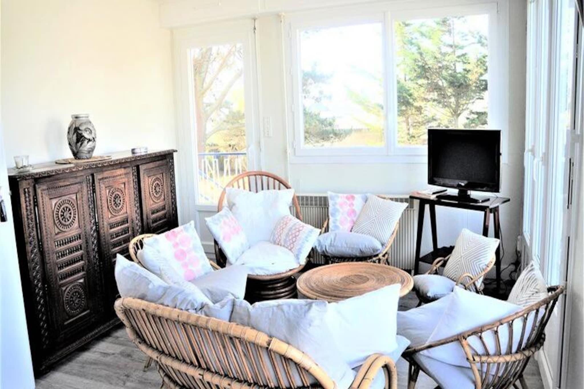 Et steinkast fra den glitrende kystlinjen i Fort-Bloqué, inviterer dette sjarmerende, renoverte huset deg til å oppleve den perfekte blandingen av ro ved sjøen og moderne komfort. Omgitt av en frodig, inngjerdet hage på 620 m², er det et fristed for familier og venner som søker avslapning og utendørs moro. Tenk deg å våkne opp til lyden av bølger, nyte frokost i hagen og spasere bare fem minutter til den vidstrakte sandstranden som strekker seg helt til Guidel-Plages. Med sin idylliske beliggenhet tilbyr denne eiendommen en uforglemmelig flukt ved sjøen. \n\nInnvendig har huset en gjennomtenkt planløsning designet for komfort og bekvemmelighet. I første etasje finner du et fullt utstyrt kjøkken, en koselig stue med stue og spiseplass, og to innbydende soverom med dobbeltsenger, hvorav ett har fredelig hageutsikt. Et moderne bad med dusj og separat toalett fullfører etasjen. Ovenpå har mezzaninen en enkeltseng, mens barnerommet har to enkeltsenger, noe som gjør det ideelt for familier. Fasilitetene inkluderer Wi-Fi, TV, vaskemaskin, oppvaskmaskin, grill og hagemøbler, noe som sikrer et stressfritt opphold. Den inngjerdede hagen er perfekt for barn å leke trygt, mens voksne kan slappe av på solstolene under parasollen.\n\nBeliggenheten er en drøm for friluftsentusiaster. Enten du sykler langs den naturskjønne kyststien, utforsker vannsport eller bare soler deg på den 4 km lange strekningen med fin sandstrand, finnes det noe for alle. Det nærliggende Pass' Air&Mer-kortet gir rabatter på lokale aktiviteter, noe som gir enda mer verdi til oppholdet ditt. Fort-Bloqués sjarm, kombinert med nærheten til Guidel-Plages og andre attraksjoner, gjør det til et ideelt utgangspunkt for å utforske Bretagnes fantastiske kystlinje.\n\nVelg denne eiendommen for dens uslåelige beliggenhet, familievennlige fasiliteter og løftet om uforglemmelige minner ved sjøen. Enten du søker eventyr eller avslapning, er dette huset din inngangsport til det beste av Bretagne.