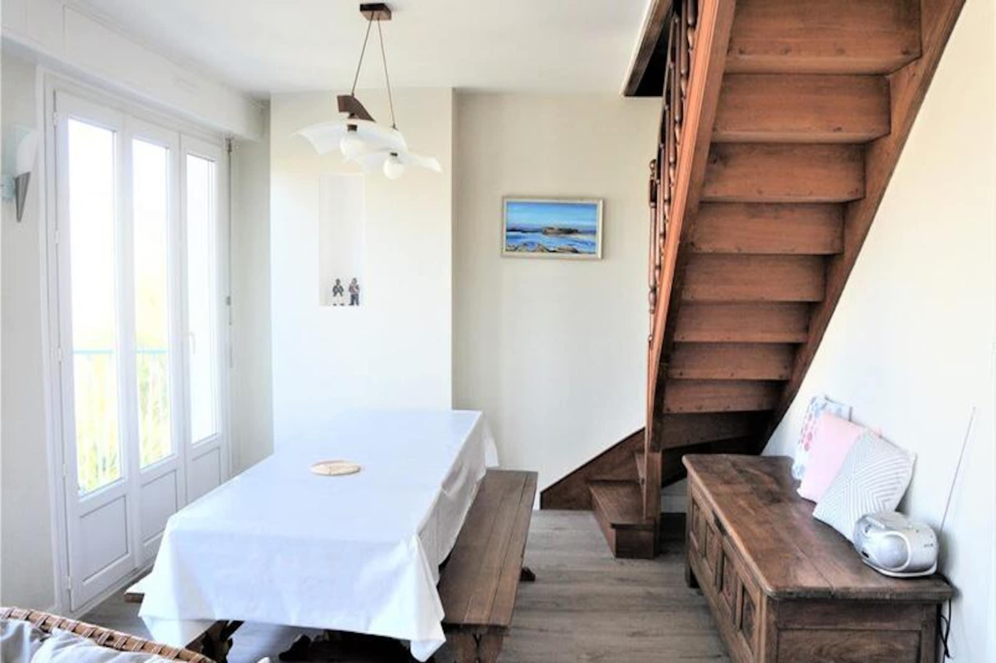 I den pittoreske kystlandsbyen Fort-Bloqué inviterer dette sjarmerende familiehjemmet deg til å oppleve den perfekte ferien ved sjøen. Bare fem minutters spasertur fra den vidstrakte sandstranden, er eiendommen omgitt av en frodig, inngjerdet hage, ideell for barn å leke og voksne å slappe av under den bretonske solen. De rolige omgivelsene, kombinert med den friske sjøbrisen, skaper en atmosfære av avslapning og foryngelse. Enten du søker rolige morgener med kaffe på terrassen eller eventyrlystne dager med utforskning av kystlinjen, tilbyr dette hjemmet alt. Huset strekker seg over tre etasjer og 130 m², og har komfortabel plass til opptil 12 gjester, noe som gjør det ideelt for familier eller vennegrupper. Første etasje har et koselig soverom, et bad og et fullt utstyrt kjøkken som åpner ut mot en terrasse med utsikt over hagen. Stuen, komplett med sovesofa og spiseplass, gir et innbydende sted for sammenkomster. Ovenpå finner du et andre kjøkken, en lys stue med balkongtilgang og tre ekstra soverom, hvert omtenksomt designet for komfort. Toppetasjen har en mesanin med enkeltseng og et sjarmerende barnerom med to enkeltsenger, perfekt for yngre gjester. Moderne fasiliteter som Wi-Fi, oppvaskmaskin og vaskemaskin sikrer et problemfritt opphold. Beliggenheten er uslåelig for friluftsentusiaster. Den nærliggende 4 km lange stranden strekker seg fra Fort-Bloqué til Guidel-Plages, og tilbyr muligheter for vannsport, sykling og rolige turer langs kysten. Eiendommen inkluderer også et Pass' Air&Mer-kort, som gir rabatter på lokale aktiviteter, fra seiling til padlebrett. Etter en dag med eventyr kan du nyte en grillfest i hagen eller slappe av på solstolene mens solen går ned over Atlanterhavet. Med sin romslige planløsning, førsteklasses beliggenhet og gjennomtenkte fasiliteter er dette hjemmet det perfekte utgangspunktet for å skape uforglemmelige minner ved sjøen. Enten du er her for den pulserende sommeren eller den rolige lavsesongen, lover Fort-Bloqué en virkelig unik kystopplevelse.