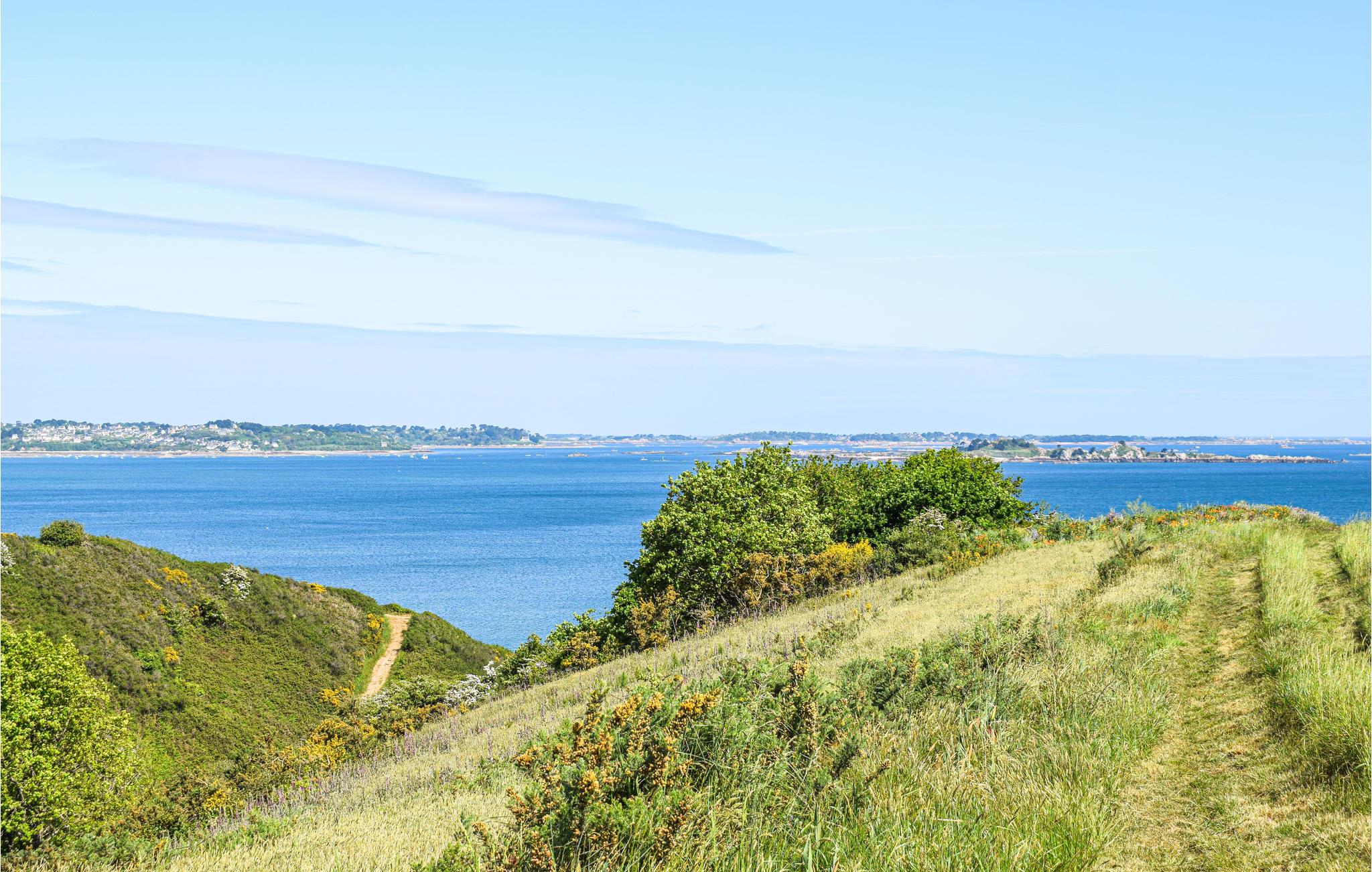 Se frem til en avslappende ferie i dette fantastiske feriehuset. Huset ligger ved enden av en vei og har en fantastisk utsikt over Paimpol-bukten og Brehat-skjærgården. De romslige, lyse rommene med åpen planløsning innbyr til avslapping. På en av de tre terrassene finner du alltid et solrikt sted hvor du kan spise frokost eller bare slappe av. På eiendommen finner du mange vakre kroker hvor du kan nyte solnedgangen med et glass vin.