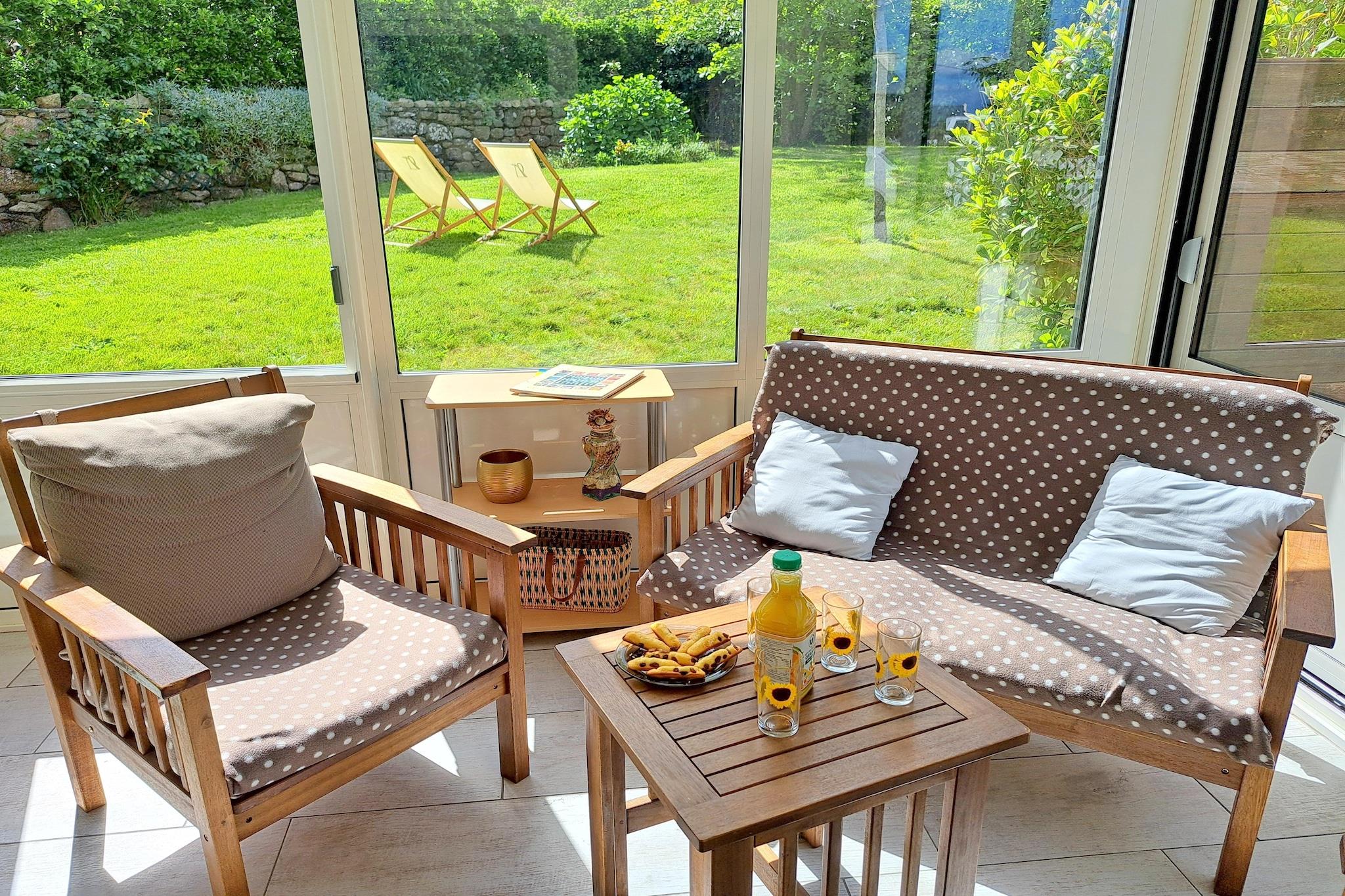 Bare 300 meter fra en sandstrand. Dette lyse feriehuset ligger i et rolig område på en vakkert anlagt hagetomt. De moderne møblene, supplert av de naturlige trebjelkene i taket og store skyvevinduer som fører ut til den komfortable verandaen, bidrar absolutt til en avslappende ferie. Peisen sørger også for kos i vår- og høstmånedene. De fine sandstrendene strekker seg langs hele kysten, hvorfra du har en fantastisk utsikt over øyene Ouessant og Molene utenfor kysten. Fra utløpet av elven Aber Ildut til spissen av Corsen, byr den 11 km lange kystlinjen som tilhører Plouarzel på en overflod av fine sandstrender og små steinete bukter. Stedet kombinerer sjarmen og roen på landsbygda med gledene og fritidsaktivitetene ved havet. Kommunen inkluderer også den høyeste megalitten i Frankrike, Menhir de Kerloas. Aktiviteter i nærheten: Båtturer til øyene er tilgjengelige fra Lanildut, og du kan også leie sykler der for å utforske. Sørg for å pakke piknikkurv og kikkert til denne turen. Gled deg til et besøk til den pittoreske havnebyen Le Conquet eller besøk Pointe St. Mathieu fyr
