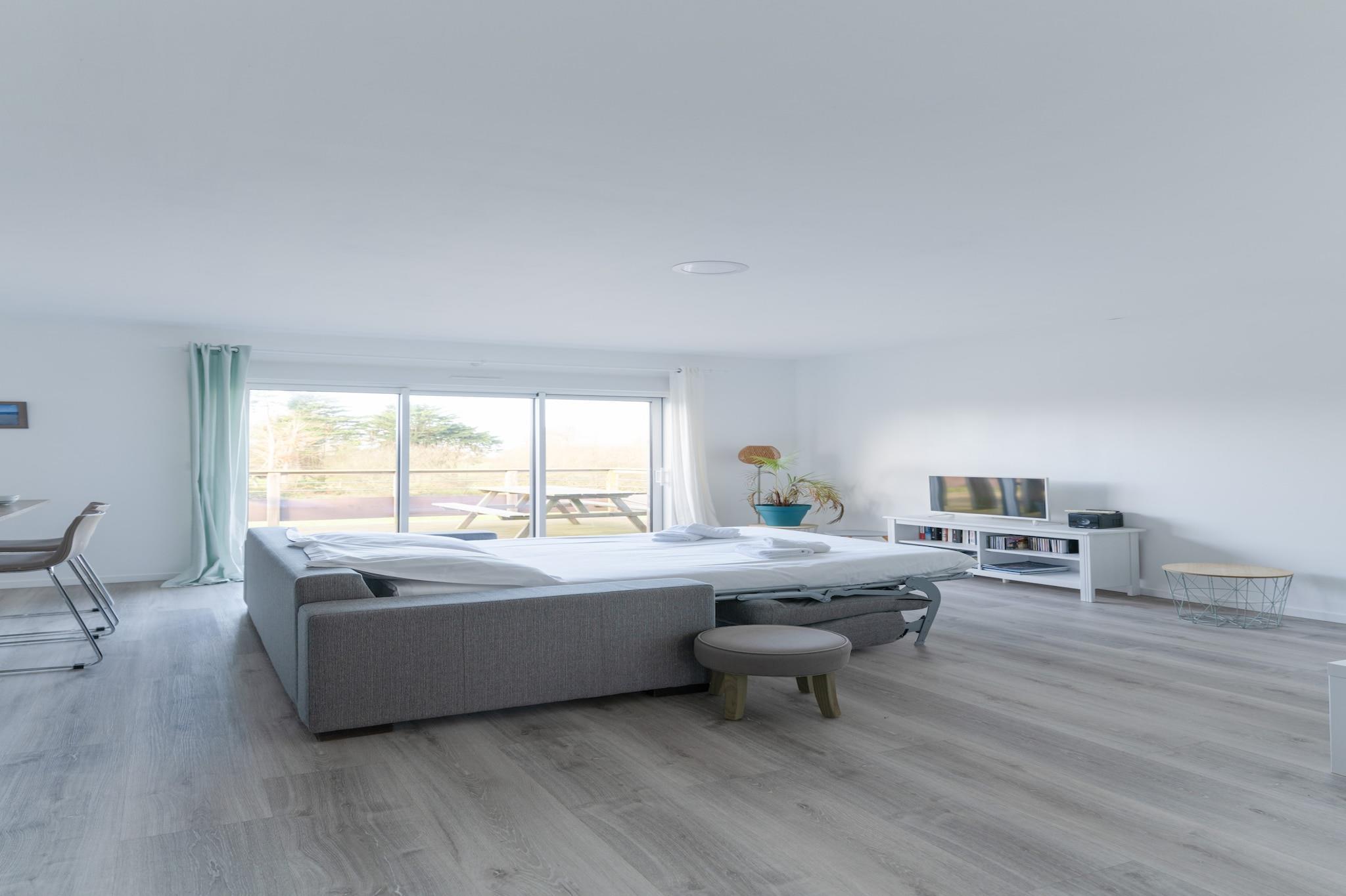 Denne koselige leiligheten med 1 soverom, med kapasitet for opptil 4 gjester, tilbyr 60 m² med moderne og komfortabel stue. Nybygd leilighet har en romslig 15 m² stor terrasse hvor gjestene kan nyte utsikten rundt. Det har en ideell beliggenhet i et familievennlig område, bare noen skritt fra klippestranden og badelandet, noe som gjør det perfekt for familier og de som søker enkel tilgang til utendørsaktiviteter. Med fasiliteter som Wi-Fi, vaskemaskin, strykejern, hårføner og satellitt-TV med flere språk, tilbyr denne leiligheten alle hjemmets bekvemmeligheter. Leiligheten ligger i nærheten av flere sandstrender, inkludert Plage de Treompan (150 meter) og Plage Aux Vaches (1 km), ideell for en dag med avslapning ved sjøen. Gjester kan også nyte den nærliggende byen Ploudalmézeau, bare 4 minutter unna, hvor du finner lokale restauranter, inkludert "Restaurant La Chaumine" og "Restaurant Le Caïman d"eau." For de som søker mer eventyr, fornøyelsesparken "La Récré des 3 Curés" ligger bare 17 km unna, og den pulserende byen Brest, 28 km unna, tilbyr en rekke attraksjoner, shoppingmuligheter og spisesteder. Leilighetens åpen kjøkkenløsning er utstyrt med moderne apparater, inkludert en induksjonskomfyr, kjøleskap, mikrobølgeovn, stekeovn og oppvaskmaskin, noe som gjør det enkelt å tilberede måltider under oppholdet. Med elektrisk oppvarming, balkong og utendørs parkering på stedet, gir leiligheten en praktisk og komfortabel base.
