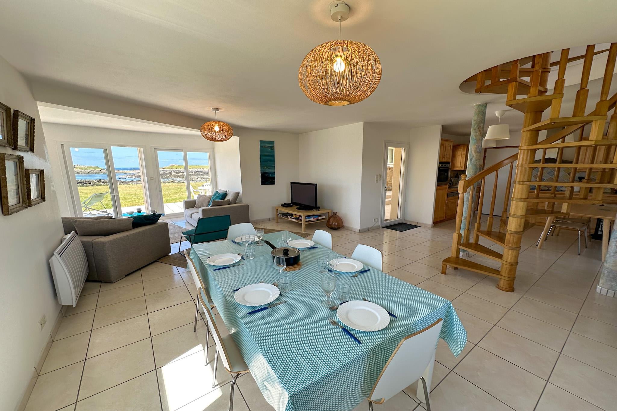Dette koselige og romslige huset med 4 soverom i Ploudalmézeau tilbyr et komfortabelt opphold for opptil 8 gjester. Boligen dekker 180 m² og har en ideell beliggenhet rett på stranden, med både hage og direkte tilgang til sjøen, noe som gjør det til det perfekte stedet for en ferie ved sjøen. Huset ligger i en familievennlig sone, noe som sikrer et fredelig og hyggelig opphold for alle. Innen gangavstand finner du flere vakre sandstrender, inkludert Plage de Pors ar Vilin Vras (200 m), Plage de Kerdeniel (350 m) og Plage de Tréompan (3 km). Området tilbyr også en rekke lokale restauranter som Restaurant le Caïman (850 m) og Crêperie Le Château d"Eau (6 km), samt supermarkeder som Leclerc de Ploudalmézeau (5 km) og Casino Supermarché (6 km). For de som søker ekstra underholdning, er det fornøyelsesparker, golfbaner og nærliggende byer som Saint Renan og Brest å utforske. Huset har et velutstyrt kjøkken med kjøleskap, stekeovn, fryser, kaffetrakter og vannkoker, sammen med servise, bestikk og kjøkkenutstyr for å gjøre oppholdet ditt mer praktisk. Ytterligere fasiliteter inkluderer en vaskemaskin, BBQ, balkong, Wi-Fi og satellitt-TV på flere språk. Gjestene kan også nyte terrassen med utemøbler, den inngjerdede hagen og utendørs parkering i samme bygning. Med elektrisk oppvarming for ekstra komfort, tilbyr dette hjemmet en avslappende og velutstyrt base for din ferie ved sjøen.