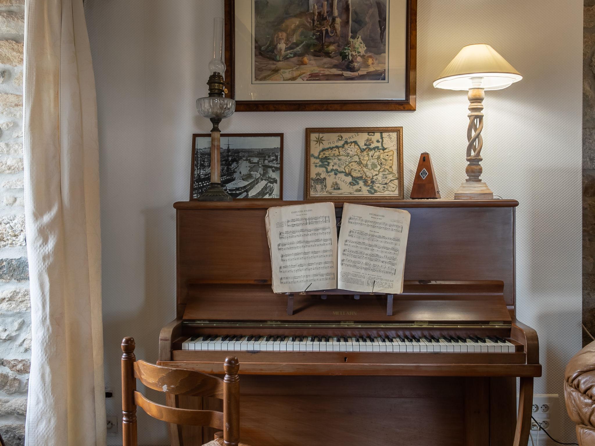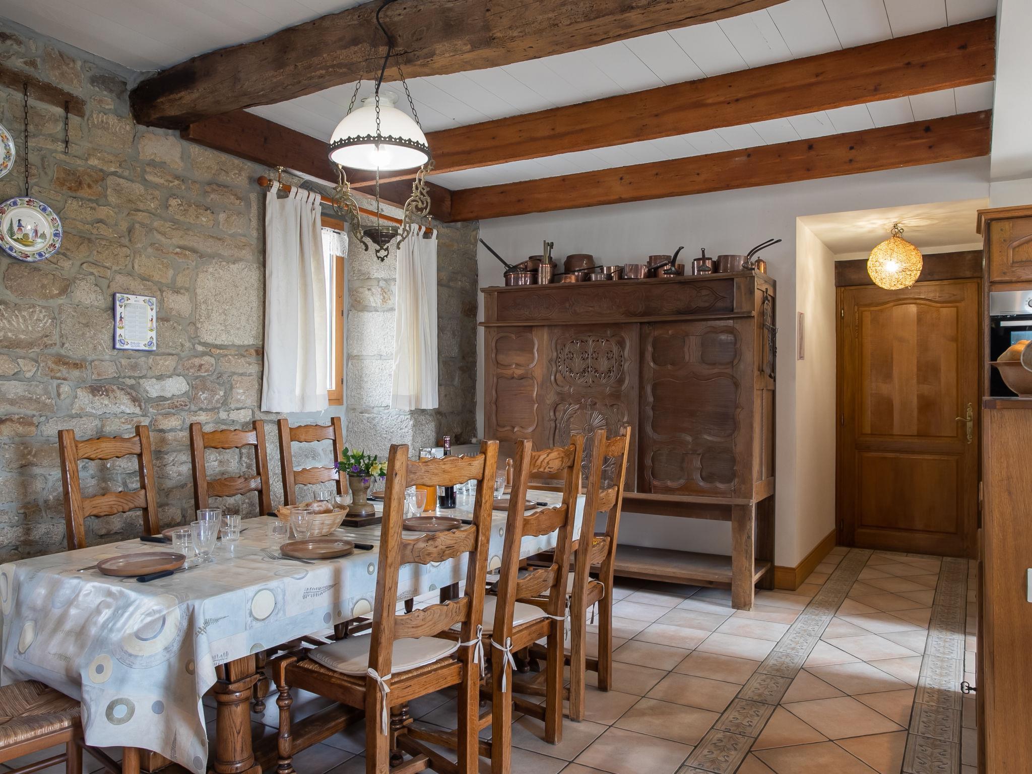 "Manoir des Halles", 4-room house 110 m2 on 2 levels, on the upper ground floor. Beautiful and rustic furnishings: upper floor: living/dining room with open-hearth fireplace, dining table, TV, international TV channels, radio, CD-player and DVD. Open kitchen (1 hot plate, oven, dishwasher, 3 gas rings, toaster, kettle, microwave, freezer, electric coffee machine) with small dining table. Sep. WC. Gas heating. 2nd upper floor: (spiral staircase), 1 room with 1 french bed (140 cm, length 190 cm), bath/WC. 2 rooms, each room with 1 french bed (140 cm, length 190 cm), shower/WC. Balcony, south facing position and west facing position. Terrace furniture, barbecue (portable), deck chairs (2). Facilities: washing machine, dryer, iron, children's high chair, baby cot. Internet (WiFi, free). Please note: non-smoking house. Maximum 1 pet/ dog allowed. If the additional bed is not reserved, the room with the single bed remains closed. 29185 000058B1