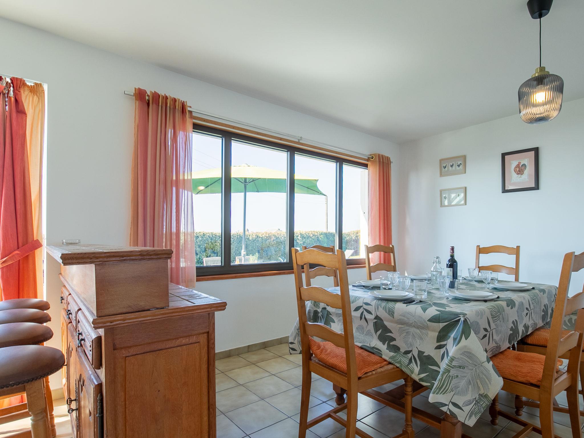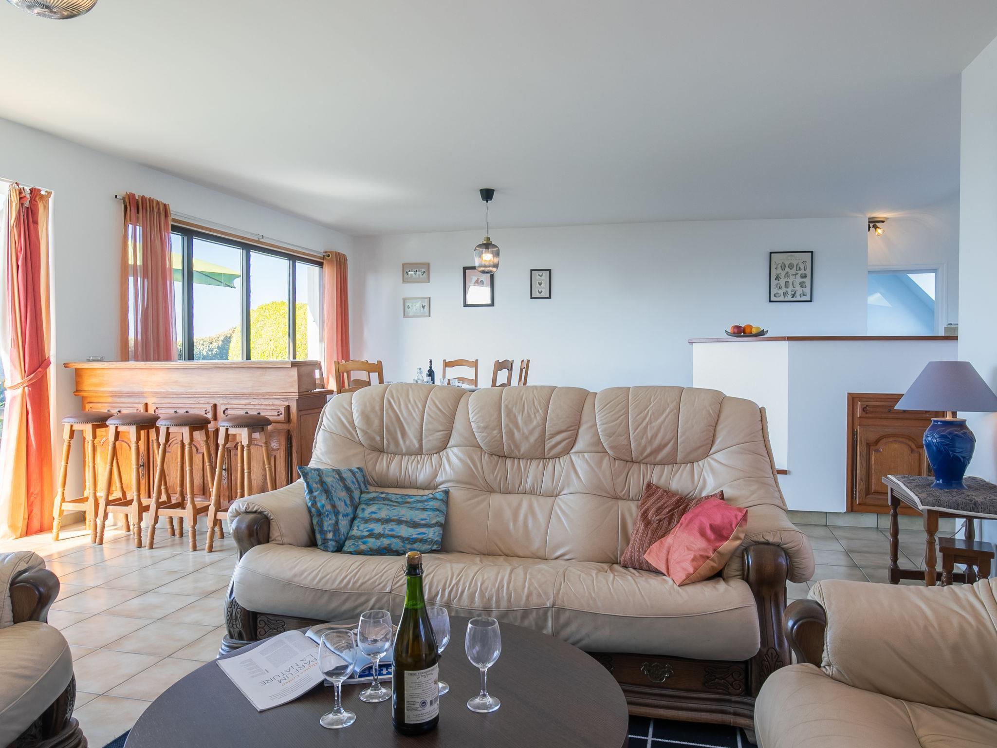 "Les Romarins", 5-room house 140 m2 on 2 levels. Comfortable and cosy furnishings: living/dining room with panoramic window with Scandinavian wood stove, dining table and satellite TV. Exit to the garden. 1 room with 1 double bed. Open kitchen (1 hot plate, oven, dishwasher, 3 gas rings, toaster, kettle, microwave, freezer, electric coffee machine). Shower, sep. WC. Upper floor: living room. 2 rooms with sloping ceilings, each room with 2 beds. Bathroom, sep. WC, double hand-basin. Electric heating. Terrace. Terrace furniture, barbecue (portable), deck chairs (2), box-room. Beautiful panoramic view of the sea. Facilities: washing machine, iron, children's high chair, baby cot. Internet (WiFi, extra). Please note: non-smoking house. Smoke alarm.