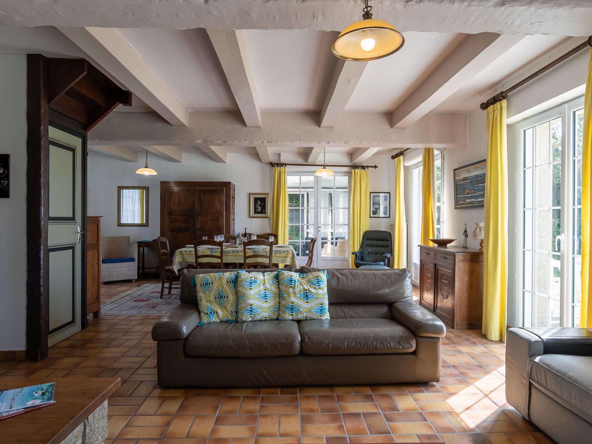 "La Rejeane", 5-room house 140 m2 on 2 levels. Cosy furnishings: living/dining room with panoramic window with open-hearth fireplace, dining table and satellite TV. Exit to the garden, to the veranda. Small living room with veranda with dining table. Exit to the terrace. 1 room with 1 french bed (140 cm, length 190 cm), shower. Exit to the garden. Kitchen (oven, dishwasher, 3 induction hot plates, toaster, microwave, electric coffee machine). Sep. WC. Upper floor: 2 rooms with sloping ceilings, each room with 1 french bed (1 x 160 cm, length 200 cm). 1 room with sloping ceilings with 1 bed (90 cm, length 190 cm). Bath/shower, sep. WC, double hand-basin. Oil heating. Wooden floors, natural stone floors, carpet. Terrace partly roofed. Terrace furniture, sitting area, box-room. Marvellous view of the sea. Facilities: washing machine, dryer, children's high chair, baby cot. Internet (WiFi, free). Please note: non-smoking house. Maximum 1 pet/ dog allowed. Smoke alarm. Offer by a private individual according to Art. 155, IV of CGI.