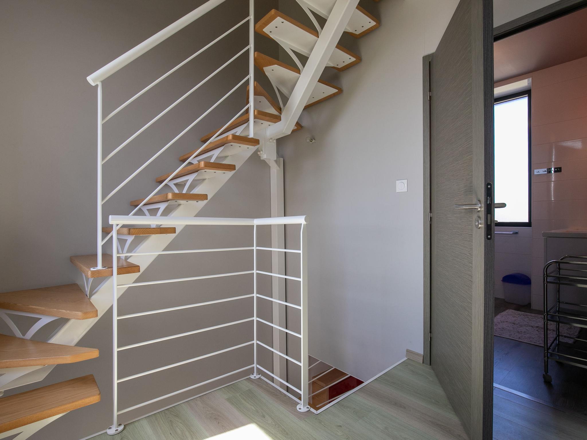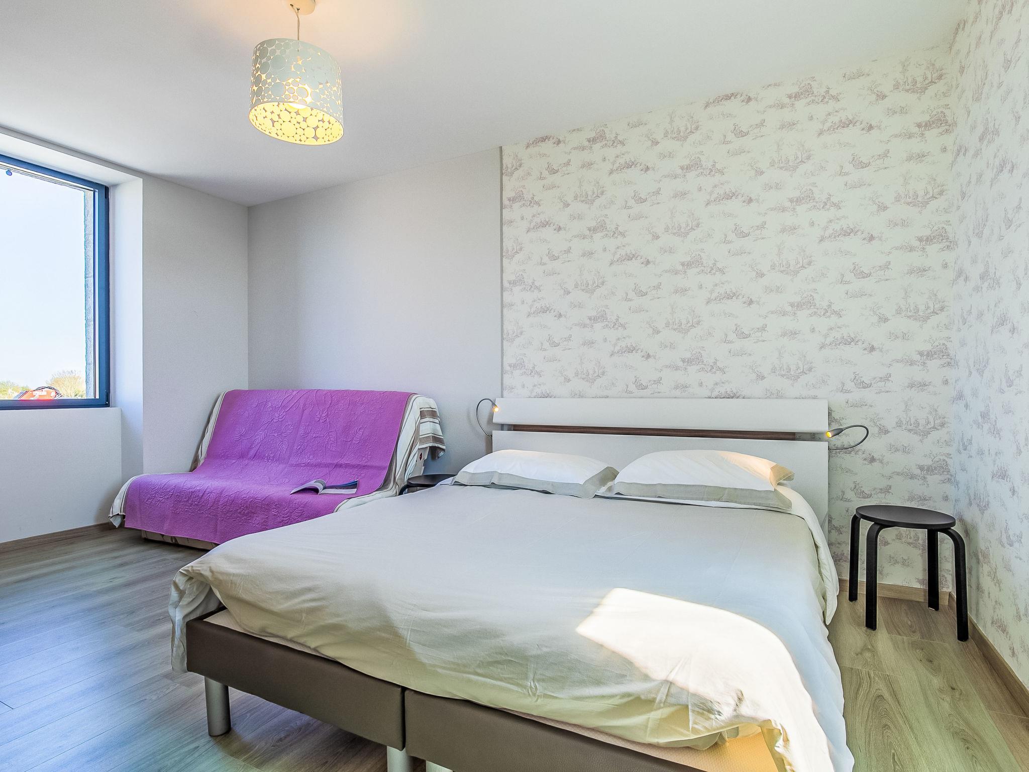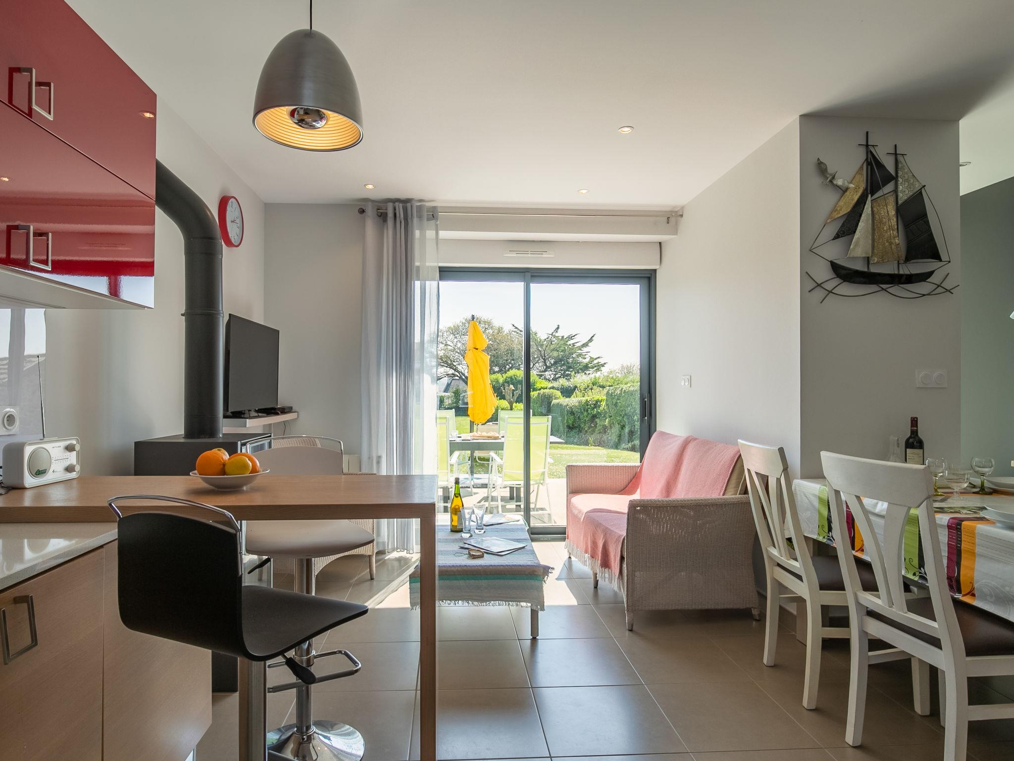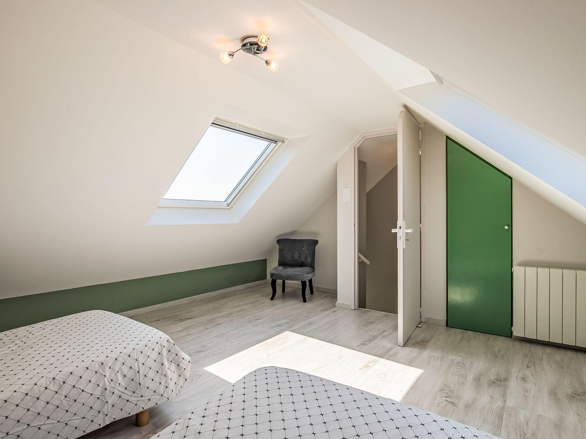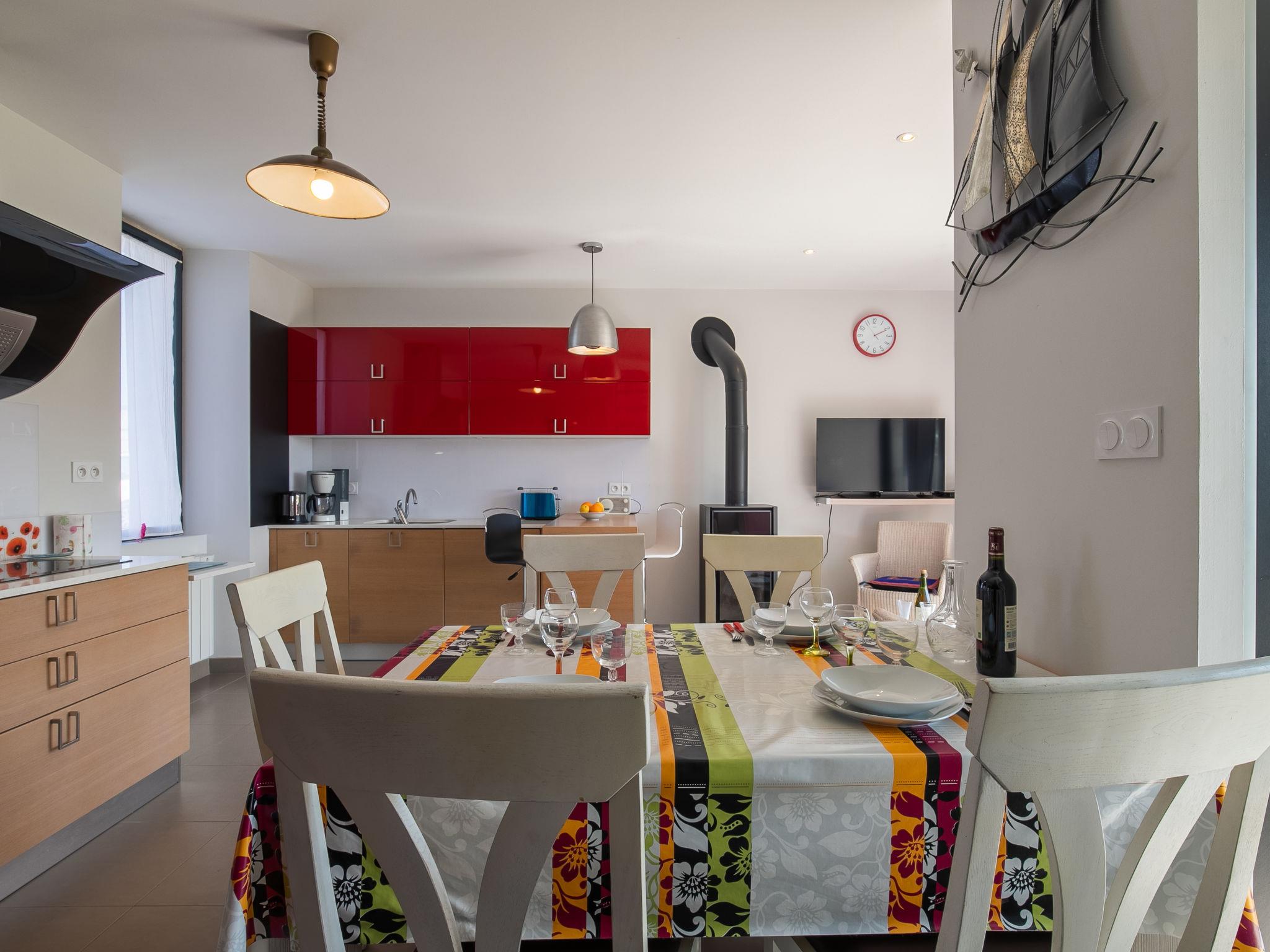 "Ty Angèle", 3-room house 60 m2 on 3 levels. Bright, comfortable and tasteful furnishings: living/dining room with dining table, TV, radio and wood-burning stove. Exit to the terrace. Open kitchen (oven, dishwasher, 3 induction hot plates, toaster, kettle, microwave, freezer, electric coffee machine) with small dining table. Sep. WC. Upper floor: 1 room with 1 french bed (160 cm, length 200 cm). Shower/WC. Electric heating. 2nd upper floor: 1 room with sloping ceilings with 2 beds (90 cm, length 190 cm). Parquet floors. Terrace, south facing position. Terrace furniture, deck chairs (2). Facilities: washing machine, children's high chair, baby cot. Internet (WiFi, free). Please note: non-smoking house. Smoke alarm. 29185 000075 LU