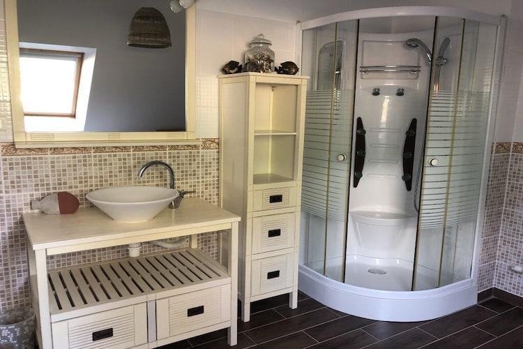 Dette komfortable, bretonske feriehuset tilbyr en fantastisk utsikt over havet og Köste oppstrøms. Den vakkert beplantede eiendommen i åssiden ligger på en liten ås over Terenez-bukten. Bare 300 meter unna kommer du til den lille havnen og den første sand- og rullesteinstranden. Om sommeren er den private parkeringsplassen på den private eiendommen! Nyt den noe tilbaketrukne beliggenheten og den fantastiske utsikten fra terrassen og praktisk talt alle rommene i feriehuset ditt. De åtte strendene som tilhører kommunen ligger i den østlige enden av Morlaix-bukten og er spredt over 17 km kystlinje. I tillegg til brede sandstrender som er bevoktet om sommeren, finner du også små, lune bukter her. Severdigheter i den lille, vidt befolkede bukten er Pointe de Primel, havnen i Diben og strendene Trégastel, Port Blanc, Guerzit, St. Samson og Térénez. Den populære Rosa Granitköste begynner noen kilometer lenger fremme.