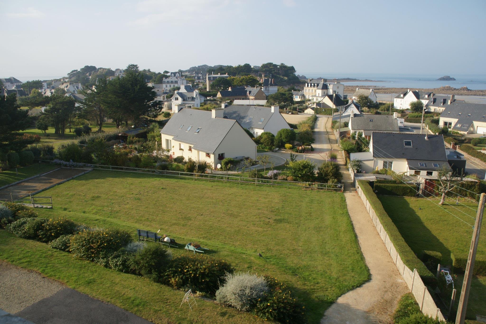 Denne vakre leiligheten, som ligger i åsene i Primel, tilbyr komfort, havutsikt og fredelige omgivelser i en liten bolig med 12 leiligheter. Den ligger i mezzaninen og har en koselig stue med et åpent, fullt utstyrt kjøkken og to lyse soverom, ett med utsikt over felleshagen og et gammelt kapell. Gjestene kan nyte boligens felleshage, med en liten hage og grill for utendørs måltider. Gode parkeringsplasser er tilgjengelige for enkelhets skyld. Plougasnou kan skryte av åtte strender spredt over 17 km kystlinje, fra Pointe de Primel og havnen i Diben til Trégastel, Port Blanc, Guerzit, St Samson og Térénez. Kystlinjen er stort sett naturlig, med sandstrender, dramatiske fjellformasjoner og tidevannsflater som tiltrekker seg badegjester, klatrere og skalldyrsamlere. Turstien GR34 går rundt Morlaix-bukten og tilbyr fantastisk utsikt over Taureau-festningen, Callot- og Louet-øyene og nærliggende fuglereservater. Området er perfekt for naturelskere og historieentusiaster. Besøk megalittiske funnsteder i Barnenez, eldre enn de egyptiske pyramidene, eller utforsk den pittoreske havnebyen Roscoff og den historiske arkitekturen i Morlaix. Den populære Côte de Granit Rosa ligger litt over en halvtimes kjøretur unna.